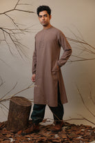 Raglan kurta with rib cuffs and side pockets made in handspun 100% cotton comes with cotton baggy pants with side pockets and elasticated waist. This set comes in 2 pcs.