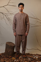 A short kurta made in handspun cotton with curved yoke and button detail. Team it up pleated trouser from this collection to comlete the co-ord set.
