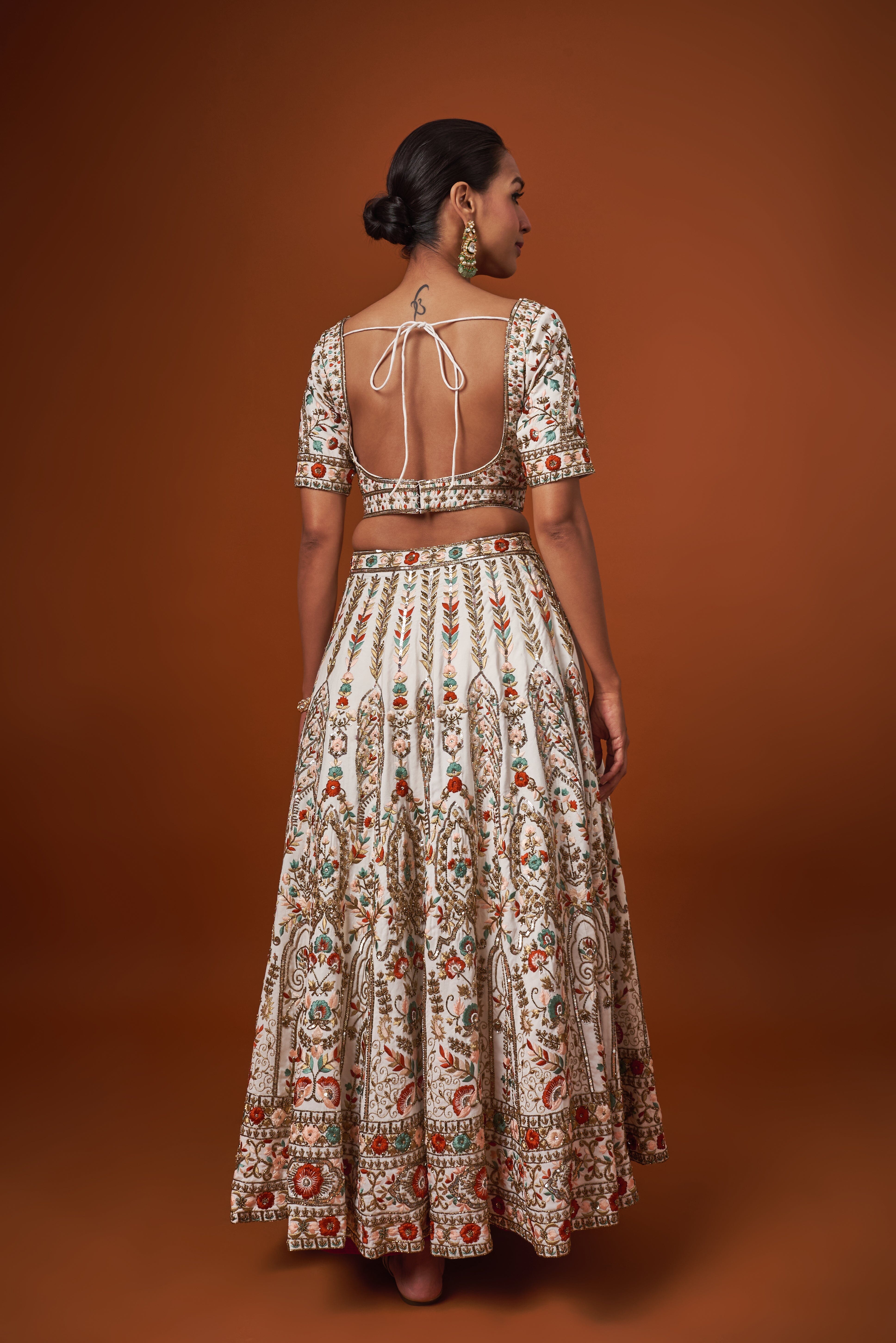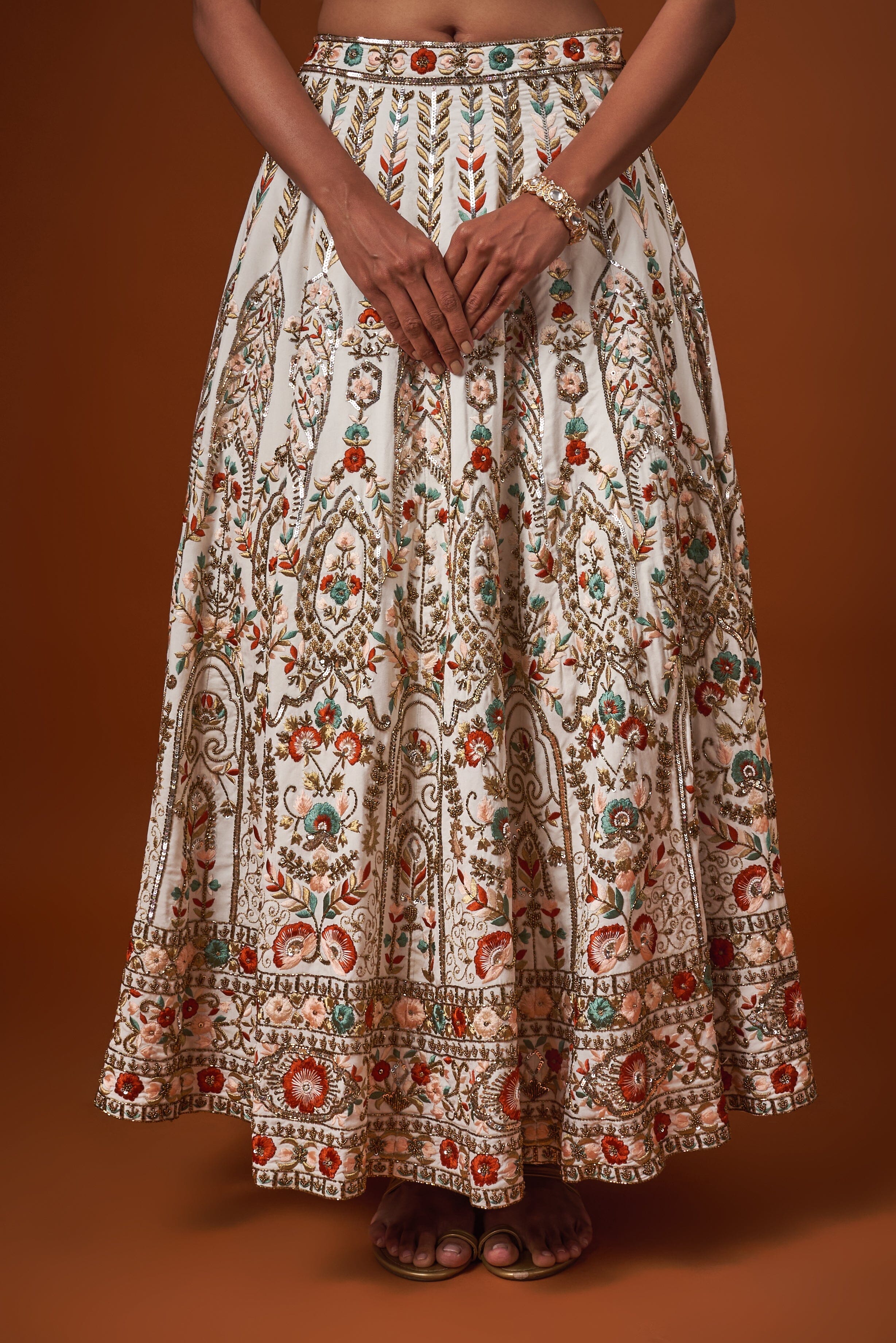 Ivory Embroidered Lehenga Set With Contrast Dupatta