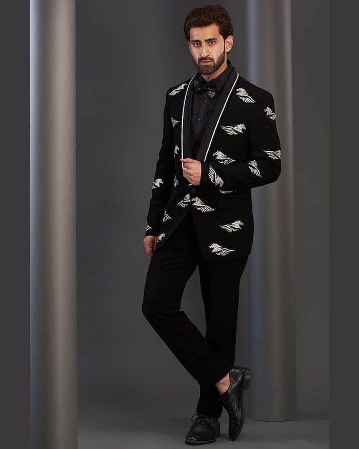 Embrace the spirit of freedom and strength with the Ucchesshwara Horse Inspired Suit. Featuring motifs inspired by the majestic horse, this ensemble exudes power and elegance, perfect for making a bold statement.