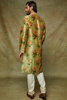 Featuring a yellow kurta in silk base with floral print, embroidery, and potli buttons. This contains only one piece.