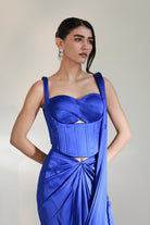 – Blouse Fabric : Armani satin corset with pleated bust & boning