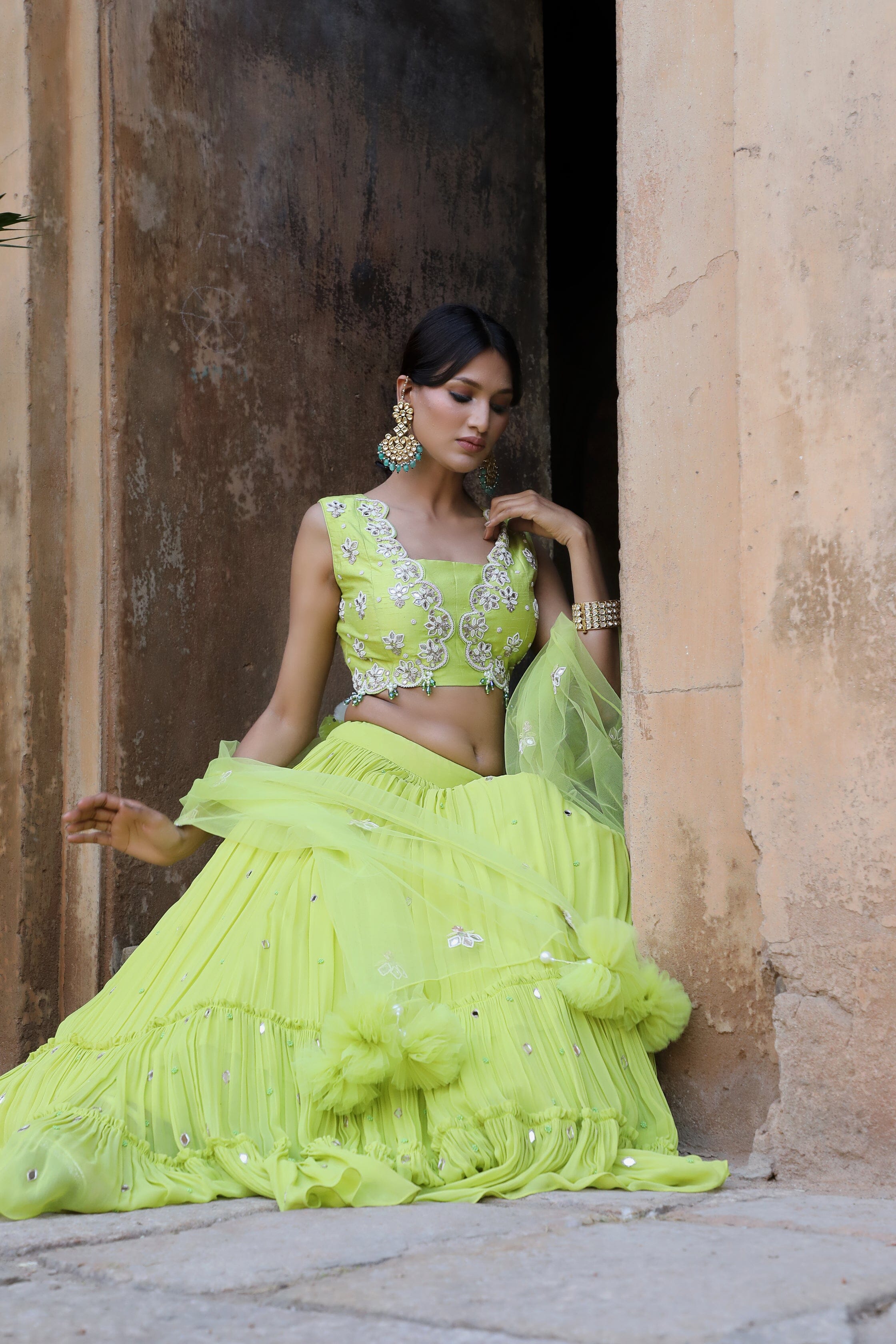 Neon Green Flared lehenga set