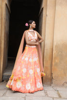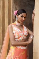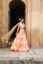 Peach Tie-Dye Lehenga Set with Choker Dupatta