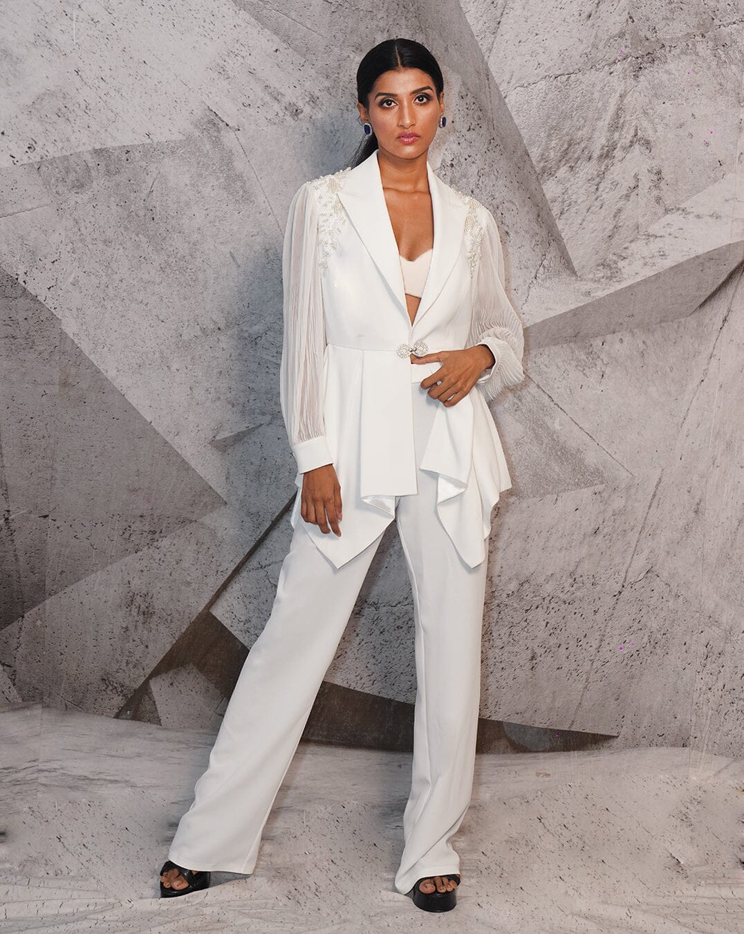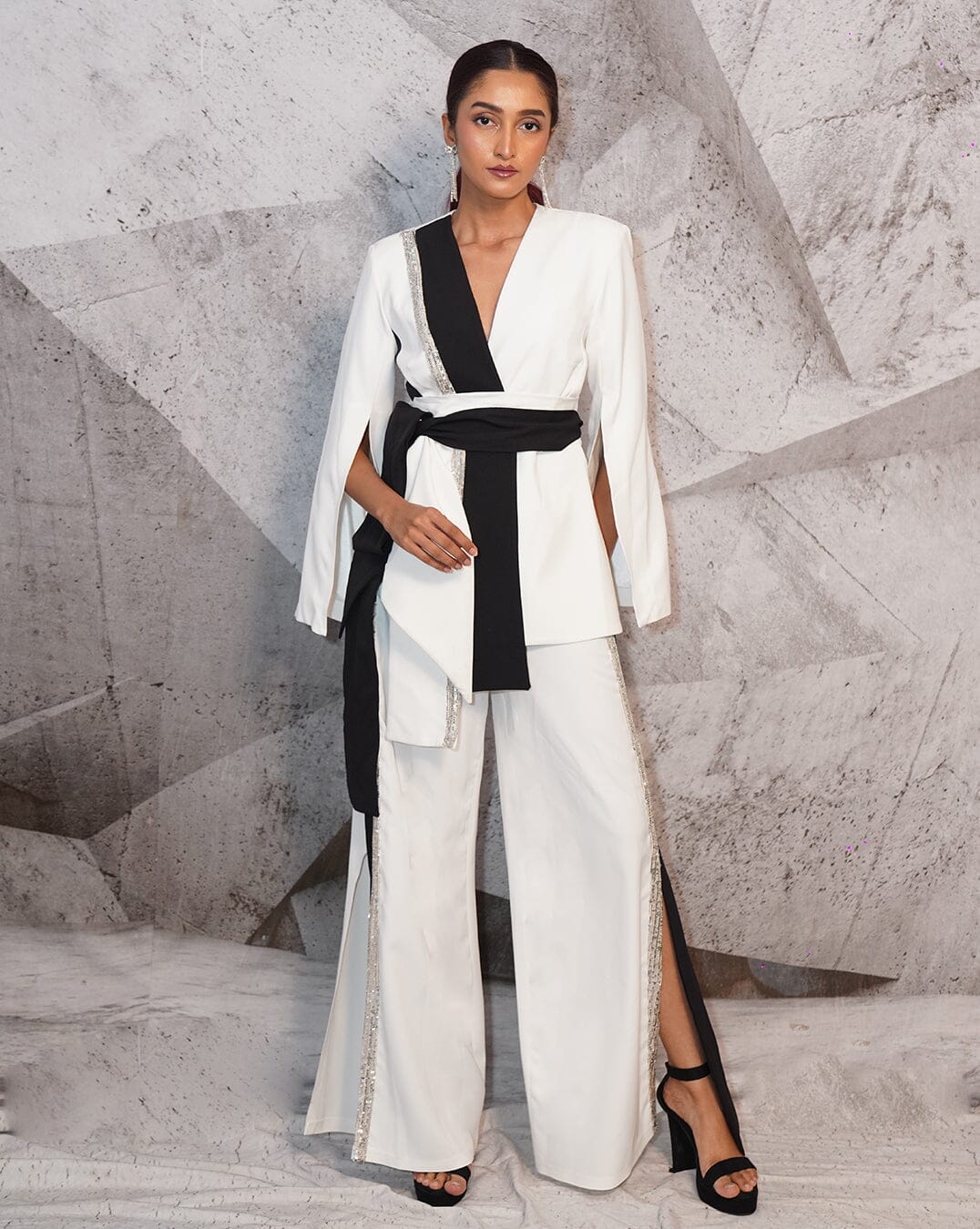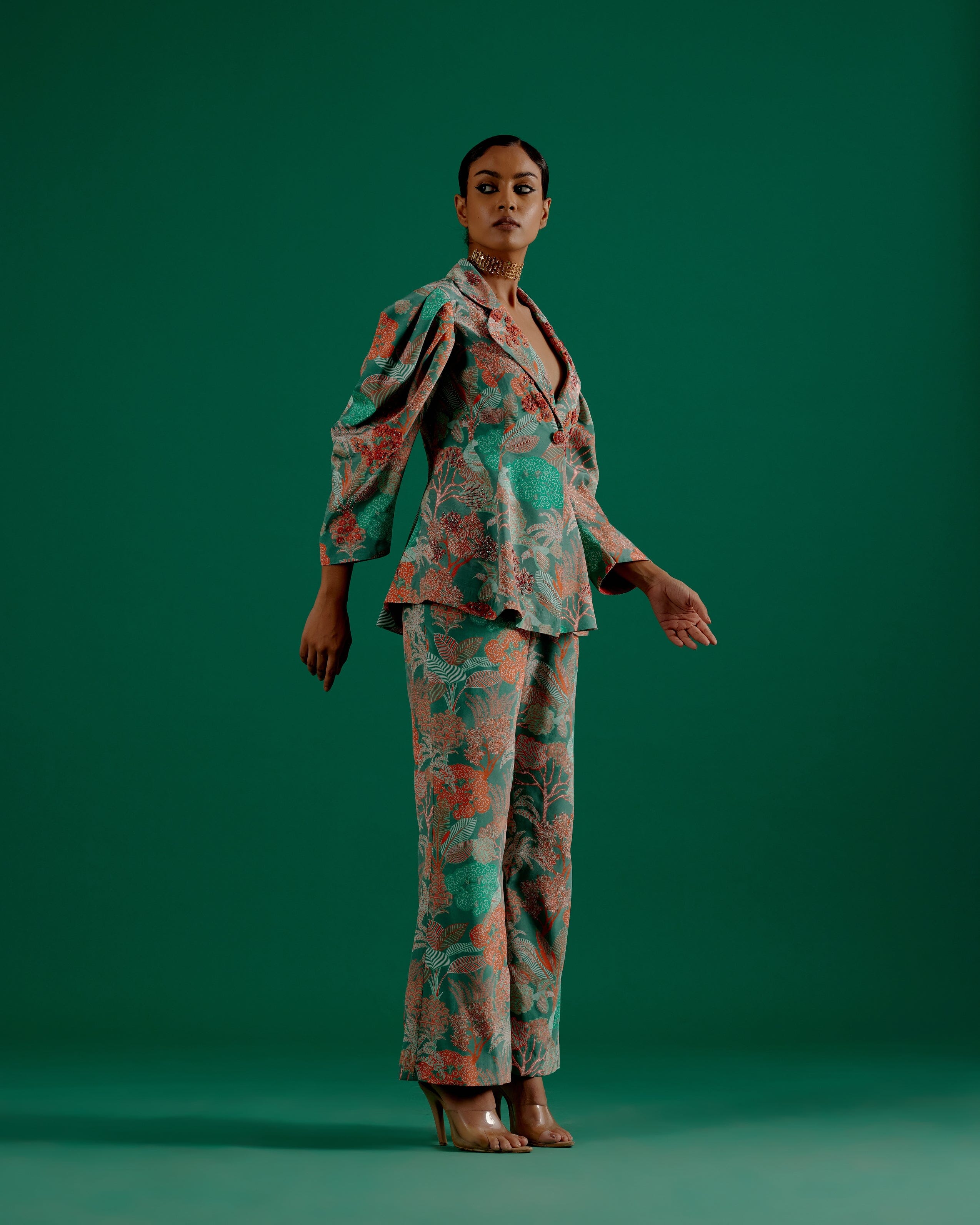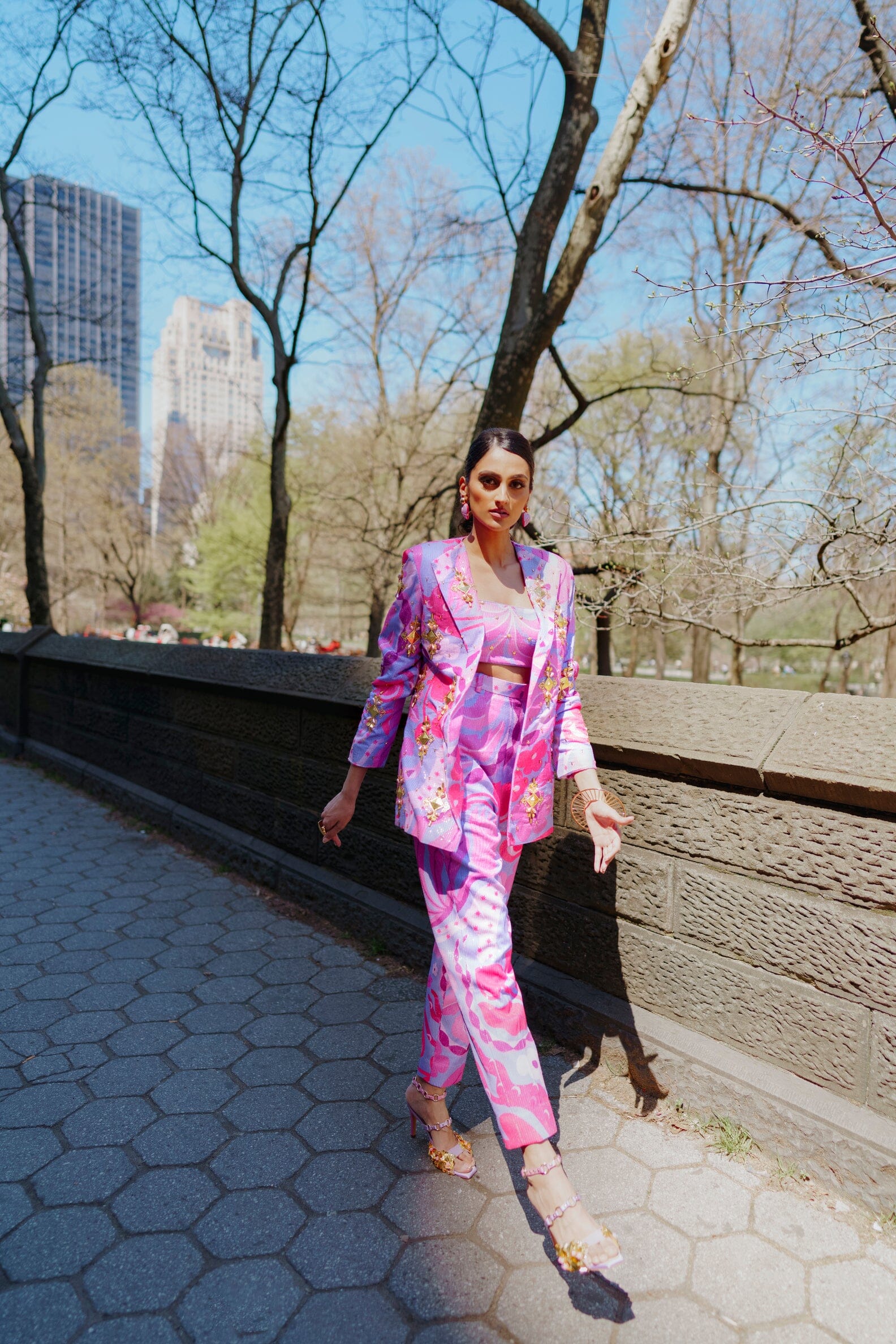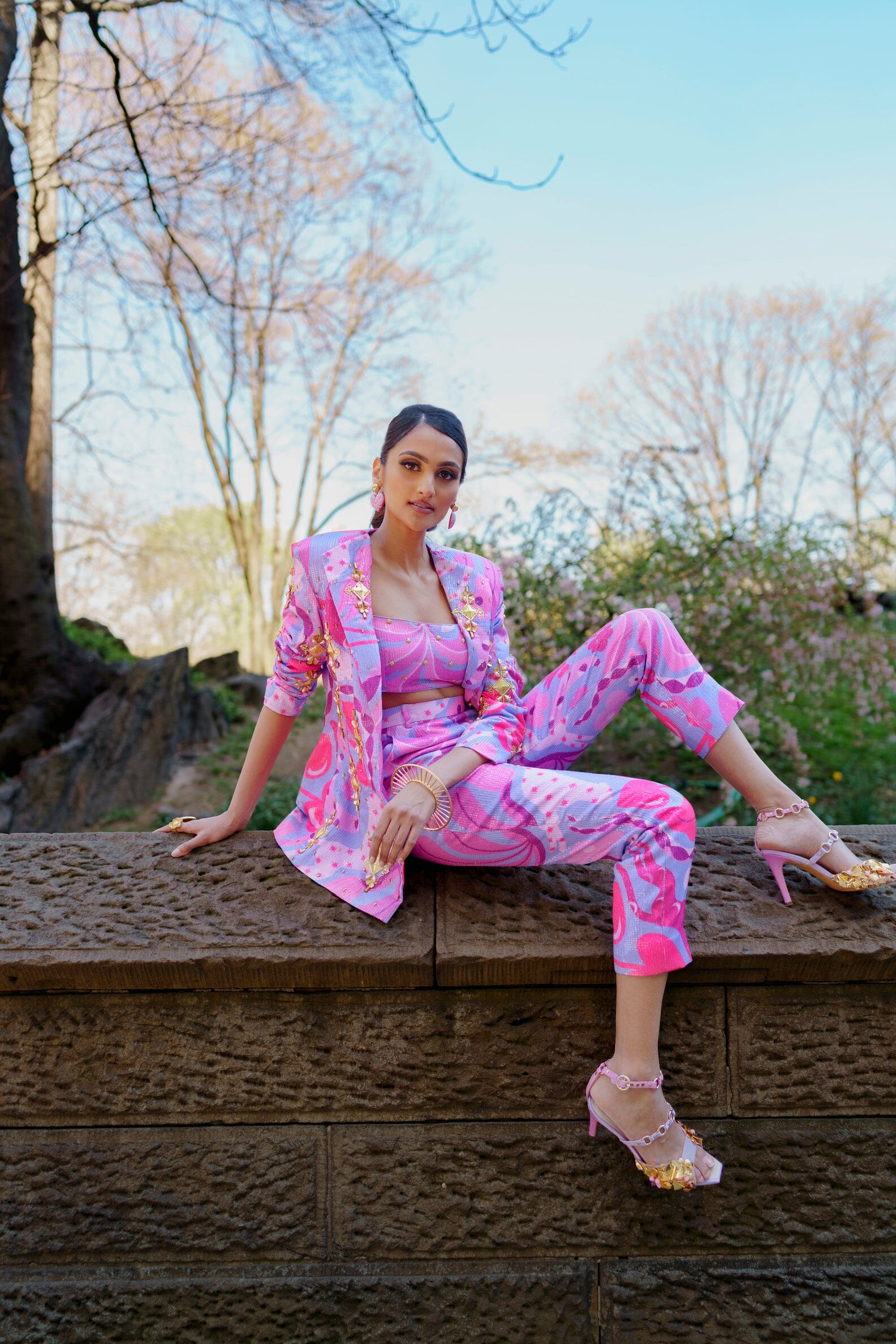 Living Coral- Lilac and Hot Pink Sequin Printed Pant Suit Set