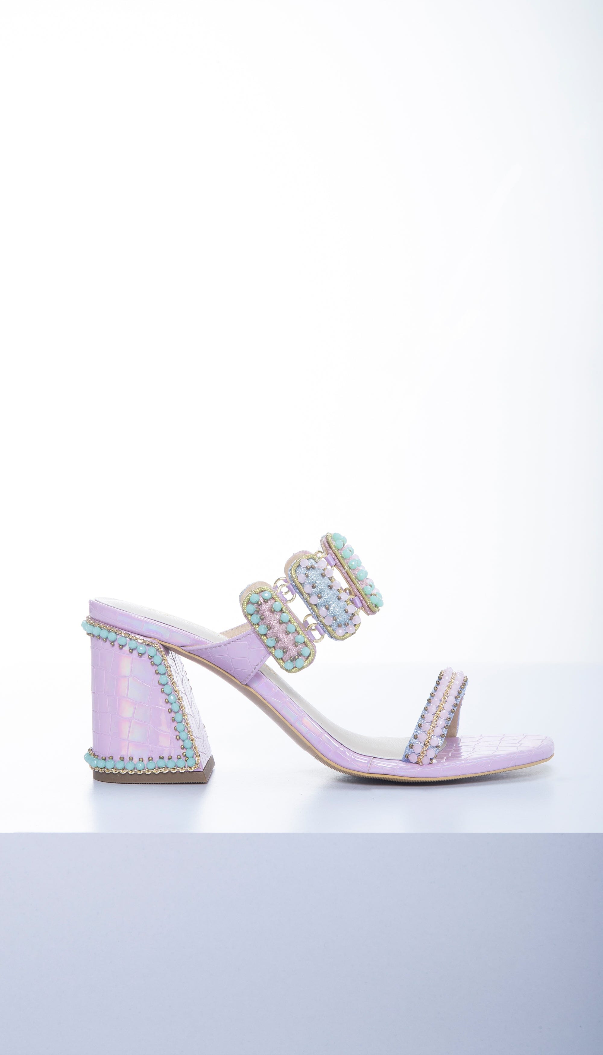 Sugar Tabs Block Heels - Lilac slip-on heels