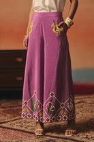 The Bulbul Pants from our new festive edit’25 is a pure crepe magenta Pant, features the timeless Ikat-inspired patterns and comes finished with our signature sequins detailing.