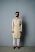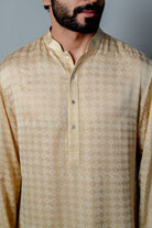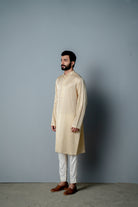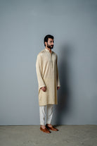 CUSTOM PRINT KURTA IN SOFT COTTON SILK , PAIRED WITH A CUSTOM PRINT JACKET , WITH INTRICATE HAND EMBROIDERY ALL OVER. PAIRED WITH CHURIDAAR