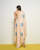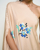 Nude One-shoulder Co-ord Set: One shoulder kaftan with sequins detailing paired with checkered pants