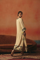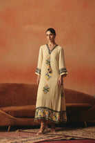 The Padma Midi Dress is a pure georgette Kaftan style dress, featuring timeless Ikat-inspired patterns made in hand emboidered sequins and tassels