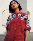 The Red Plain striped pants is made of pure crepe and comes with a zipper and hook fastening.