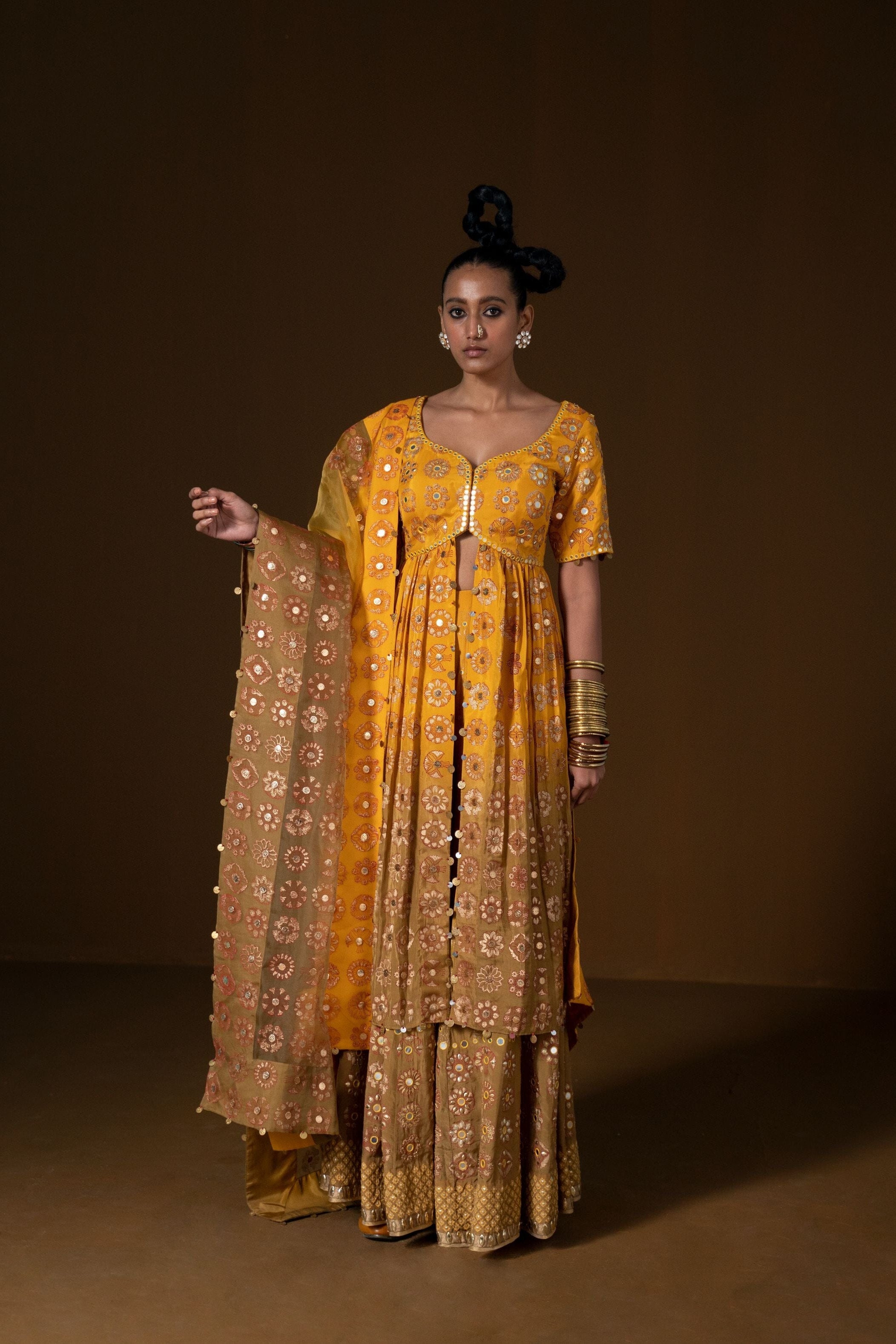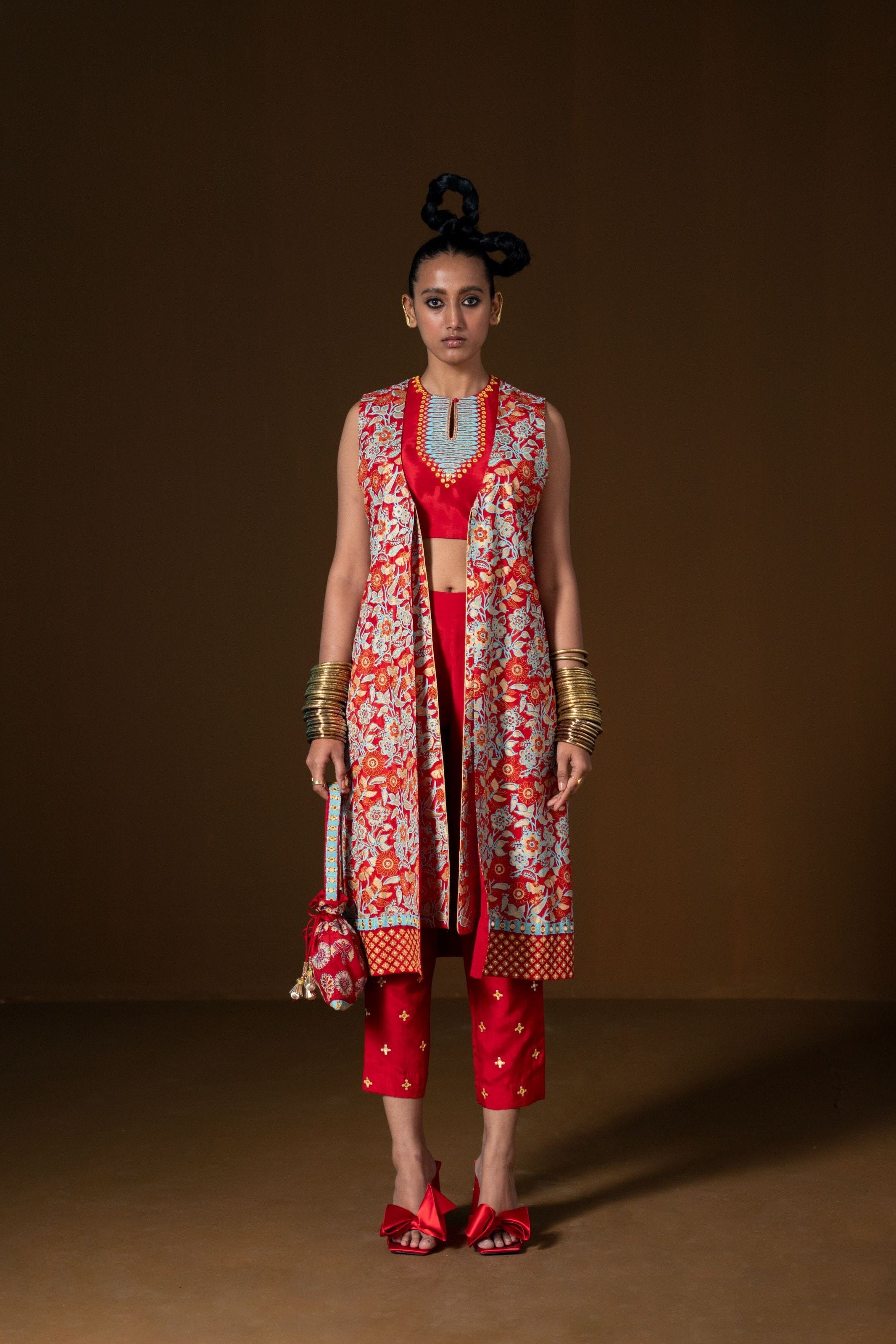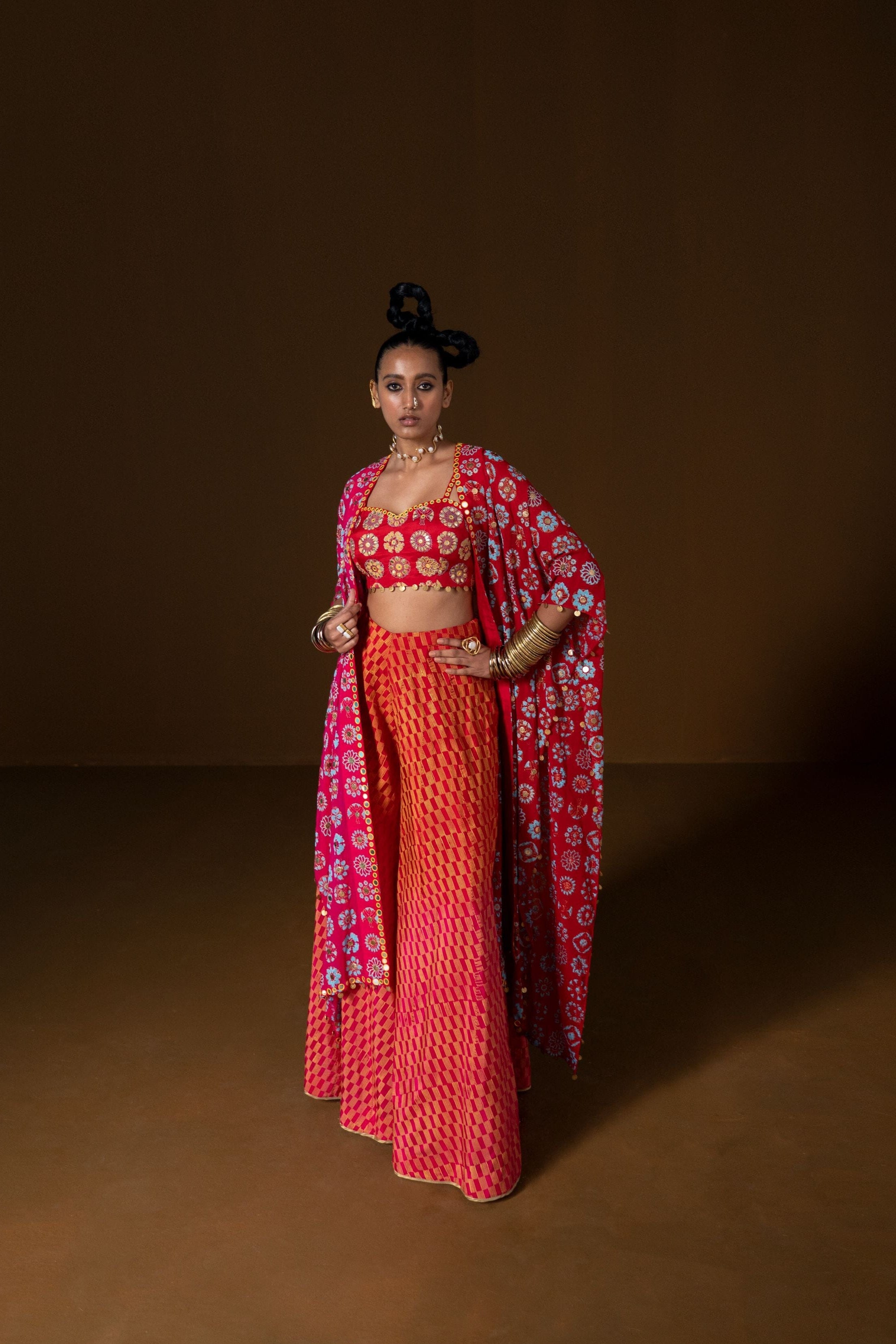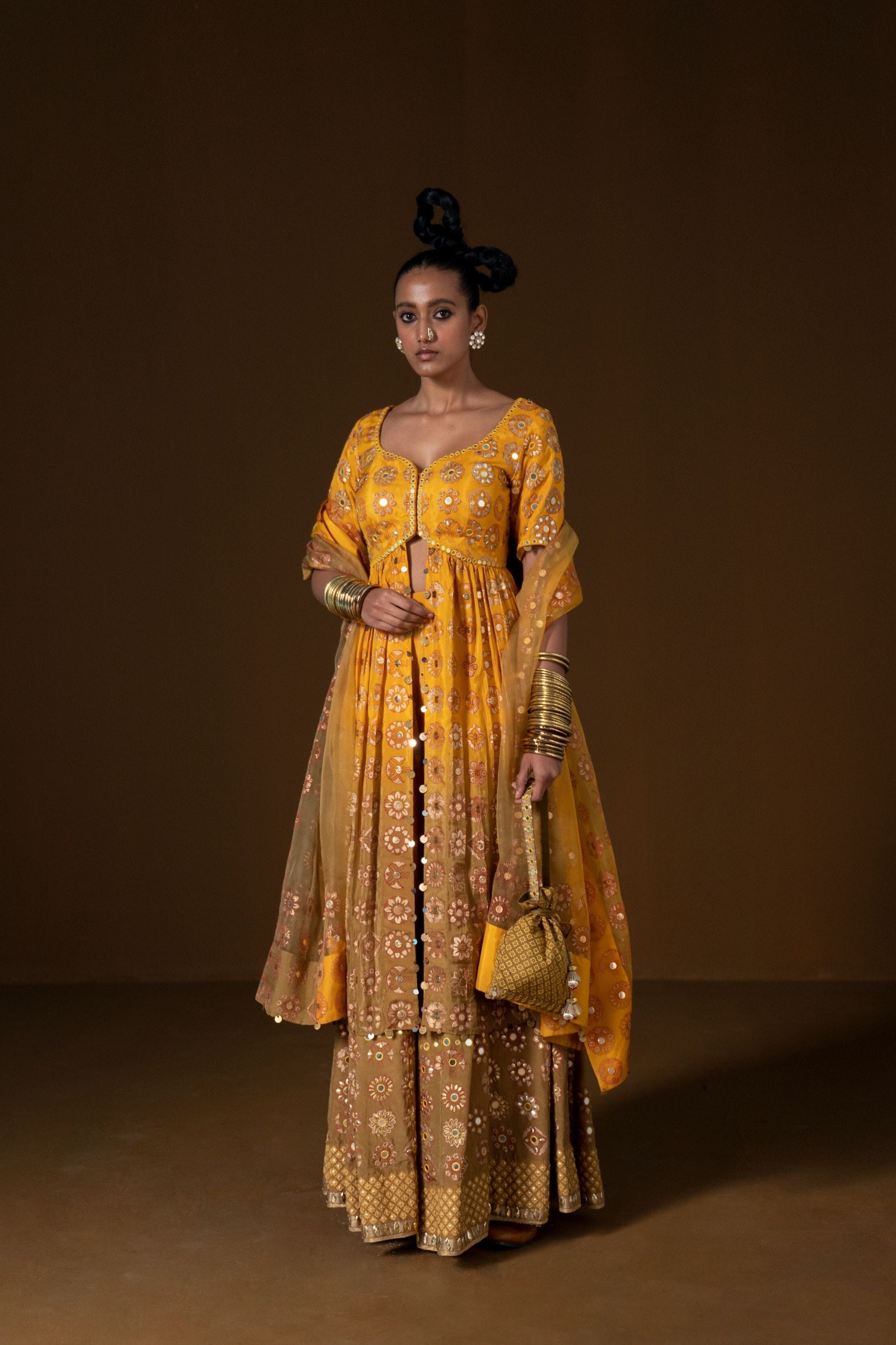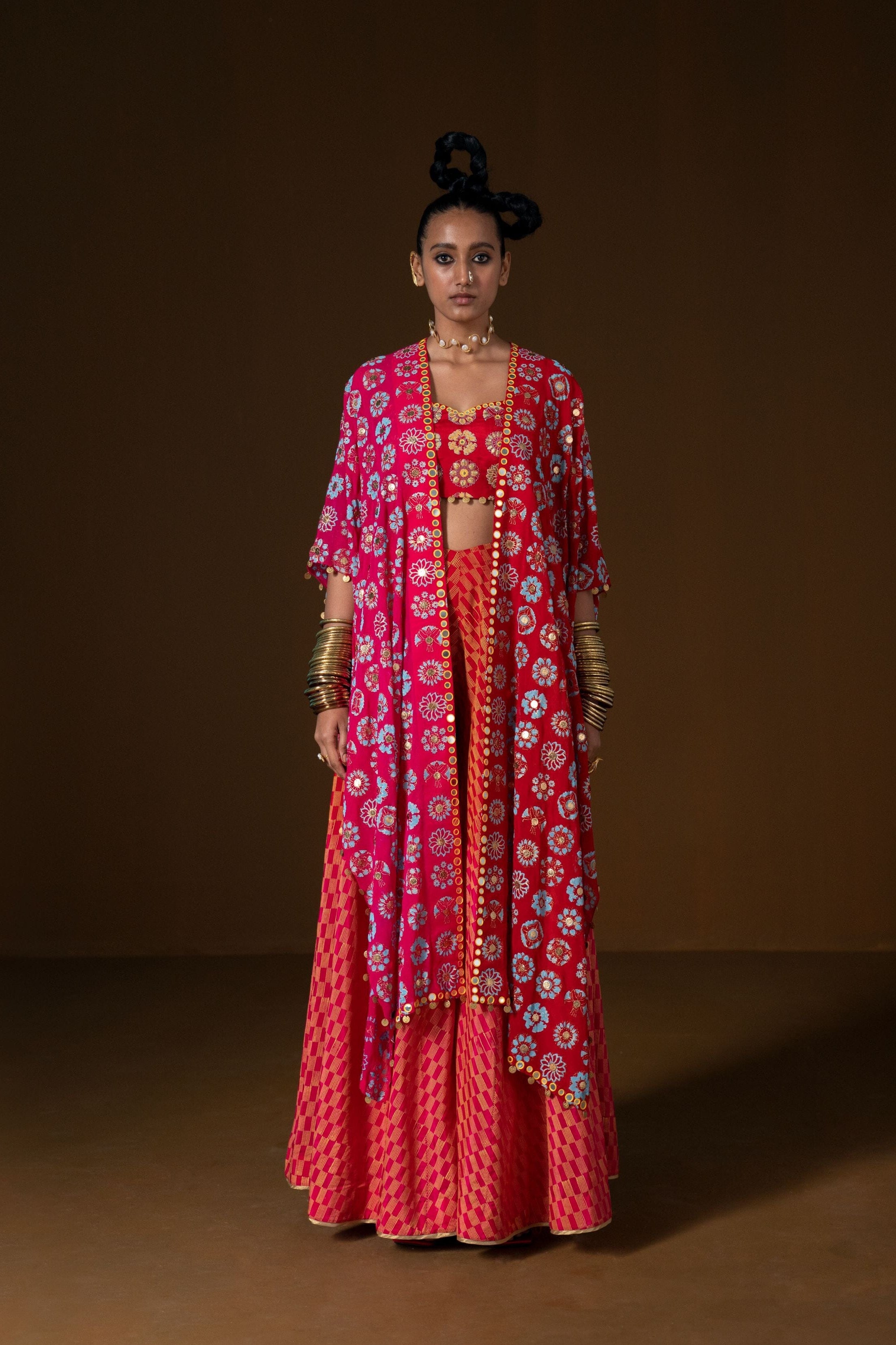 Pooja Rajgarhia Gupta’s style shouts vivid and bright with amalgamation of traditional aesthetics and modern design. The label’s signature geometric surface textures bring a new feel to Indian fluid silhouettes. Their collections are a refreshing shift from very heavy Indian clothing to easy playful silhouettes, statement colors, foiling, printing, intricate handwork and impactful geometric sequence work. Delivery period for this label is usually 20-25 days.