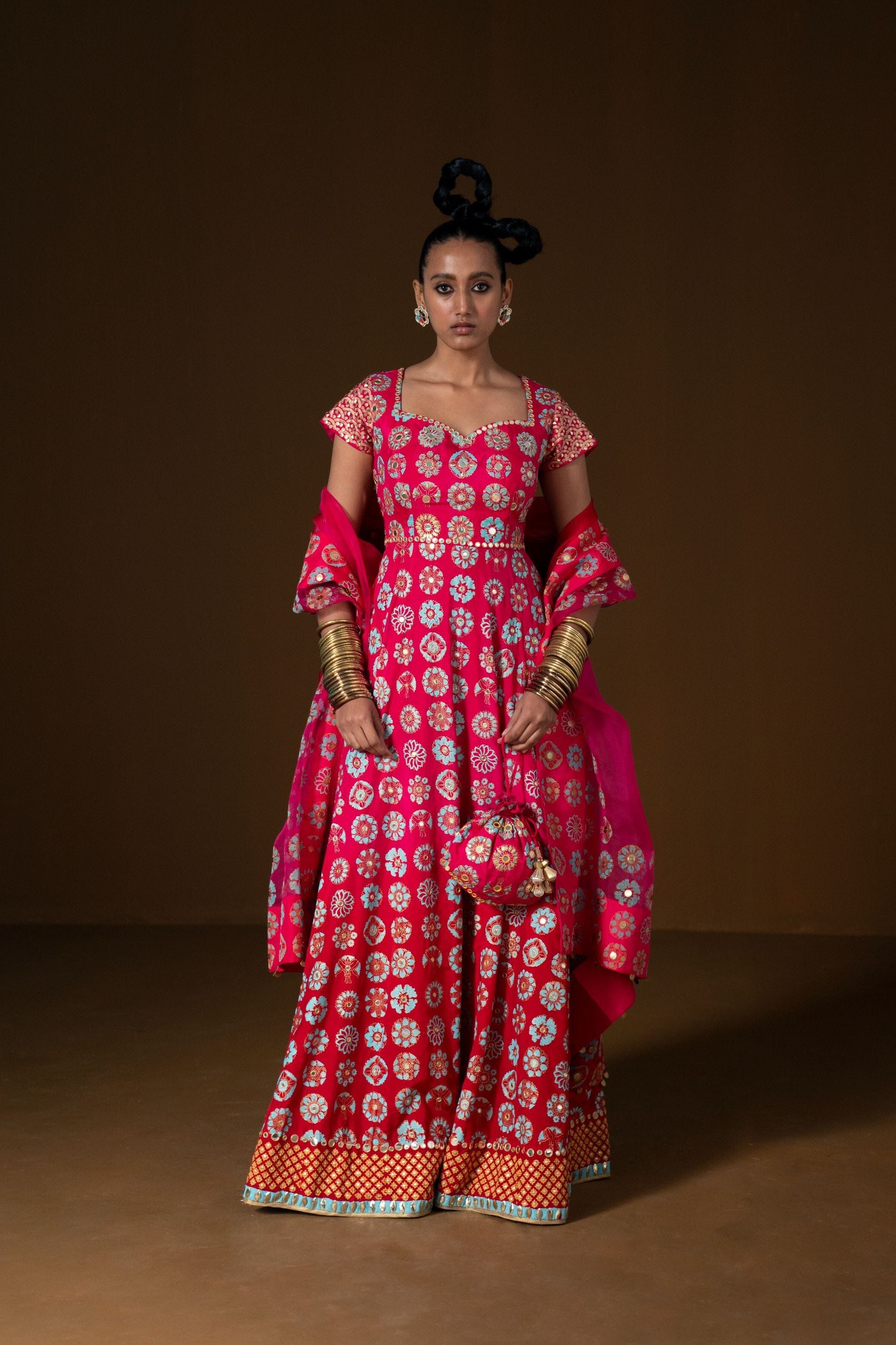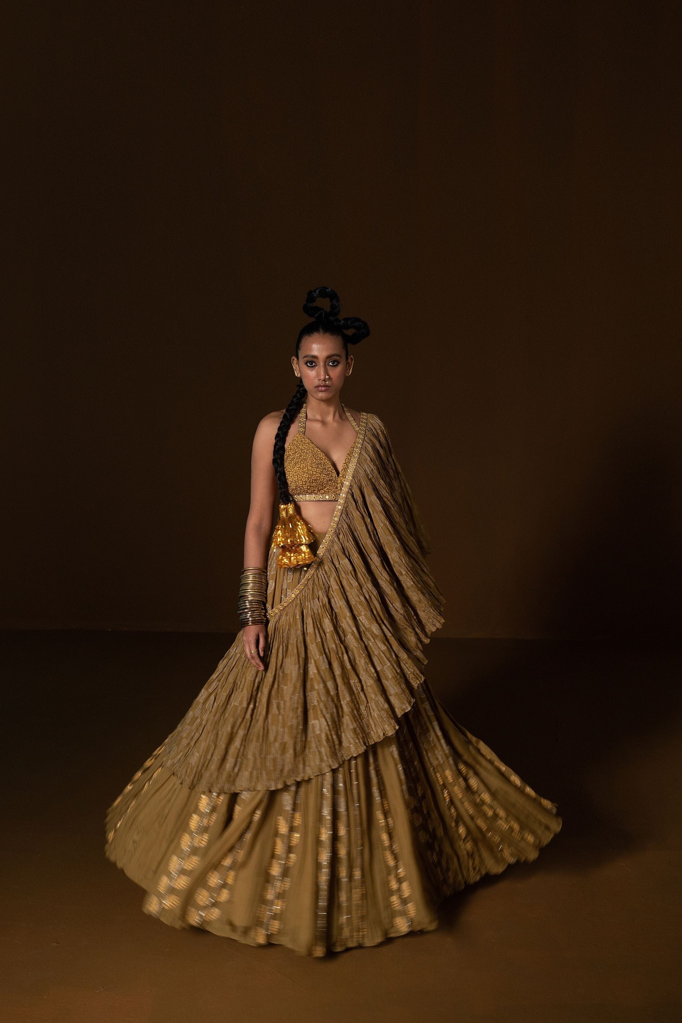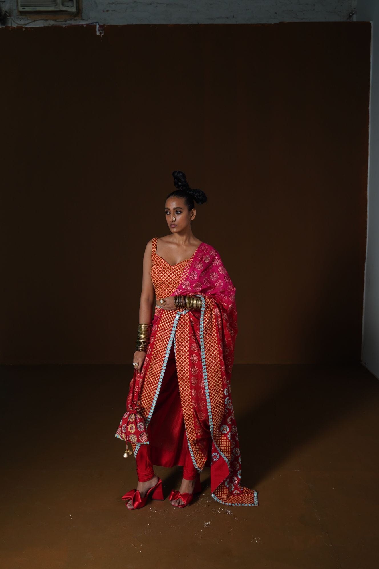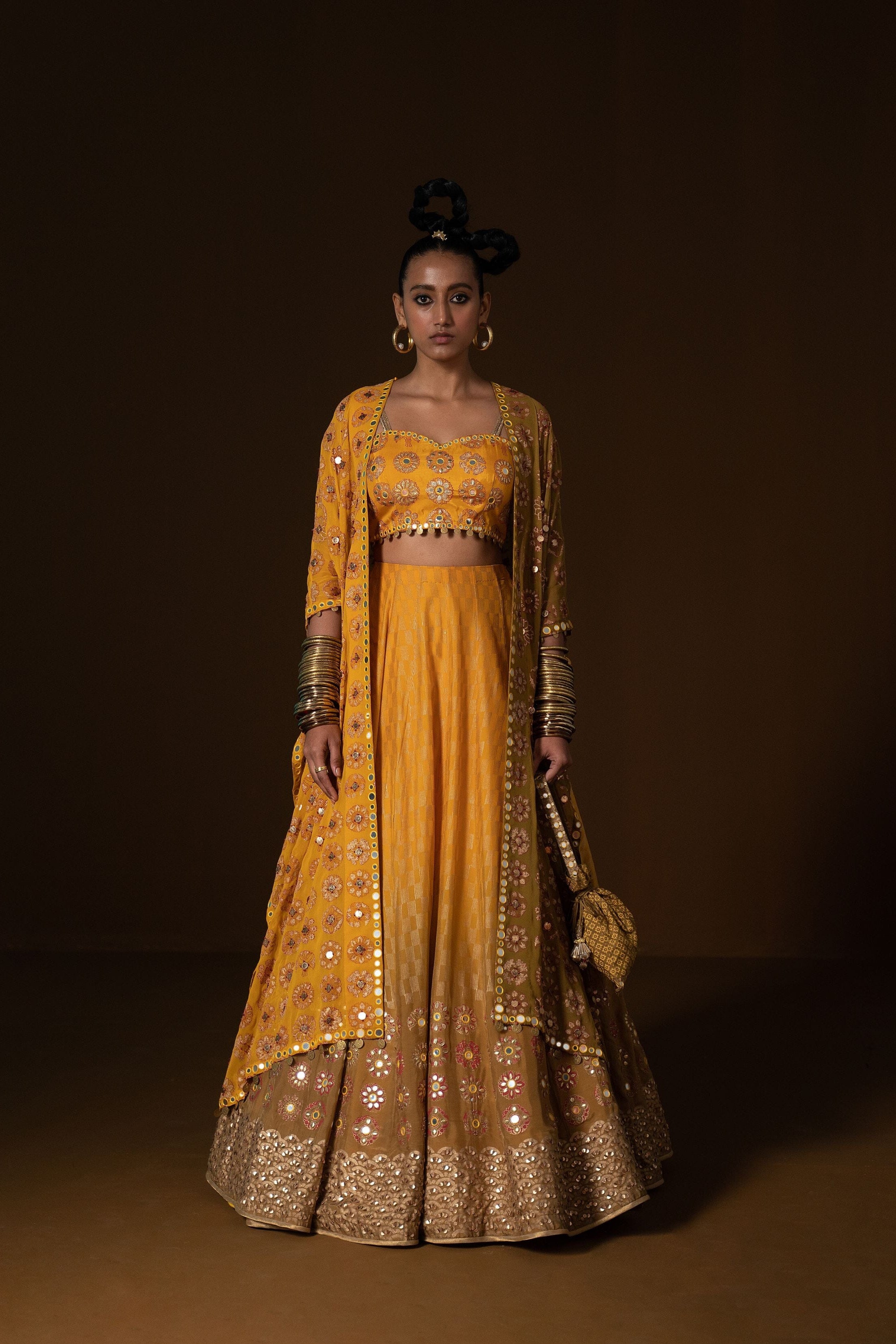 Pooja Rajgarhia Gupta’s style shouts vivid and bright with amalgamation of traditional aesthetics and modern design. The label’s signature geometric surface textures bring a new feel to Indian fluid silhouettes. Their collections are a refreshing shift from very heavy Indian clothing to easy playful silhouettes, statement colors, foiling, printing, intricate handwork and impactful geometric sequence work. Delivery period for this label is usually 20-25 days.