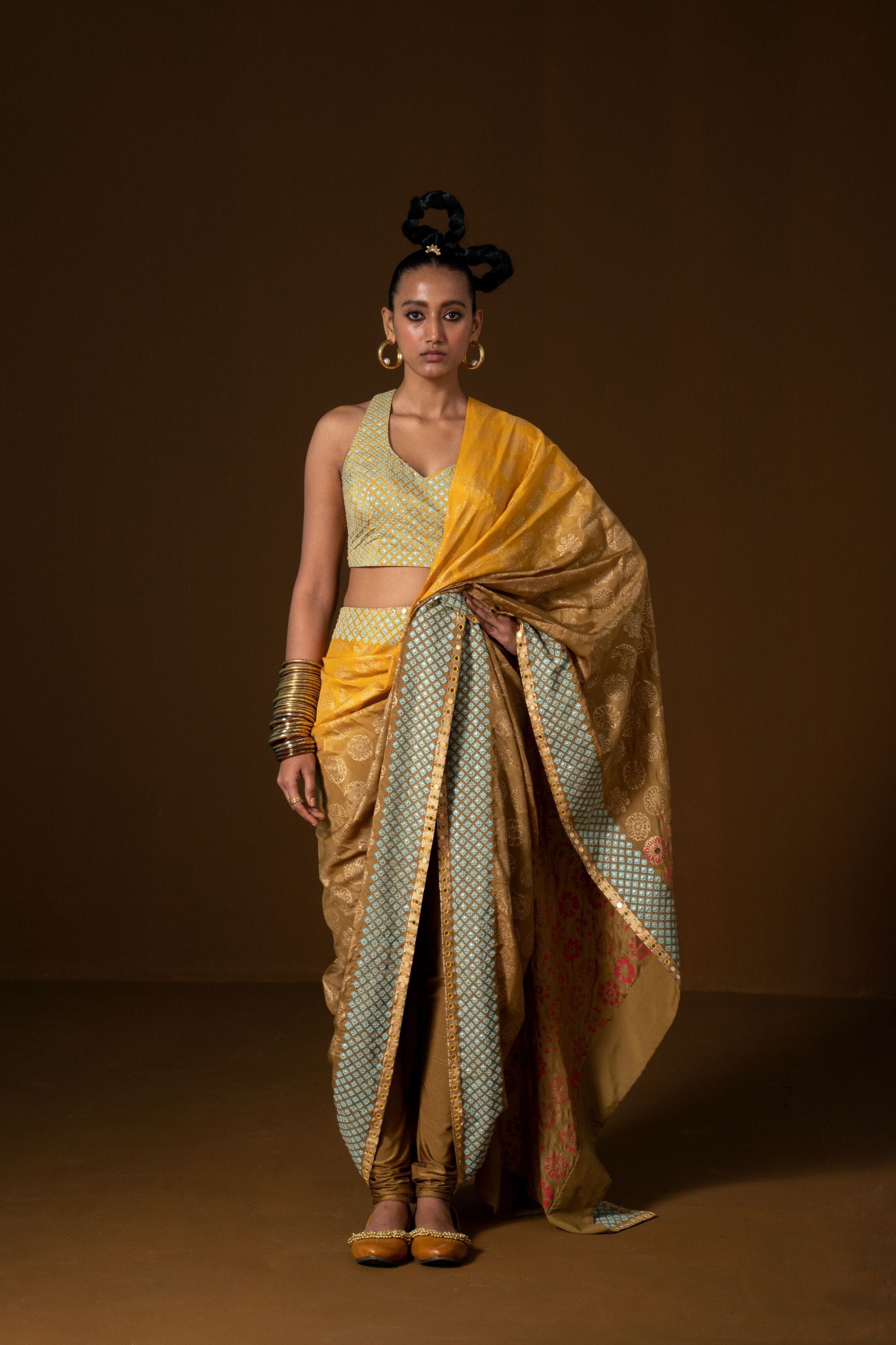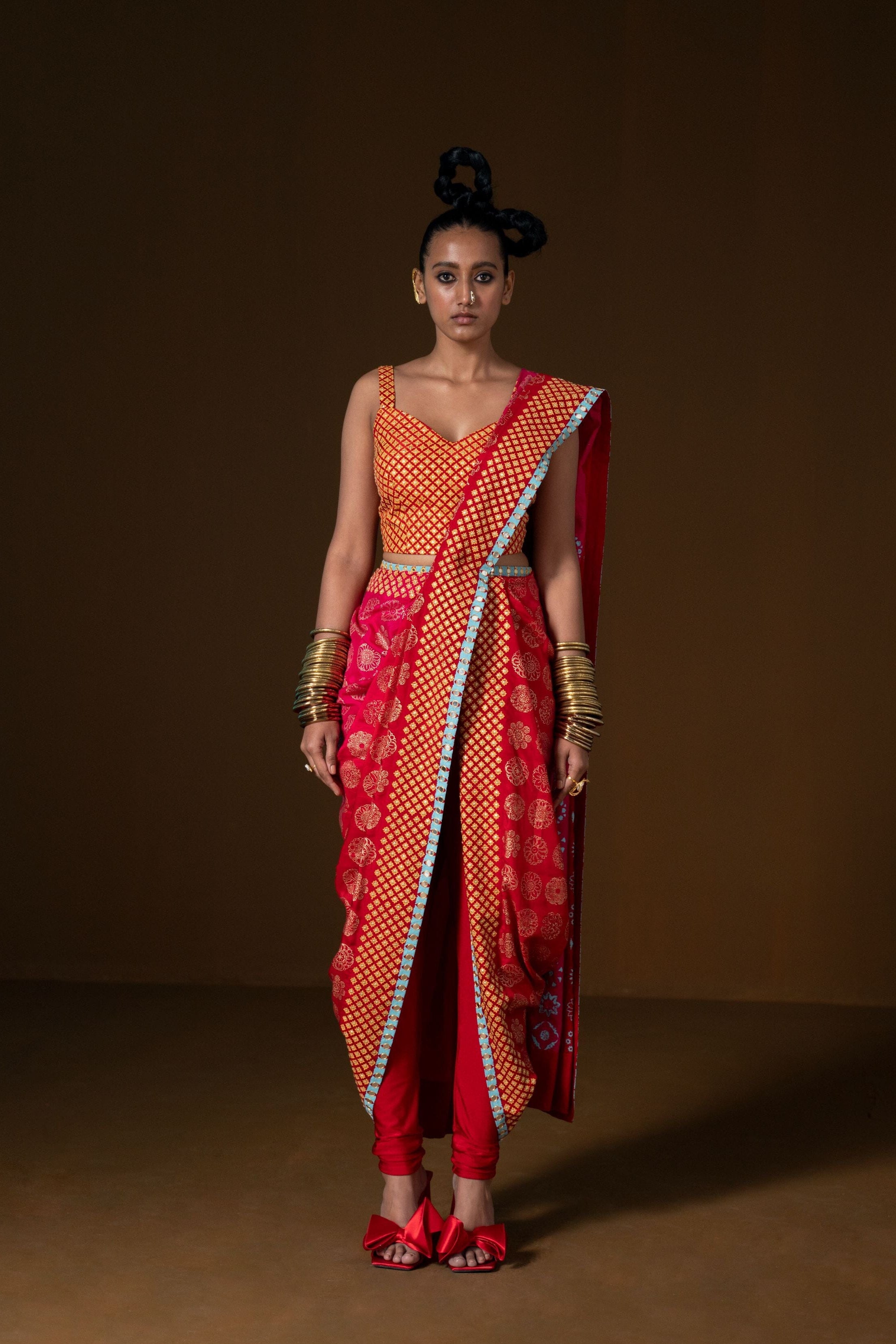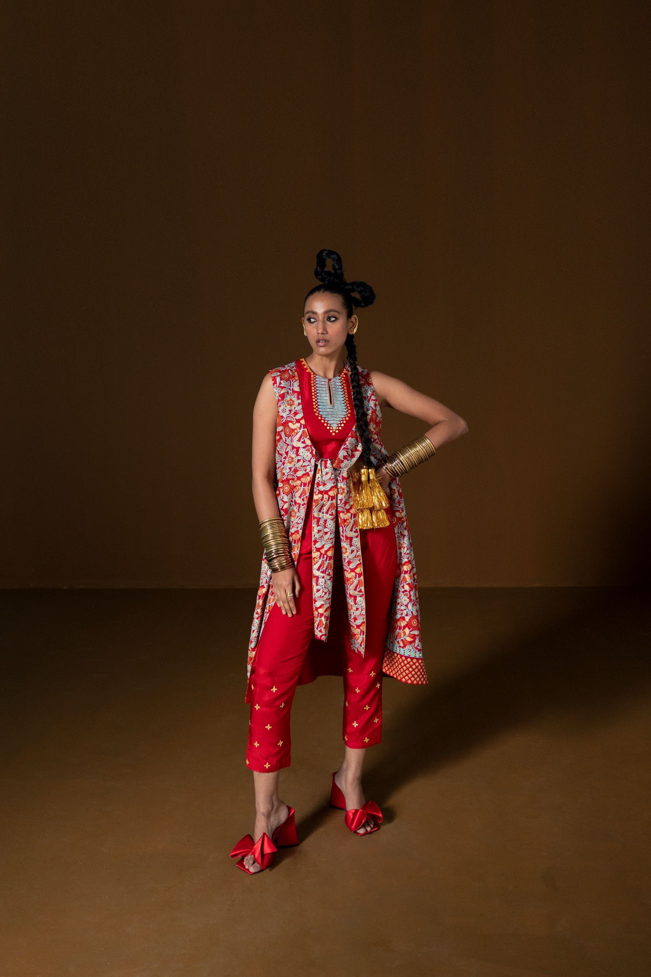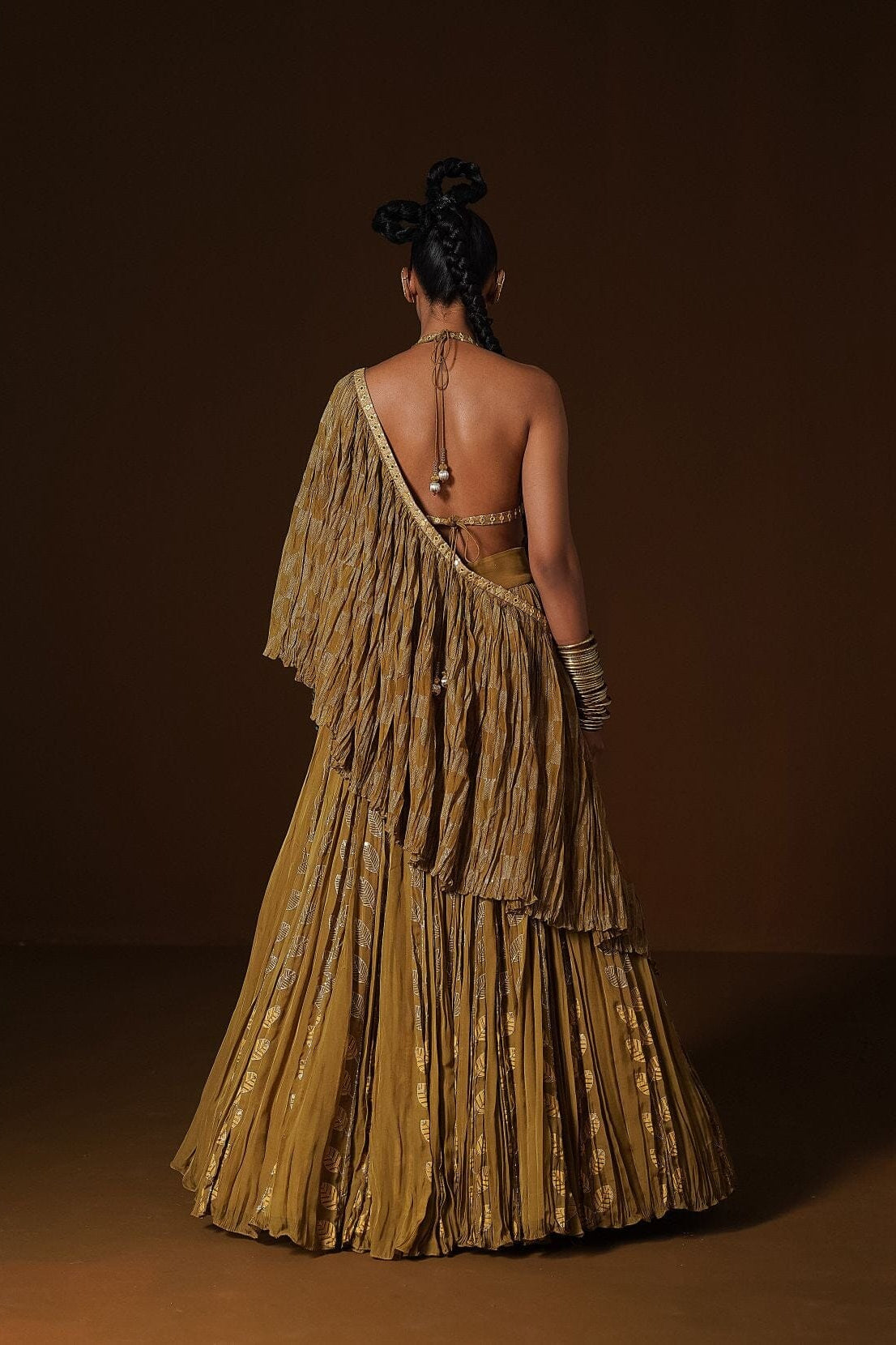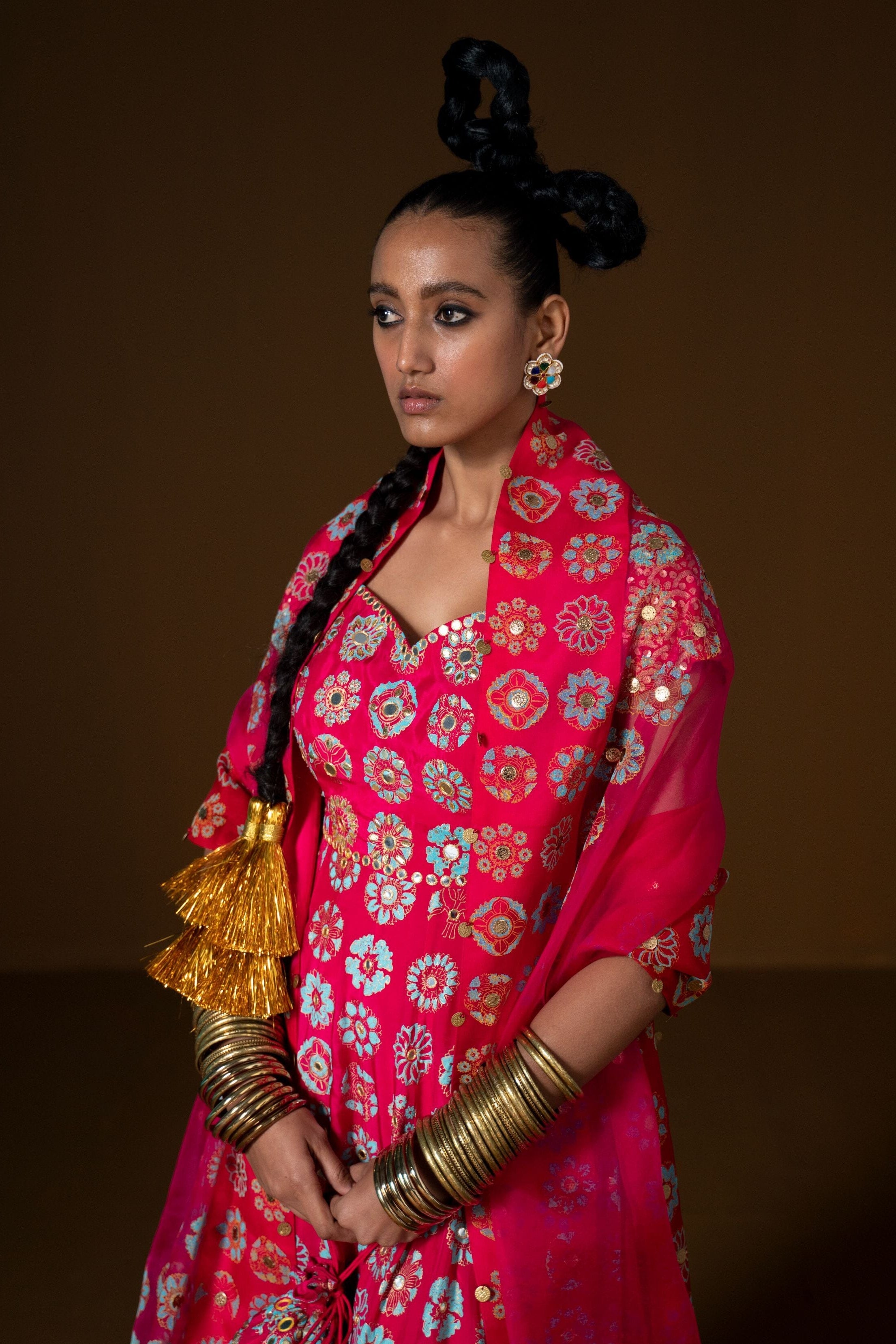 Pooja Rajgarhia Gupta’s style shouts vivid and bright with amalgamation of traditional aesthetics and modern design. The label’s signature geometric surface textures bring a new feel to Indian fluid silhouettes. Their collections are a refreshing shift from very heavy Indian clothing to easy playful silhouettes, statement colors, foiling, printing, intricate handwork and impactful geometric sequence work. Delivery period for this label is usually 20-25 days.