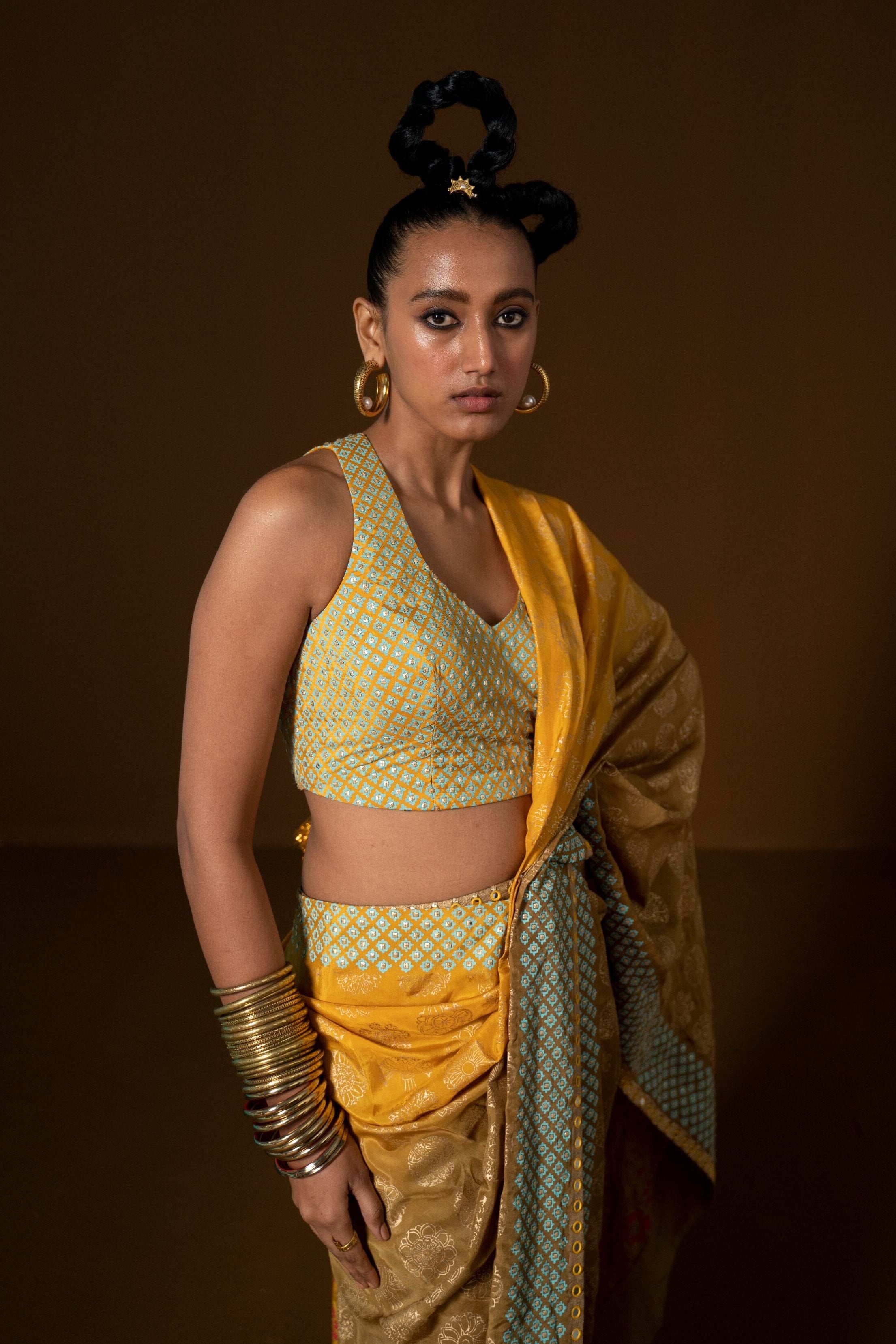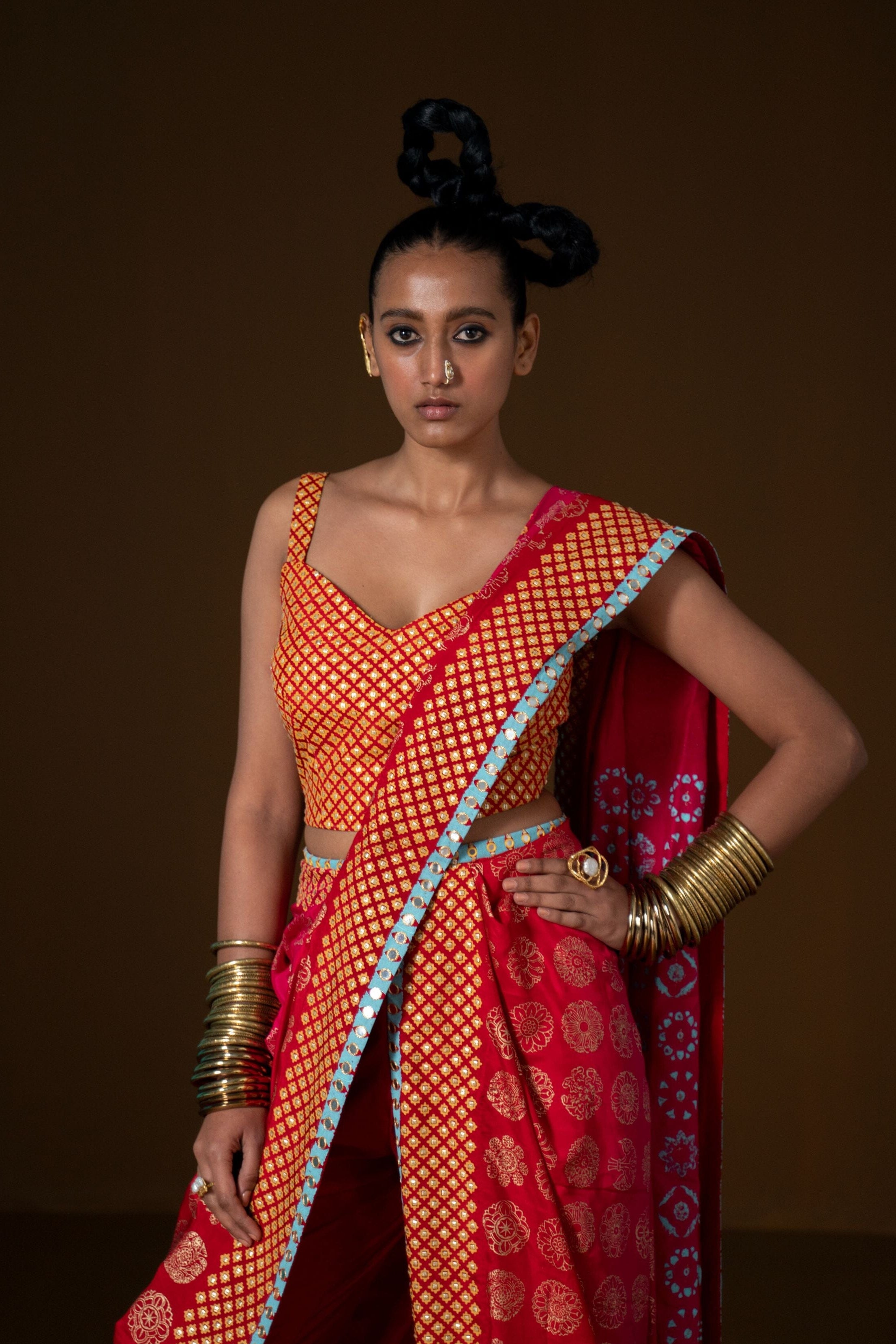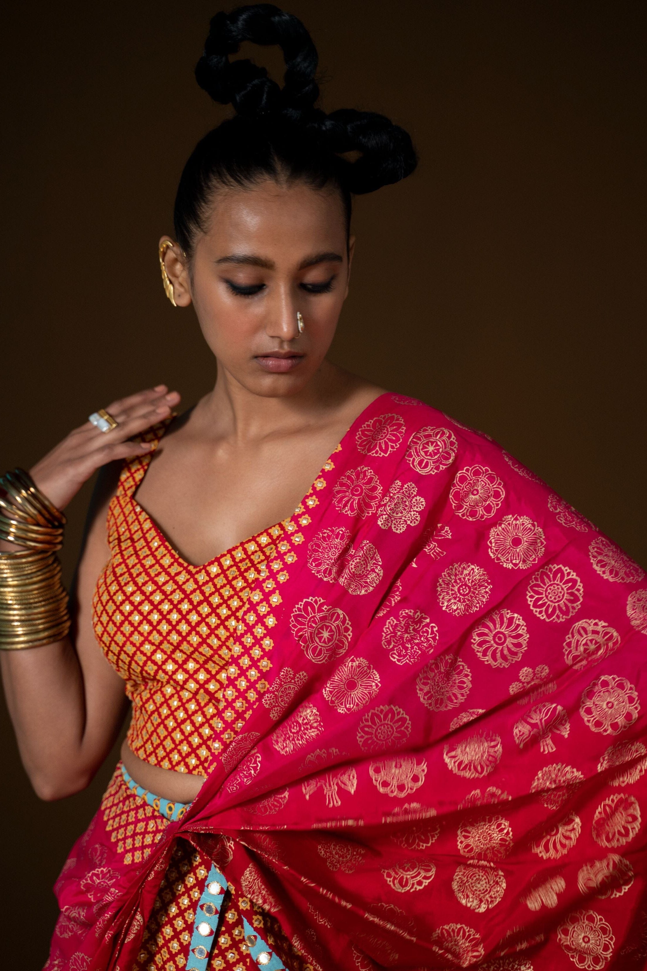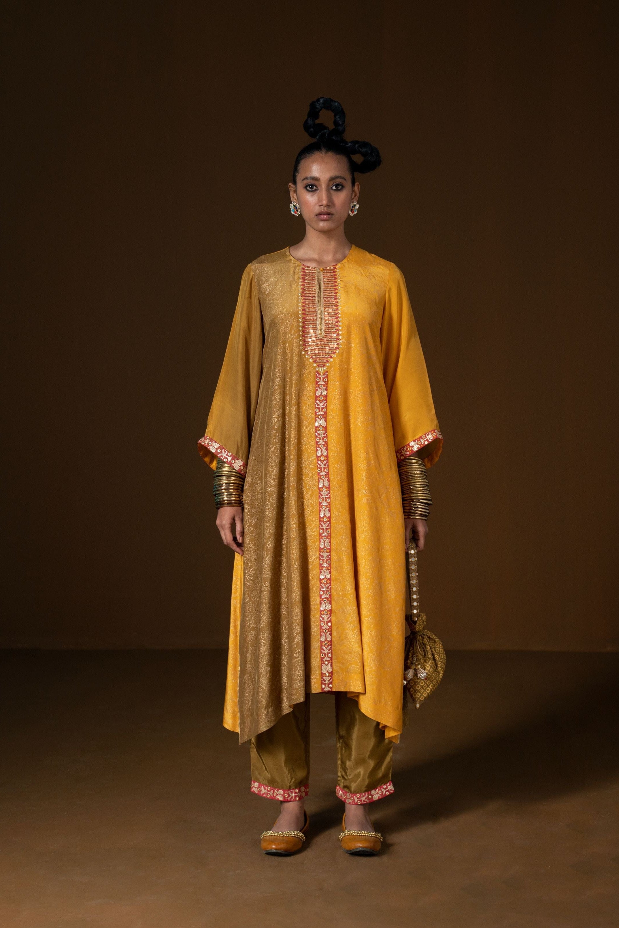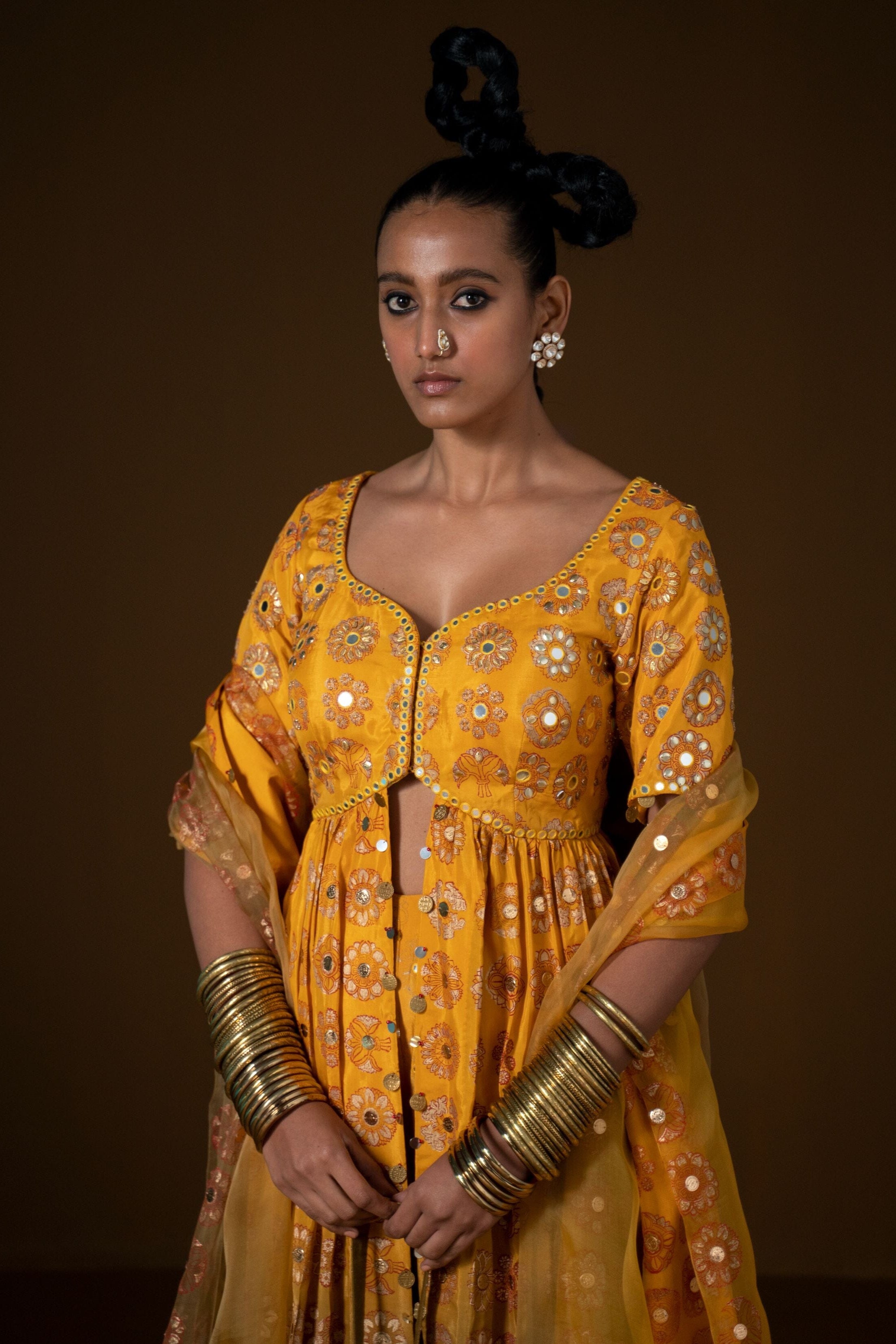 Pooja Rajgarhia Gupta’s style shouts vivid and bright with amalgamation of traditional aesthetics and modern design. The label’s signature geometric surface textures bring a new feel to Indian fluid silhouettes. Their collections are a refreshing shift from very heavy Indian clothing to easy playful silhouettes, statement colors, foiling, printing, intricate handwork and impactful geometric sequence work. Delivery period for this label is usually 20-25 days.
