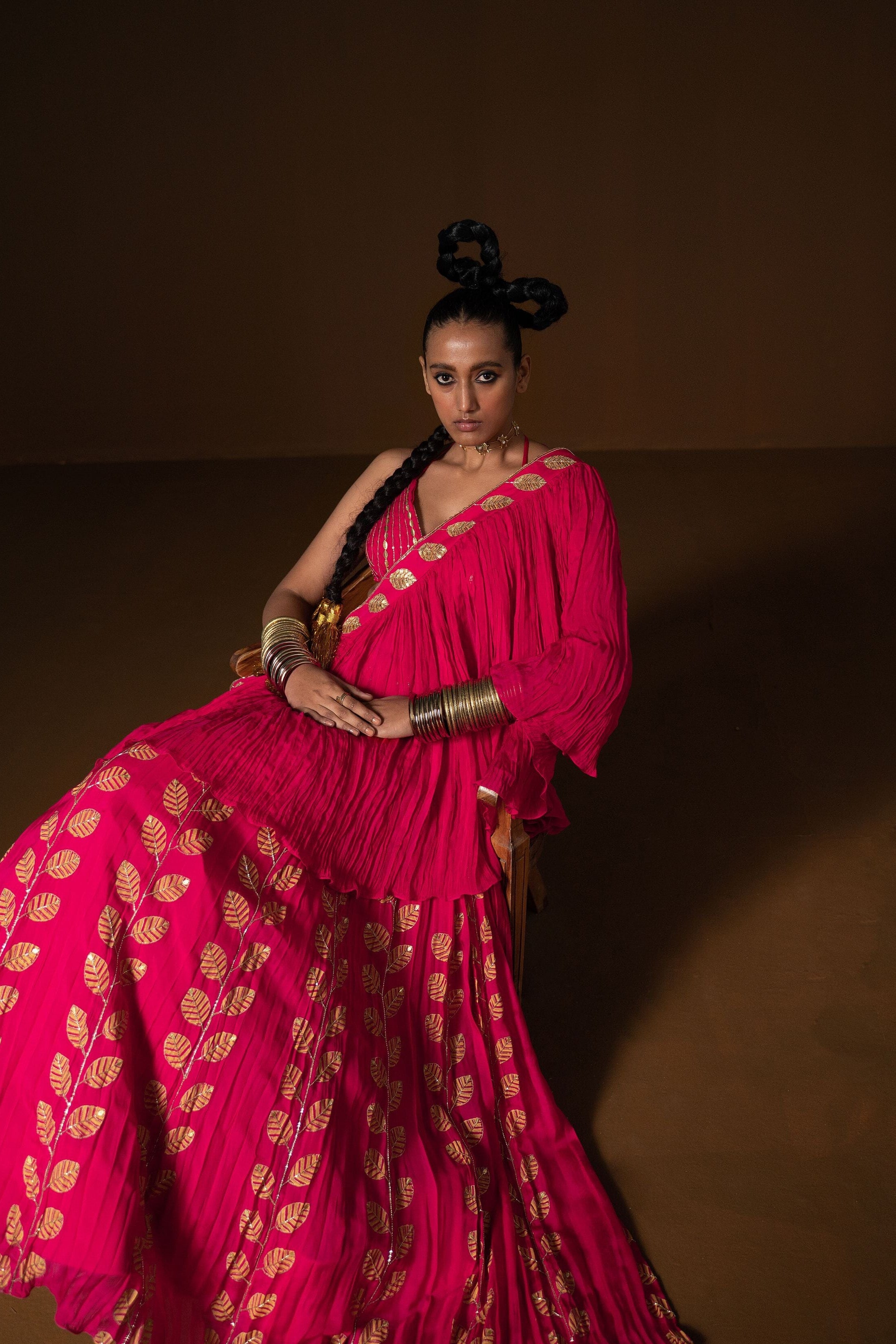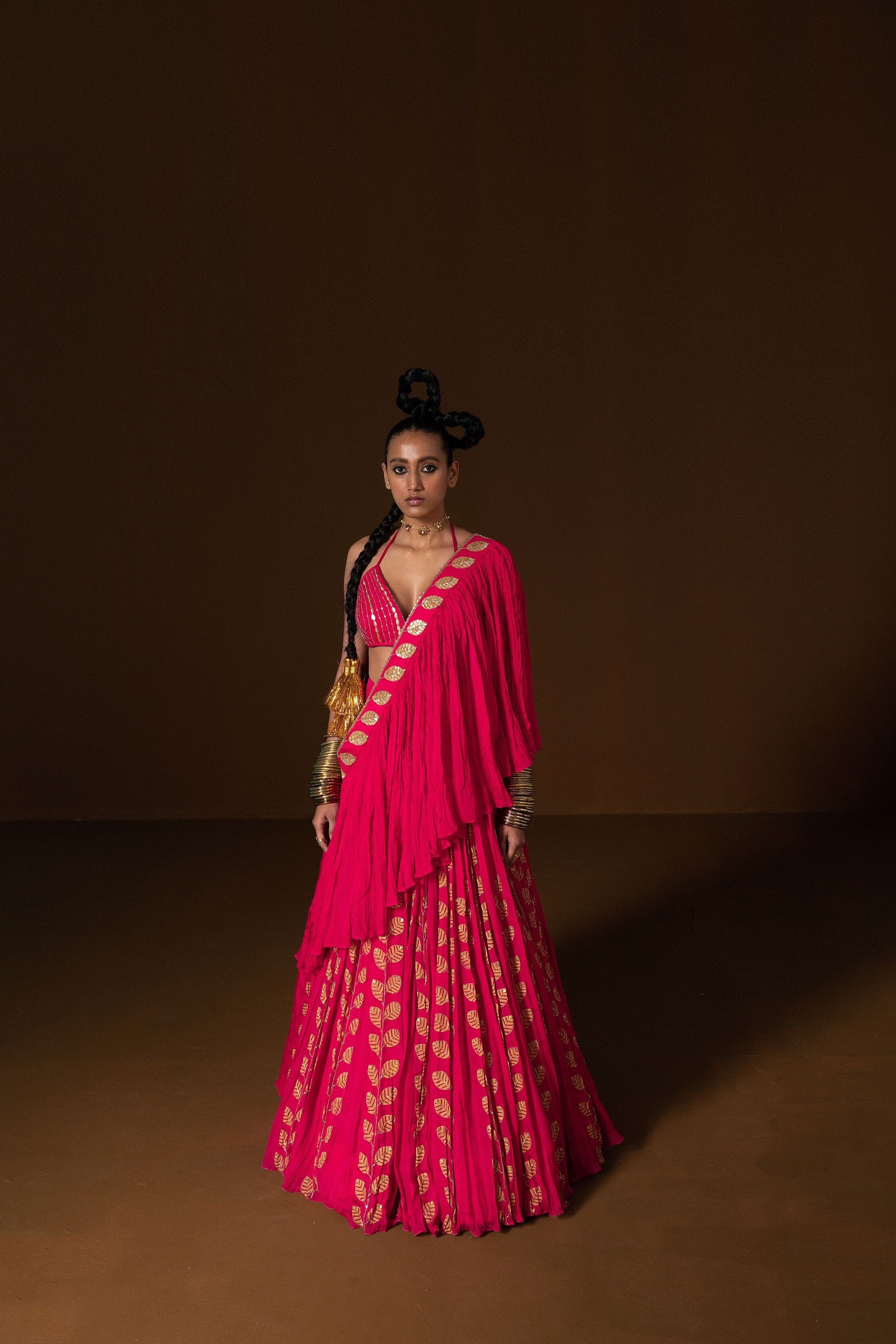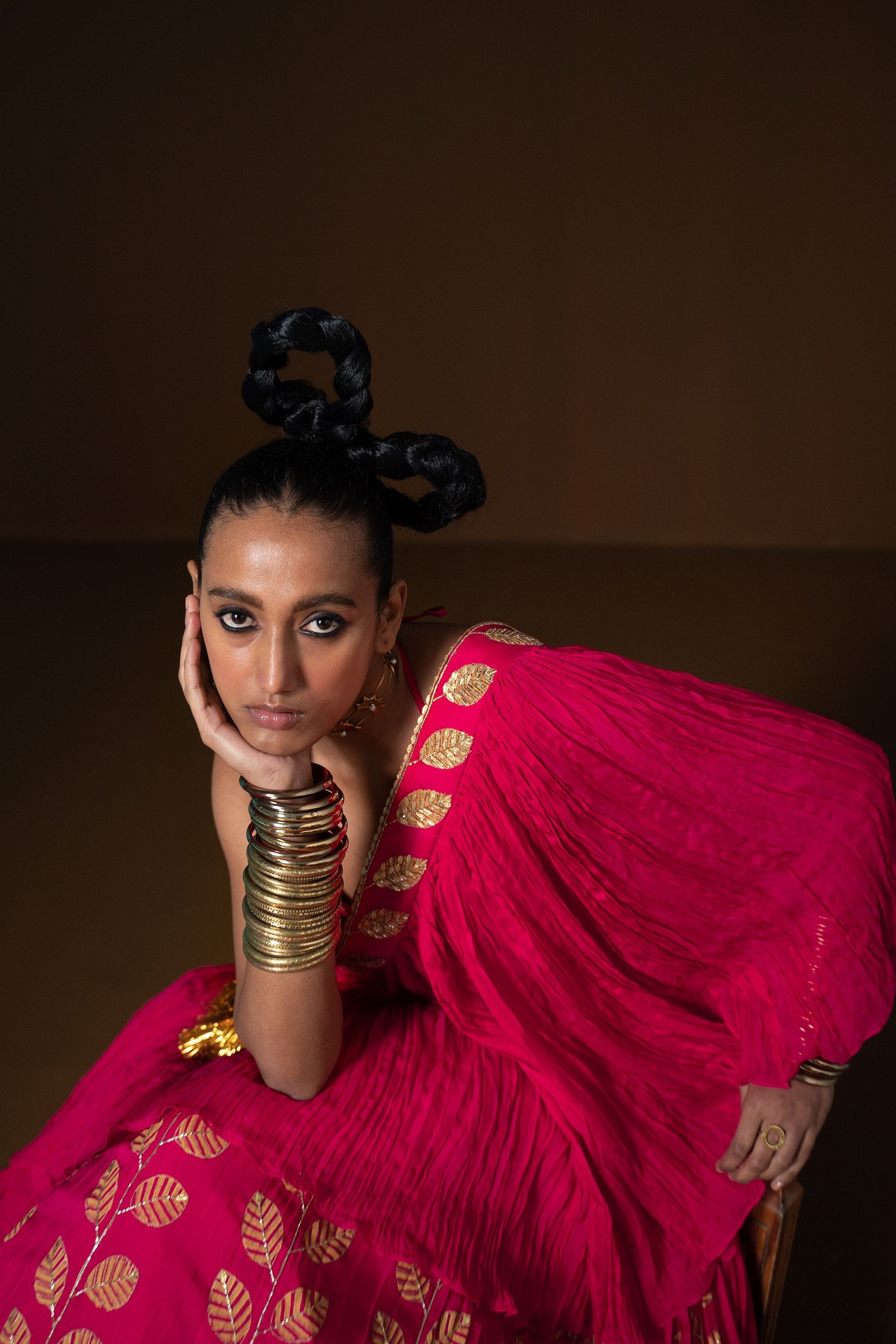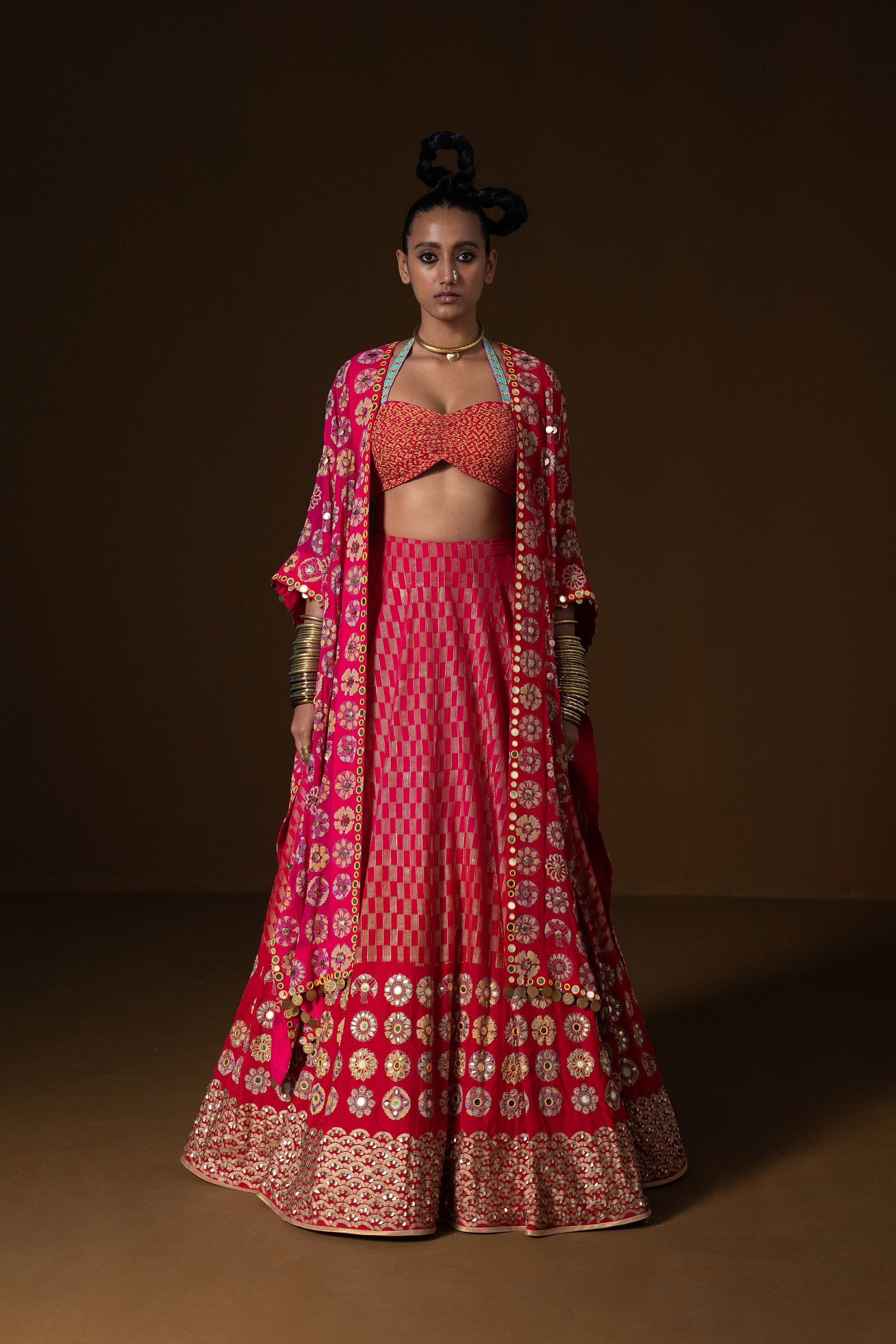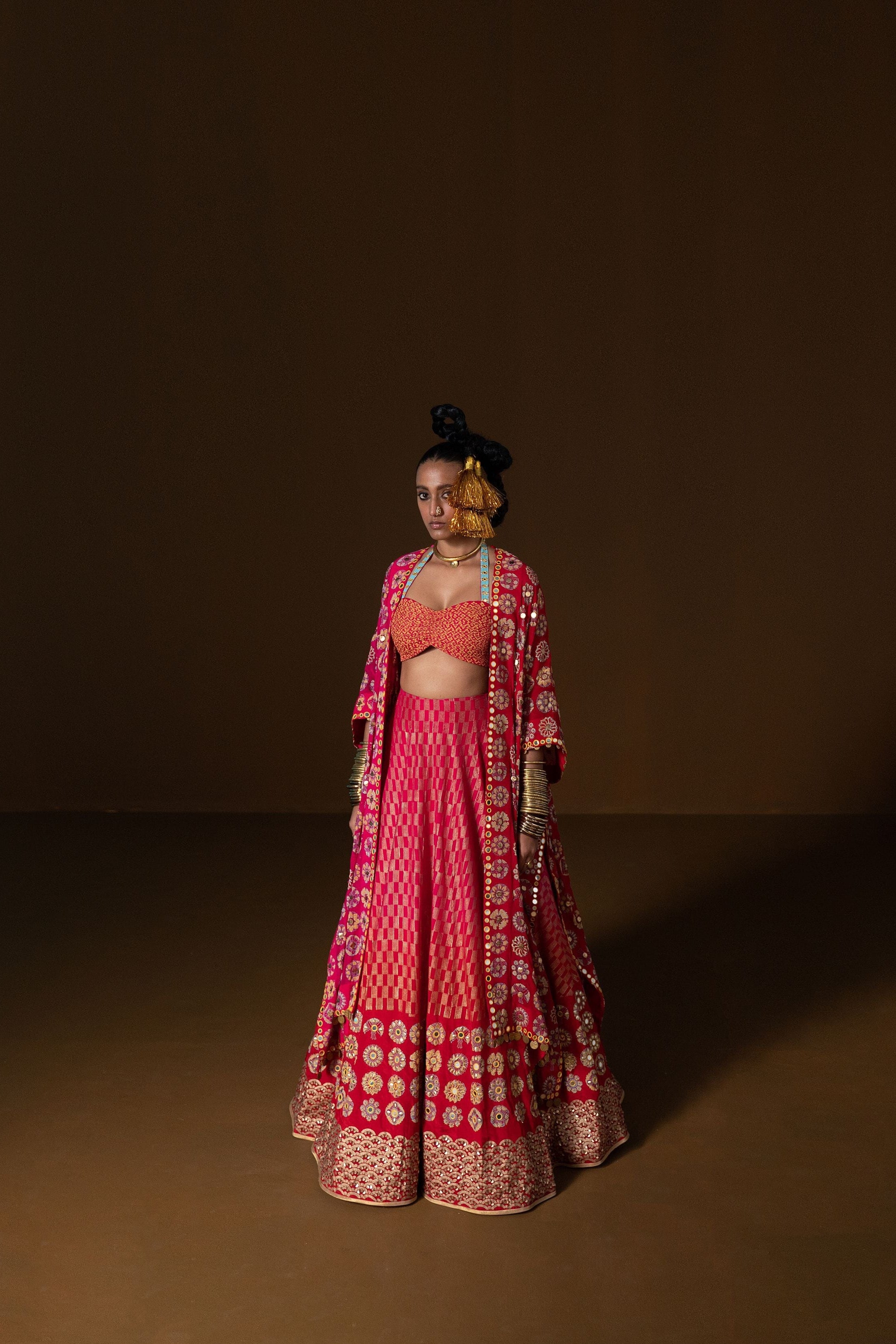 Pooja Rajgarhia Gupta’s style shouts vivid and bright with amalgamation of traditional aesthetics and modern design. The label’s signature geometric surface textures bring a new feel to Indian fluid silhouettes. Their collections are a refreshing shift from very heavy Indian clothing to easy playful silhouettes, statement colors, foiling, printing, intricate handwork and impactful geometric sequence work. Delivery period for this label is usually 20-25 days.