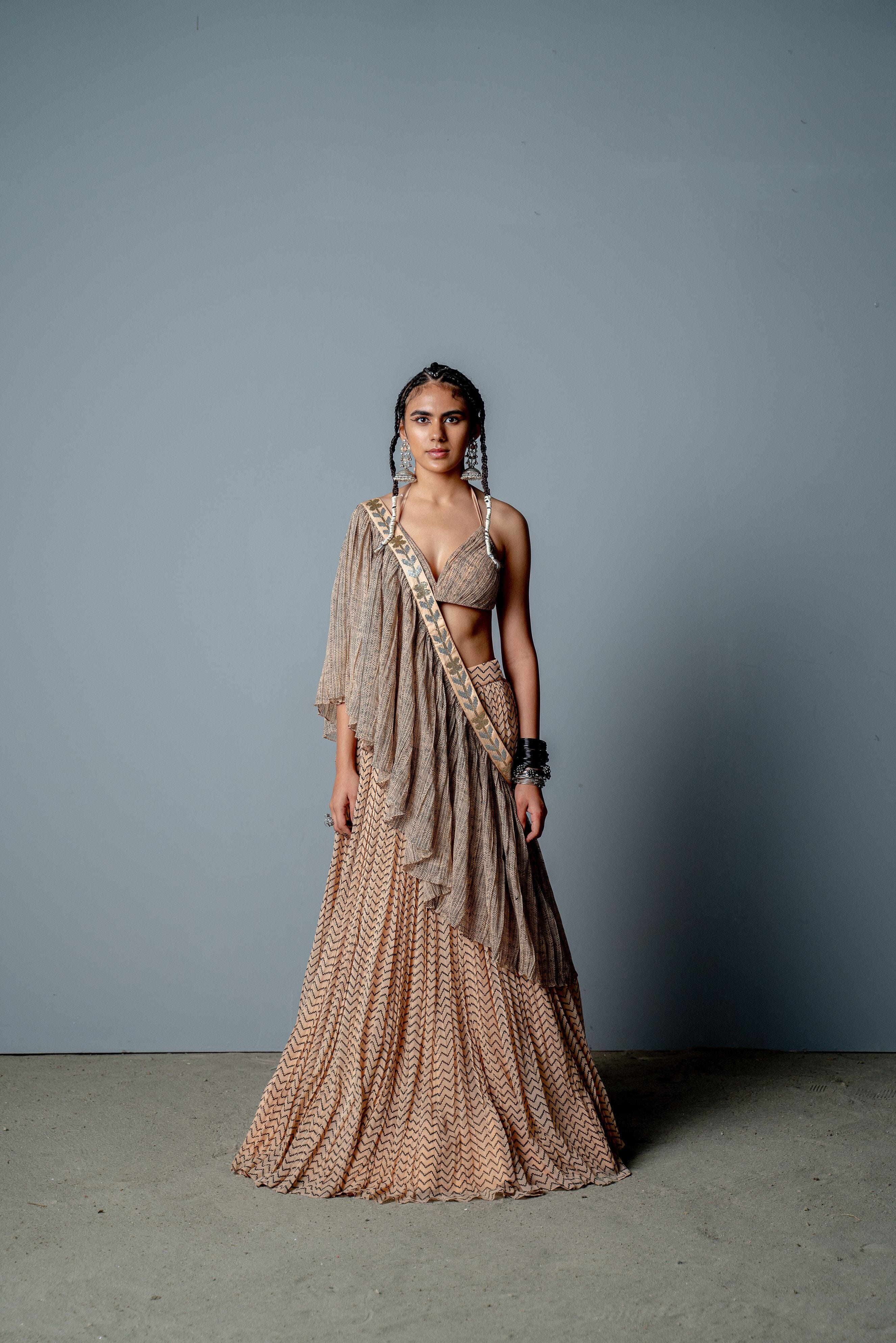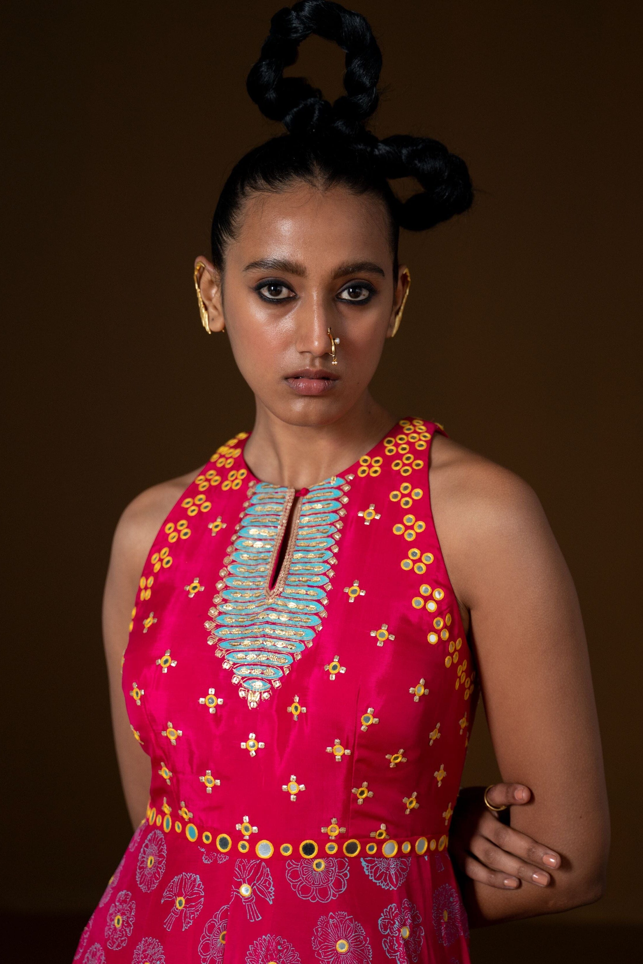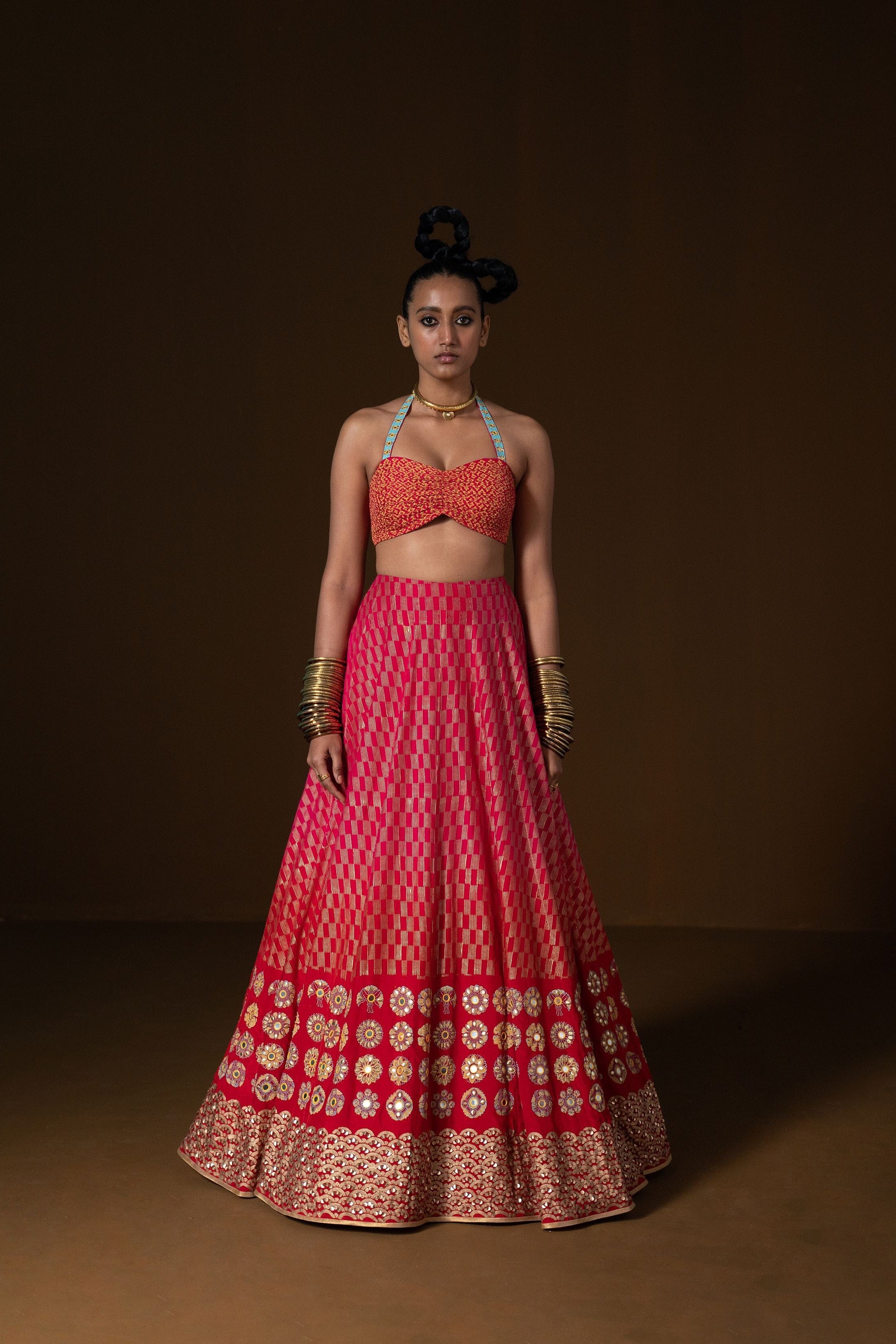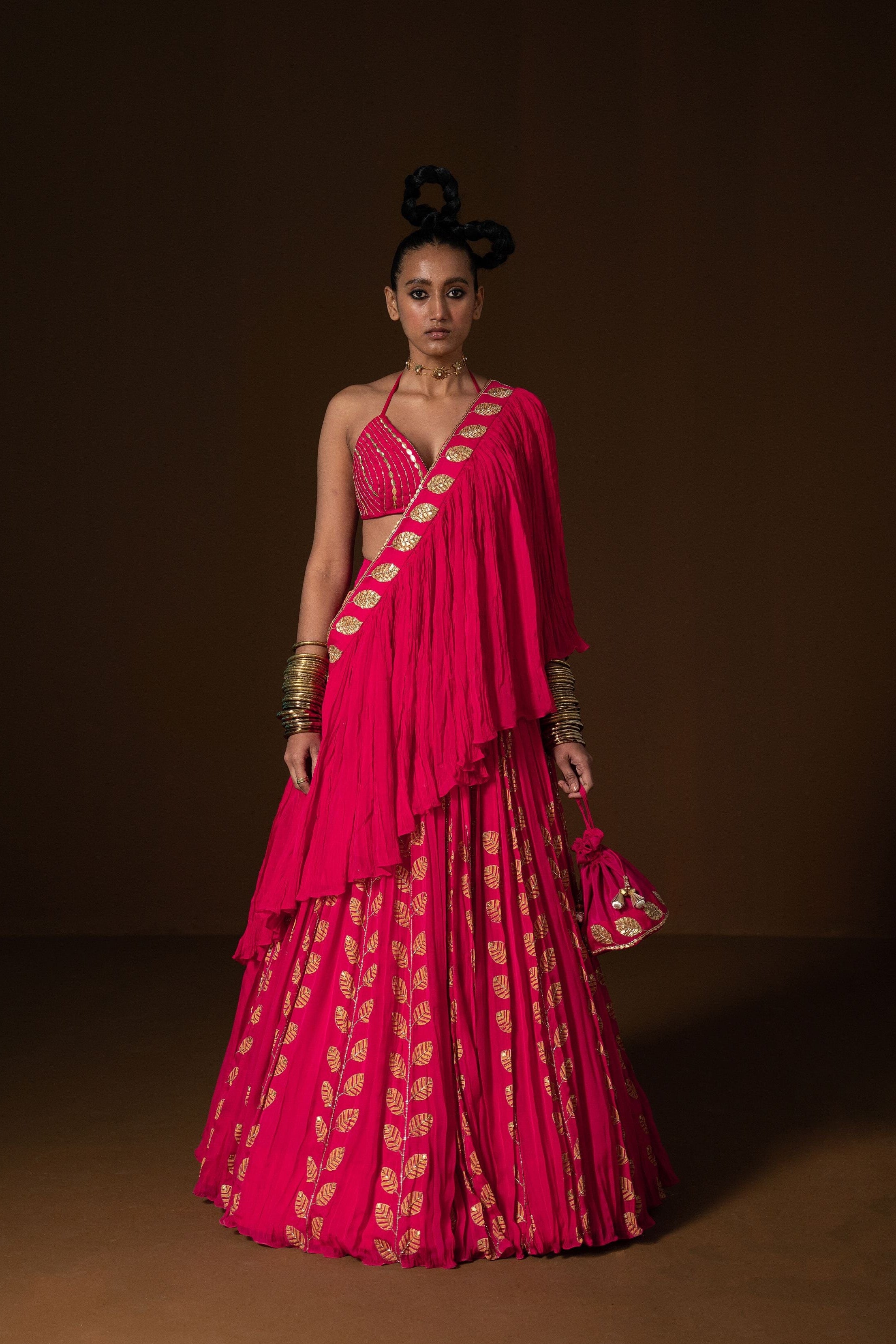 Pooja Rajgarhia Gupta’s style shouts vivid and bright with amalgamation of traditional aesthetics and modern design. The label’s signature geometric surface textures bring a new feel to Indian fluid silhouettes. Their collections are a refreshing shift from very heavy Indian clothing to easy playful silhouettes, statement colors, foiling, printing, intricate handwork and impactful geometric sequence work. Delivery period for this label is usually 20-25 days.