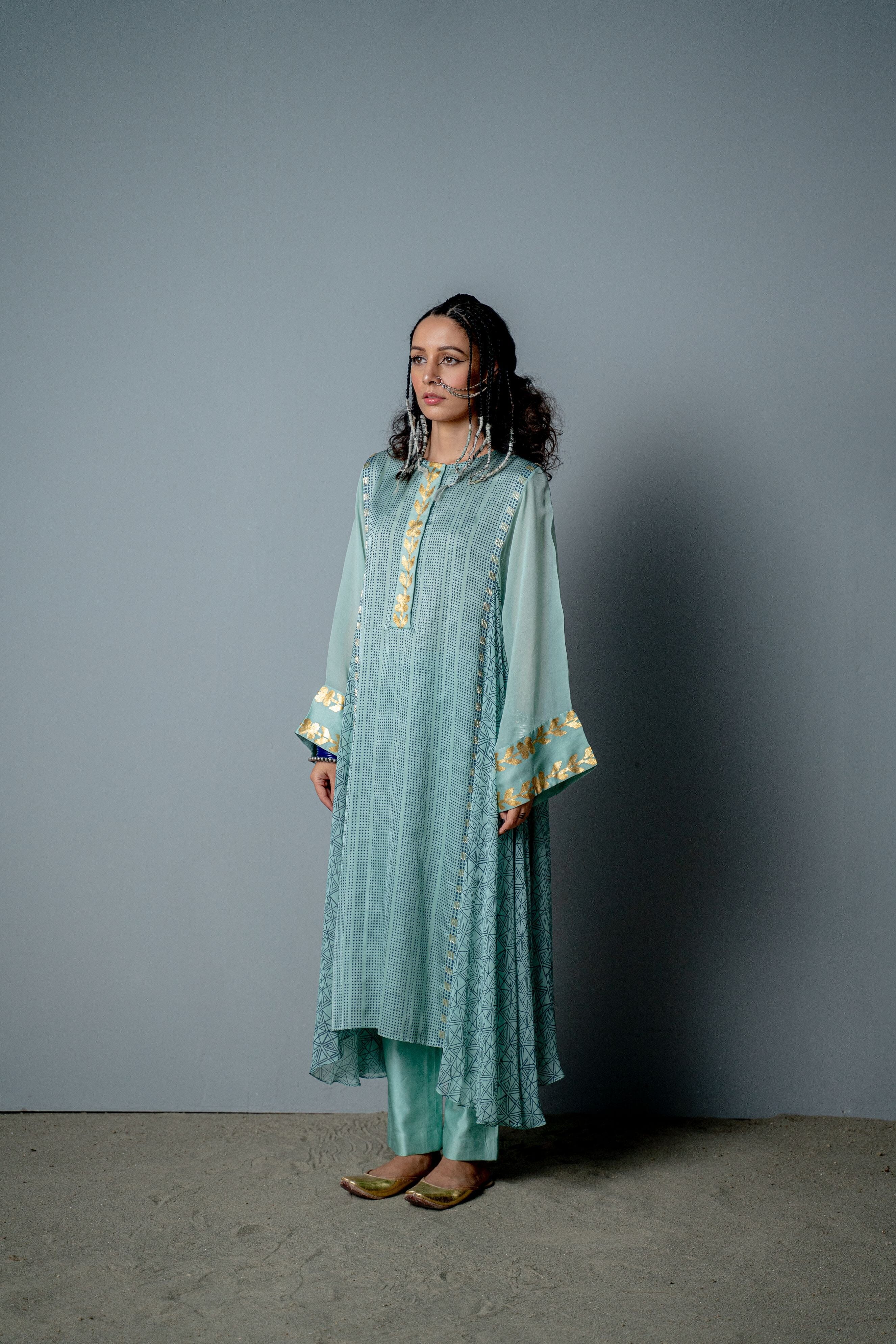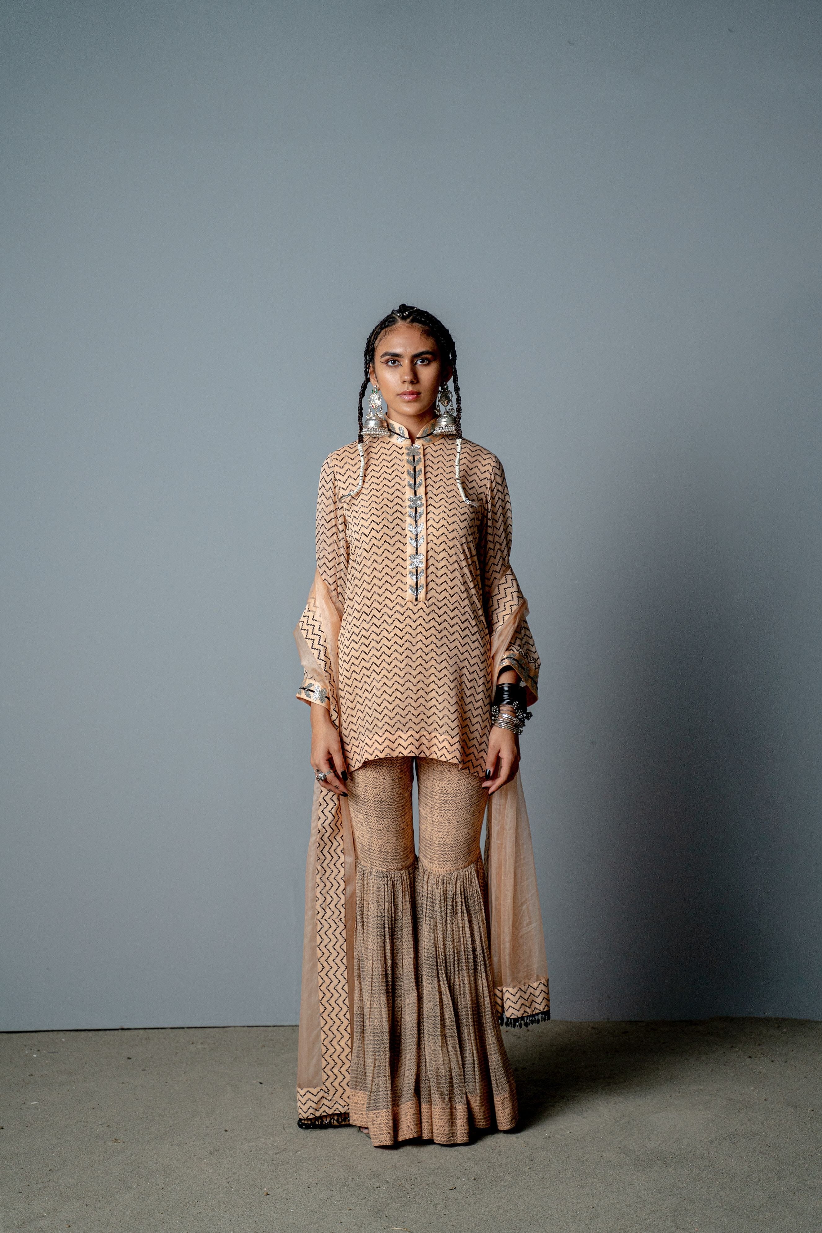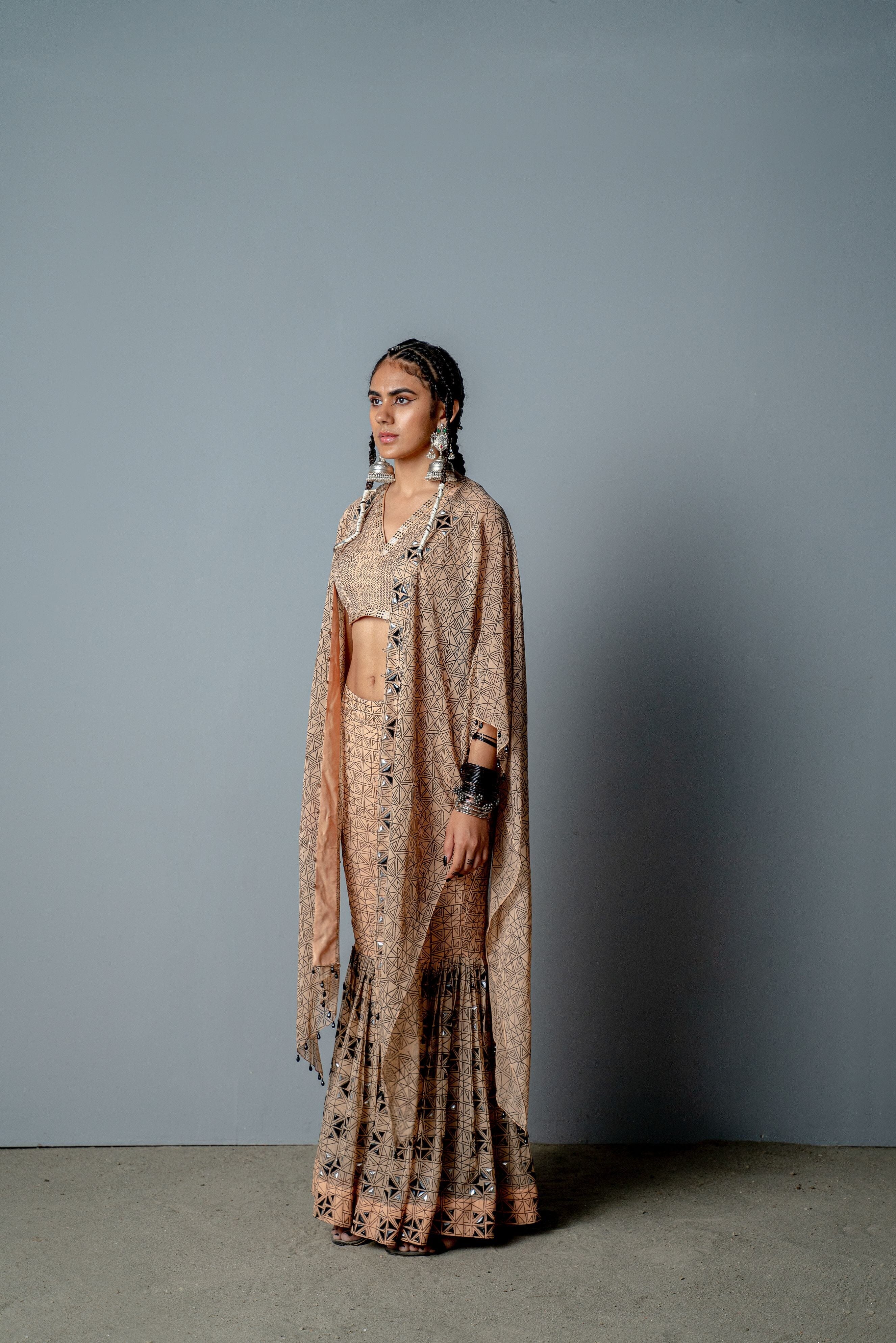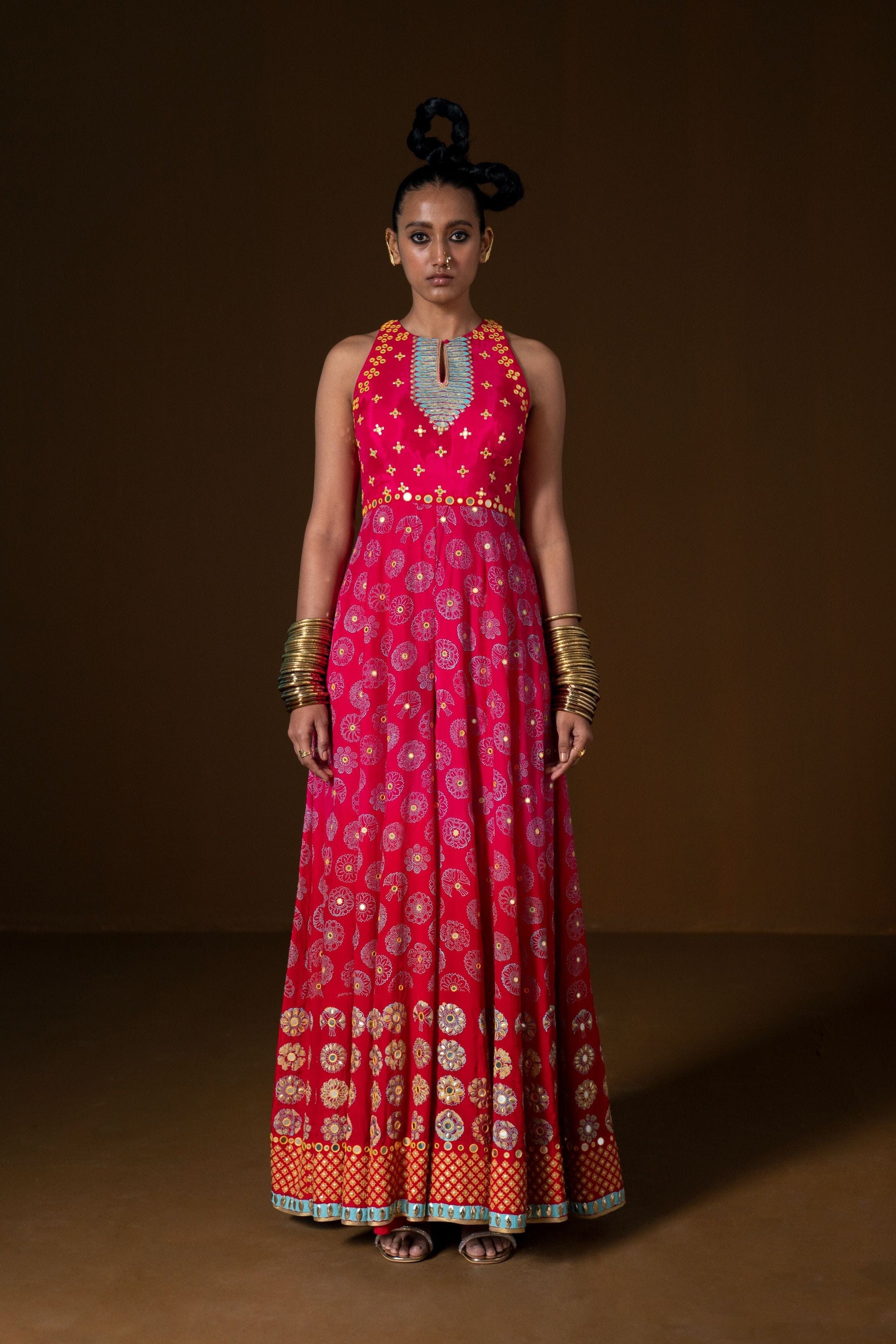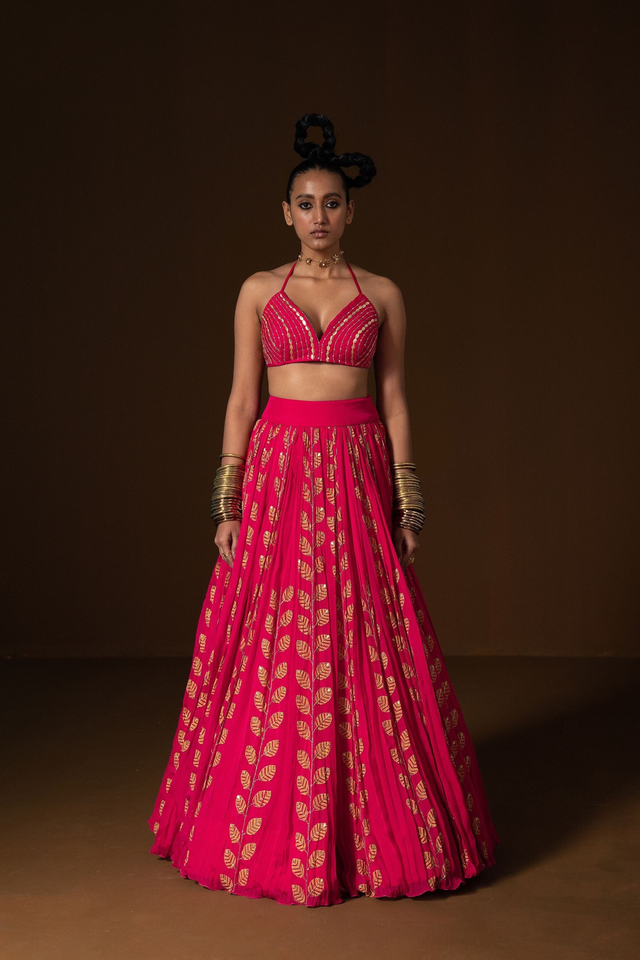 Pooja Rajgarhia Gupta’s style shouts vivid and bright with amalgamation of traditional aesthetics and modern design. The label’s signature geometric surface textures bring a new feel to Indian fluid silhouettes. Their collections are a refreshing shift from very heavy Indian clothing to easy playful silhouettes, statement colors, foiling, printing, intricate handwork and impactful geometric sequence work. Delivery period for this label is usually 20-25 days.