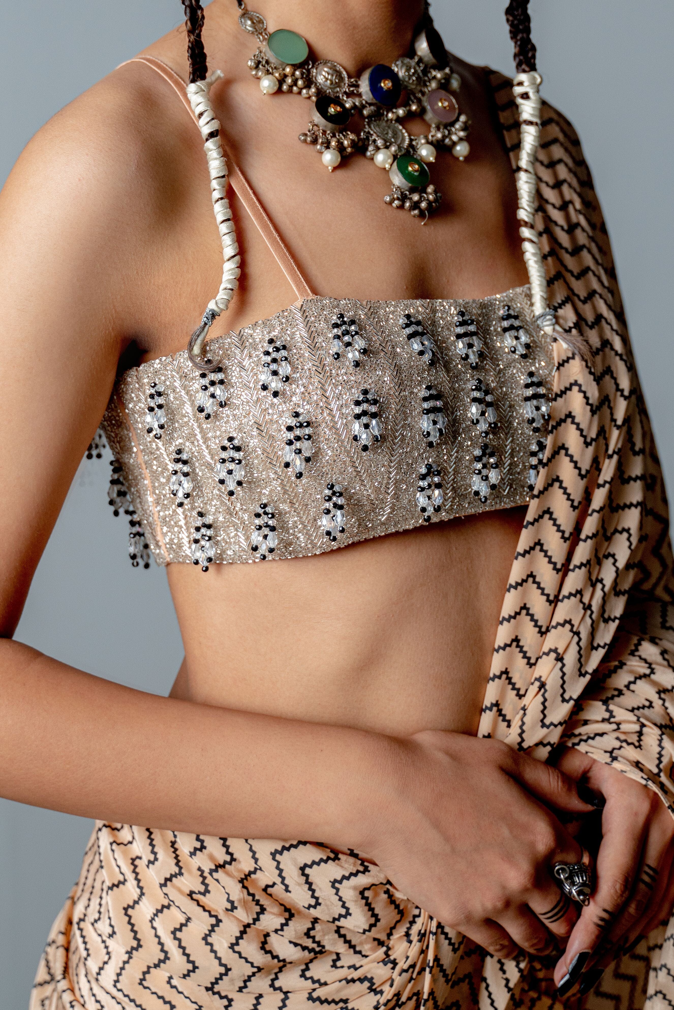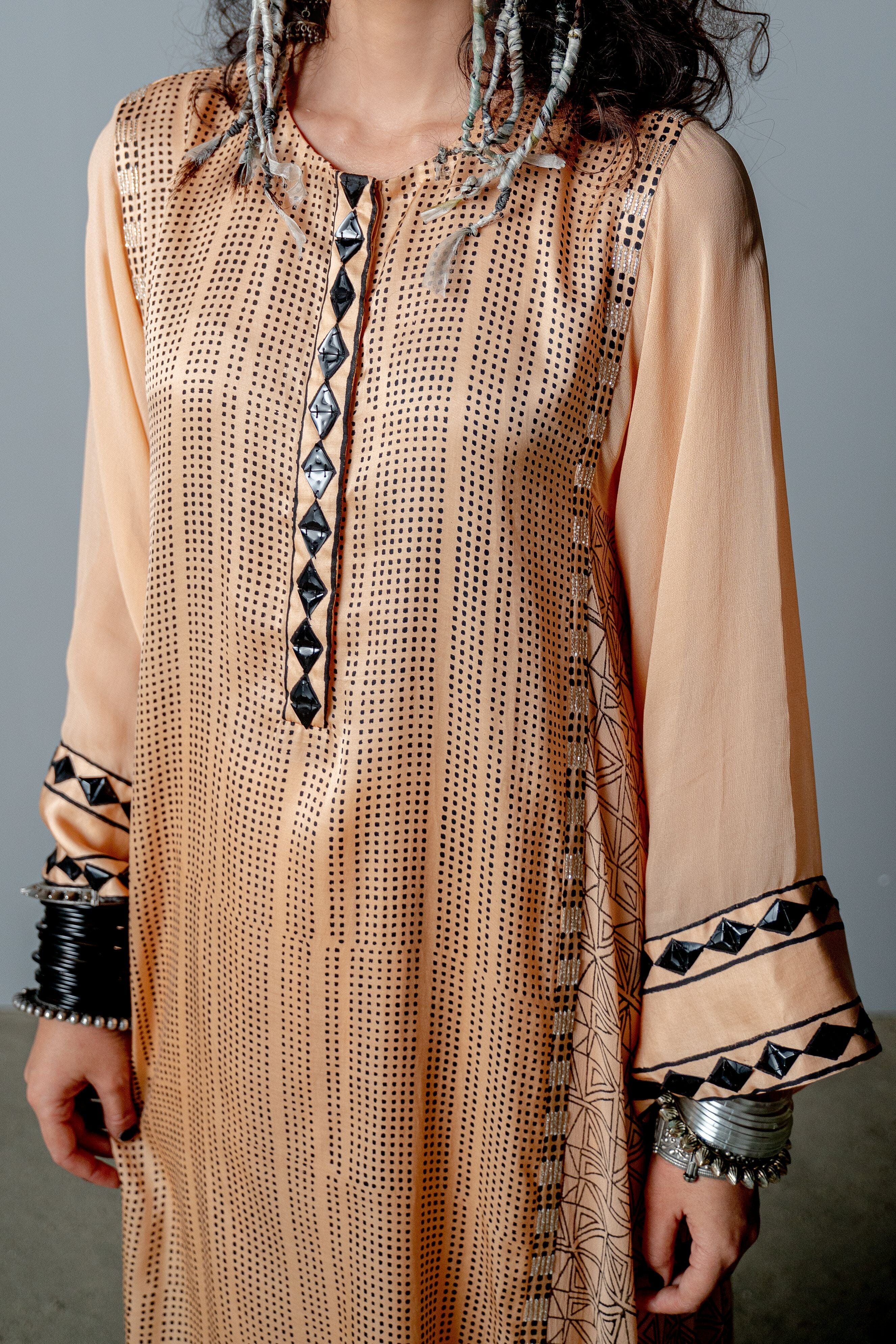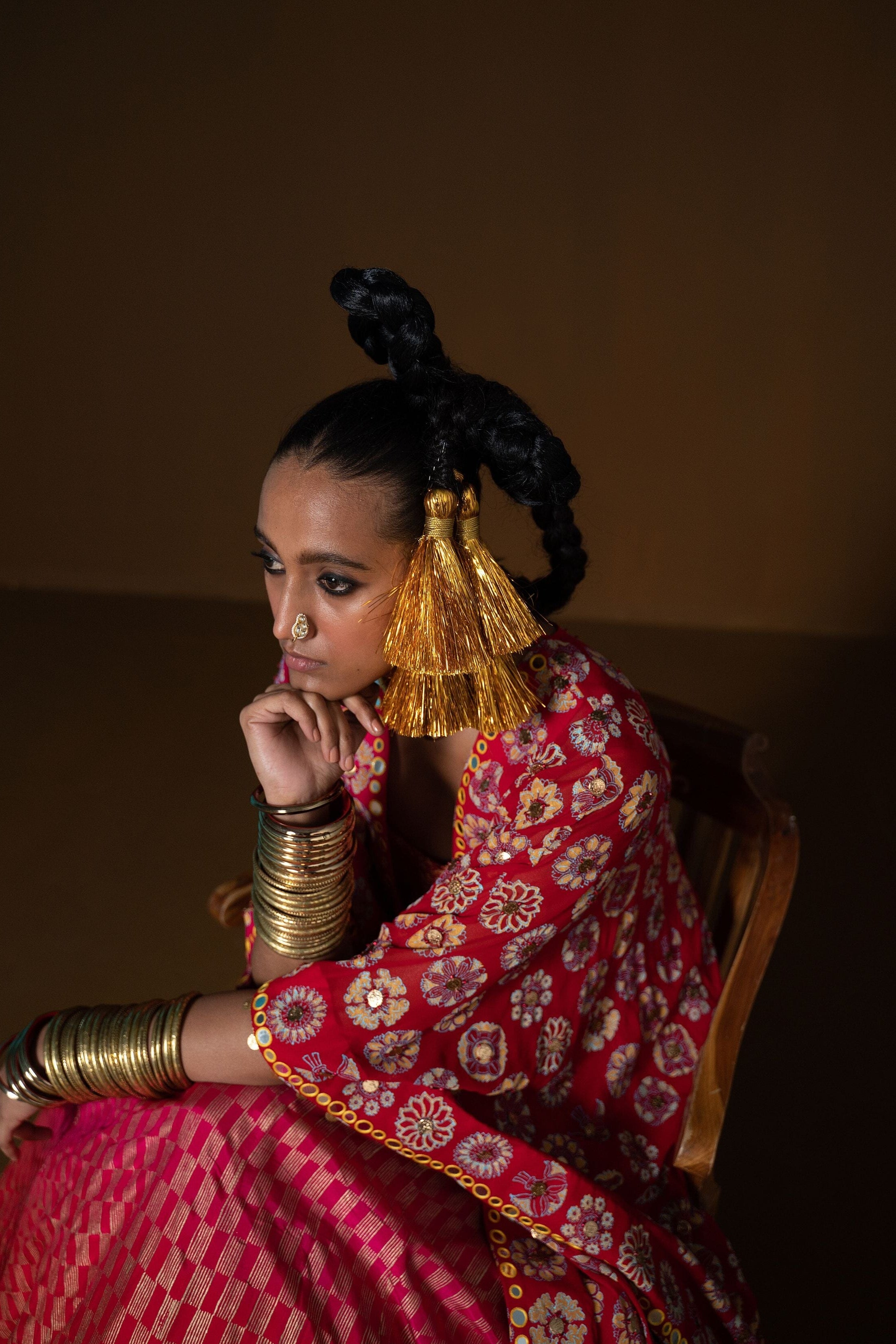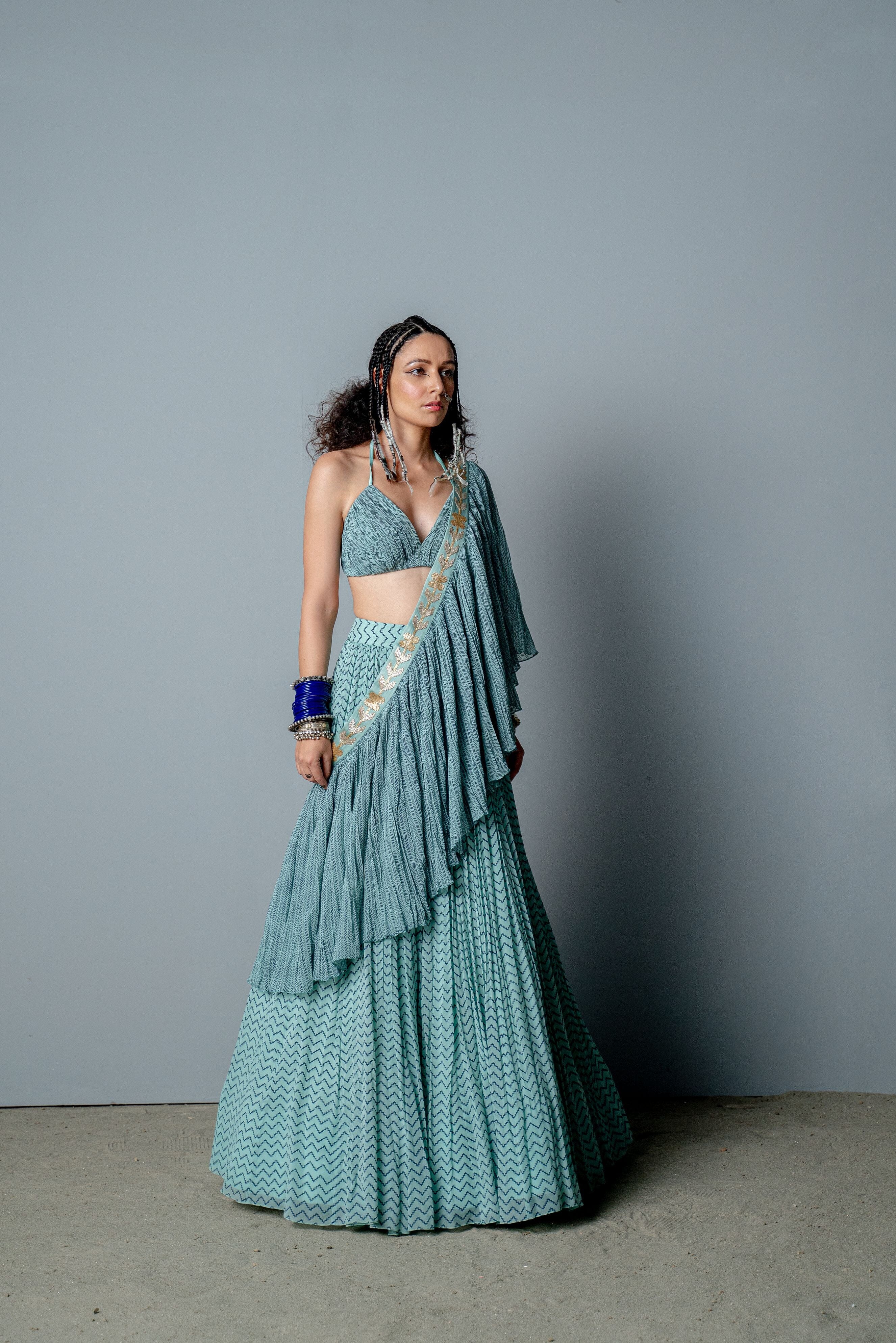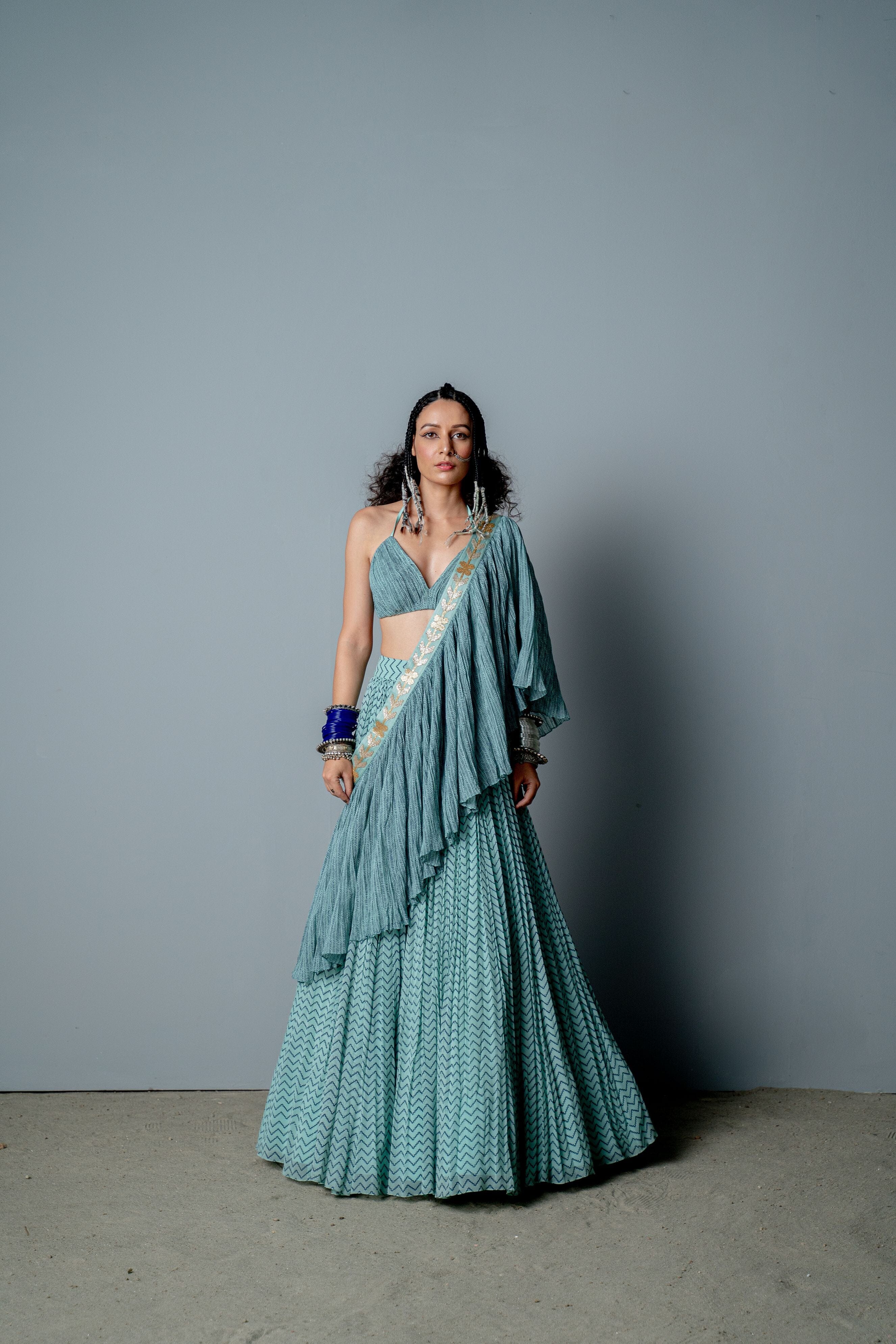 Pooja Rajgarhia Gupta’s style shouts vivid and bright with amalgamation of traditional aesthetics and modern design. The label’s signature geometric surface textures bring a new feel to Indian fluid silhouettes. Their collections are a refreshing shift from very heavy Indian clothing to easy playful silhouettes, statement colors, foiling, printing, intricate handwork and impactful geometric sequence work. Delivery period for this label is usually 20-25 days.