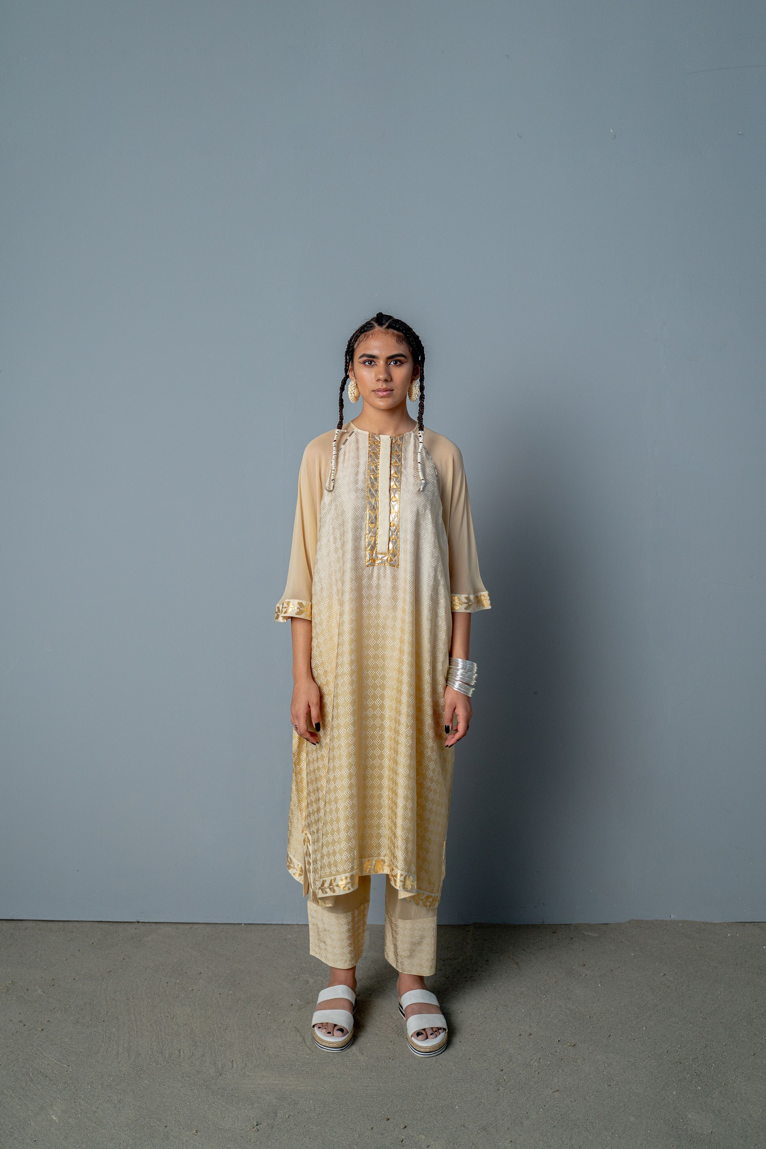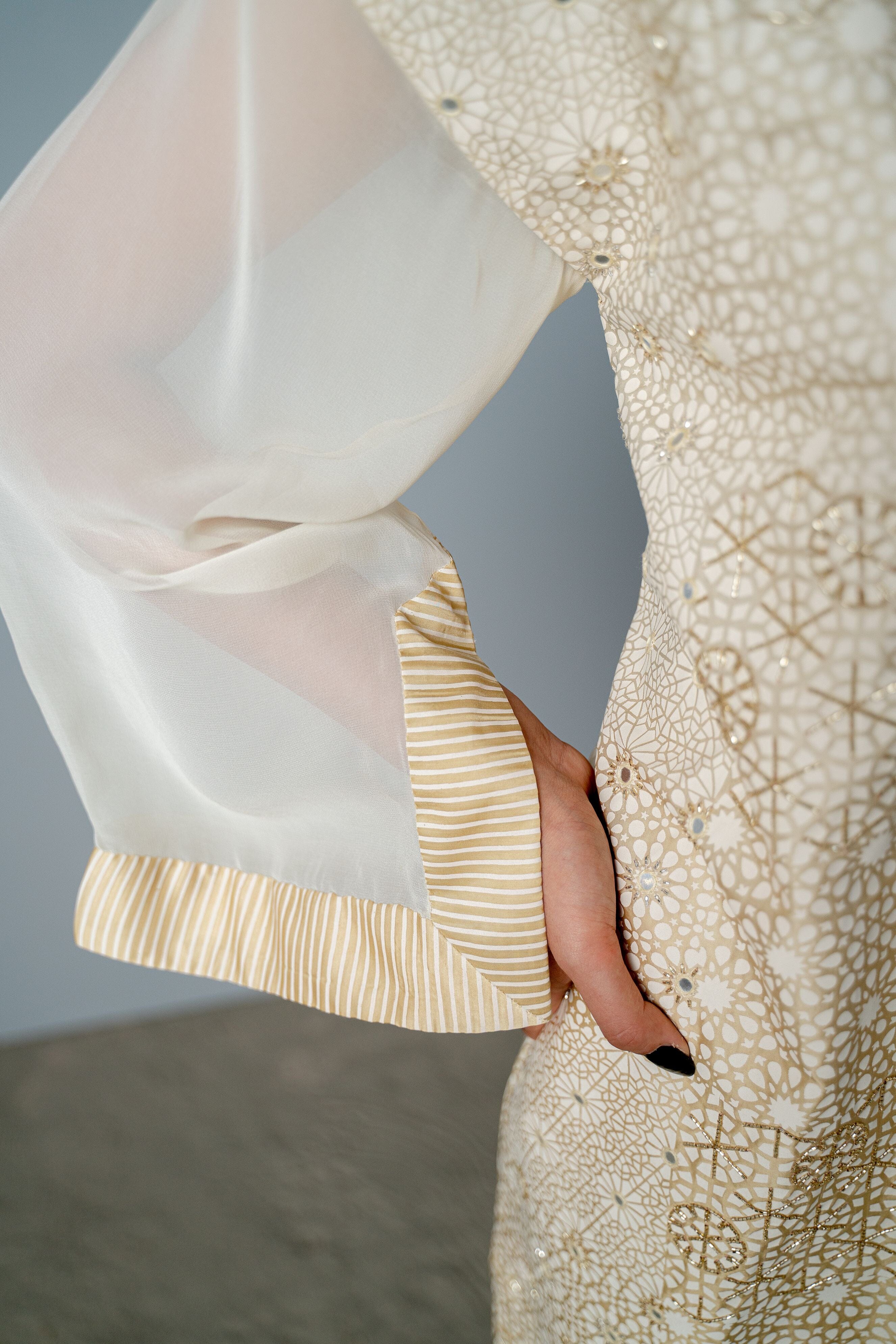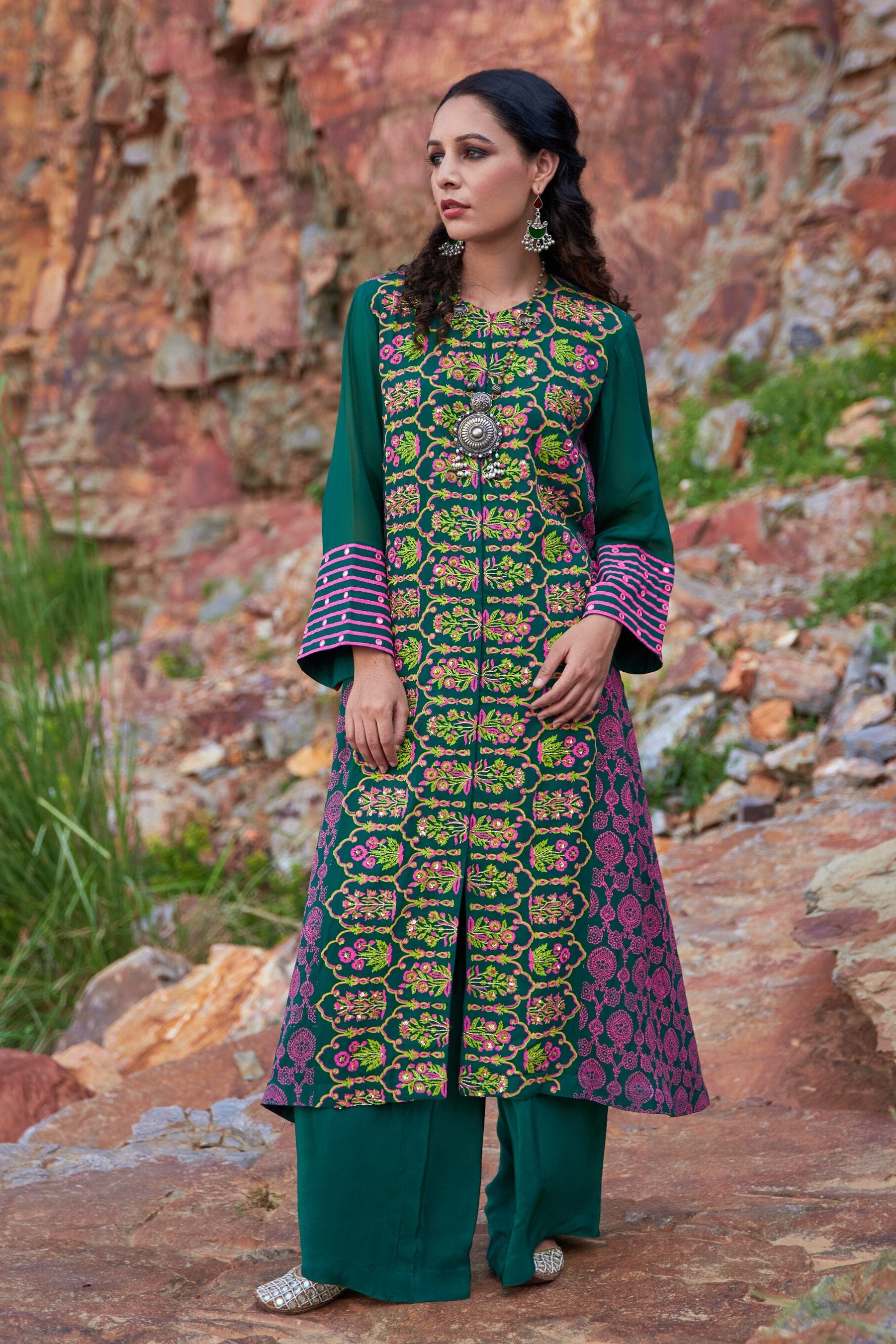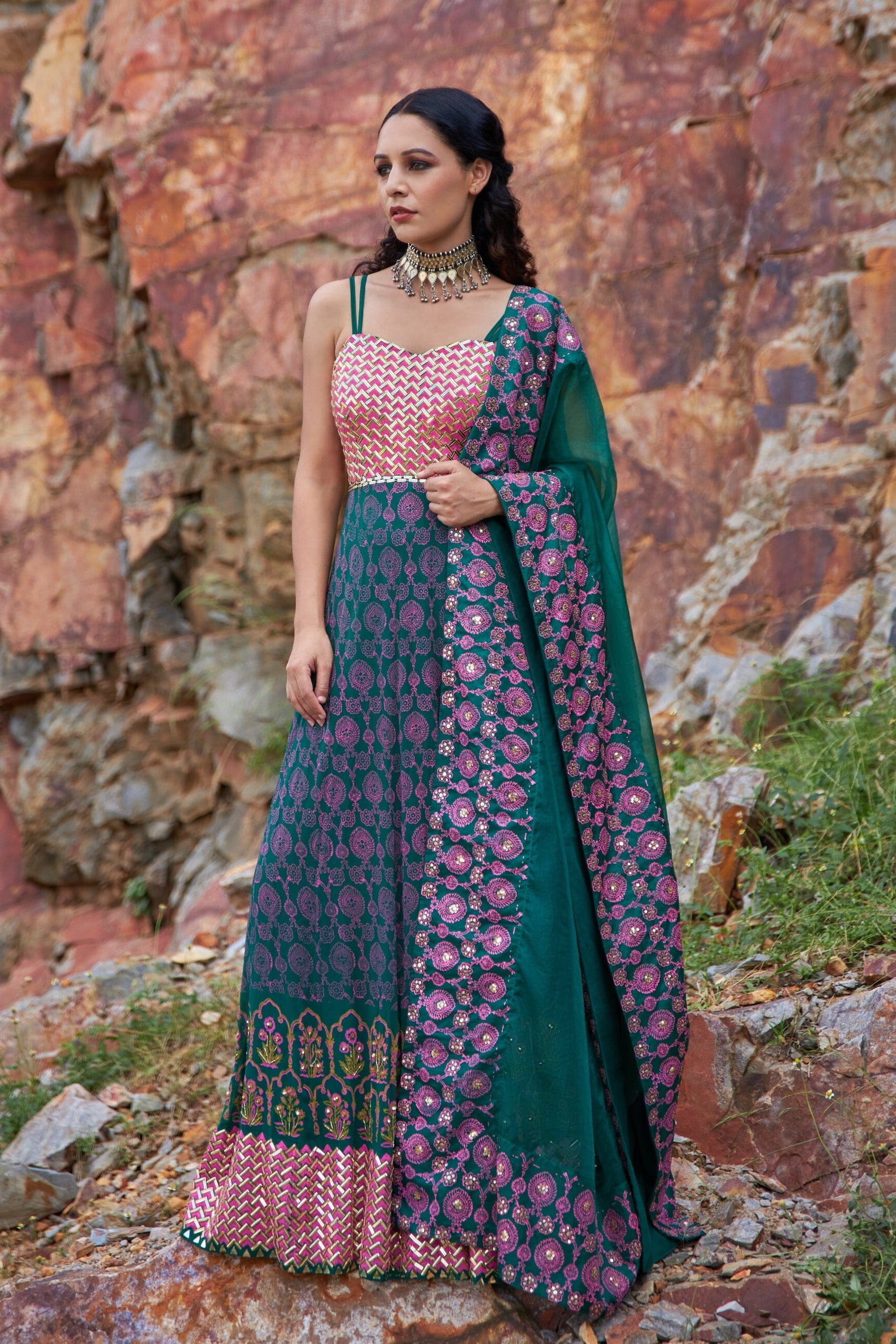 Pooja Rajgarhia Gupta’s style shouts vivid and bright with amalgamation of traditional aesthetics and modern design. The label’s signature geometric surface textures bring a new feel to Indian fluid silhouettes. Their collections are a refreshing shift from very heavy Indian clothing to easy playful silhouettes, statement colors, foiling, printing, intricate handwork and impactful geometric sequence work. Delivery period for this label is usually 20-25 days.