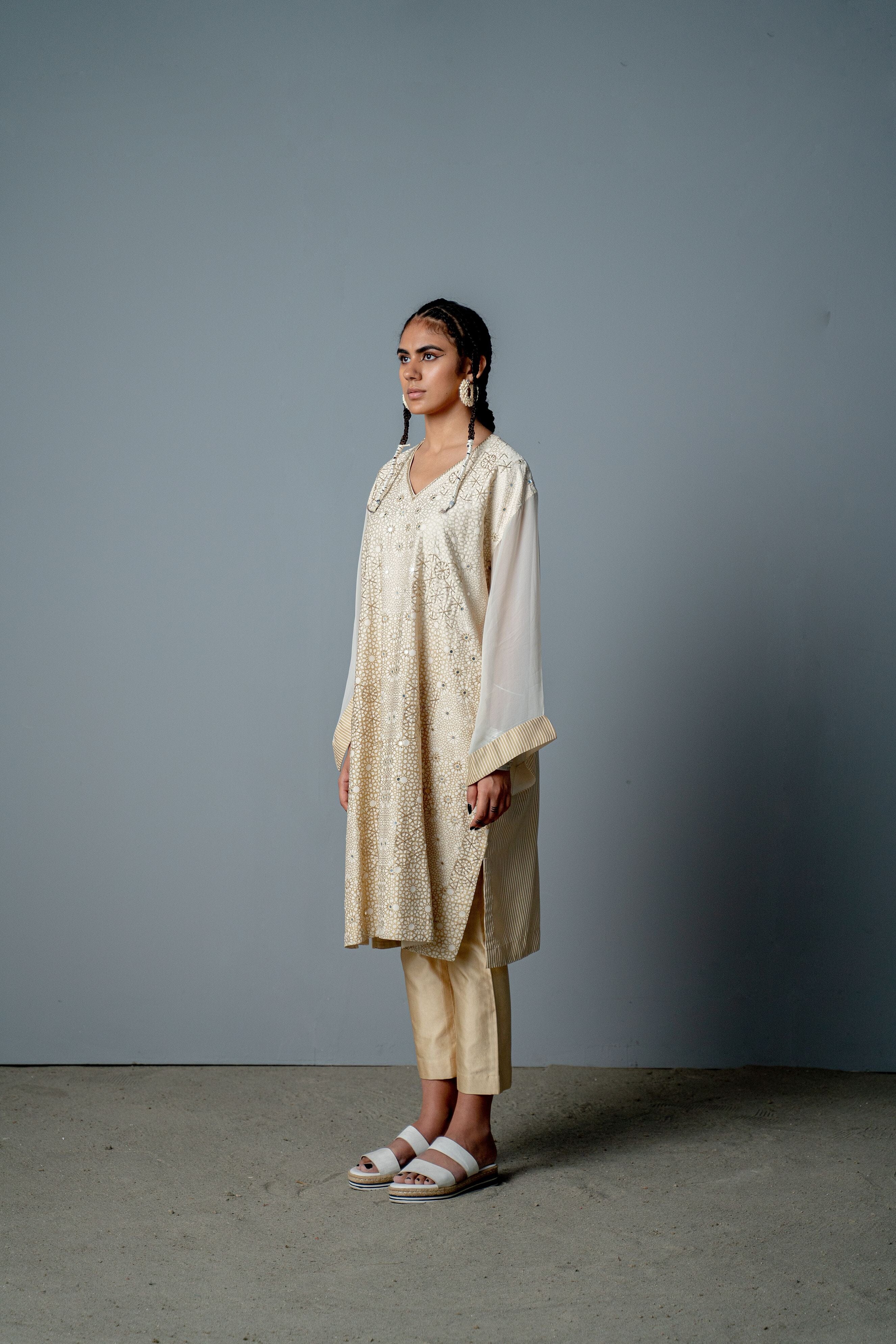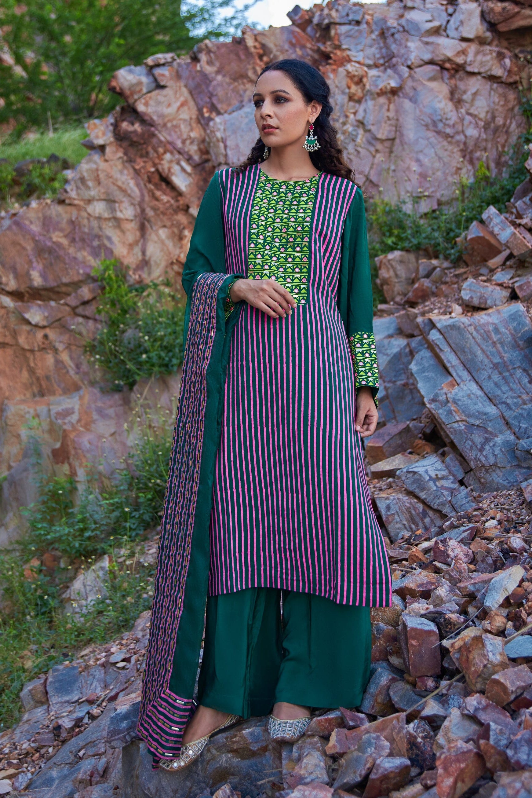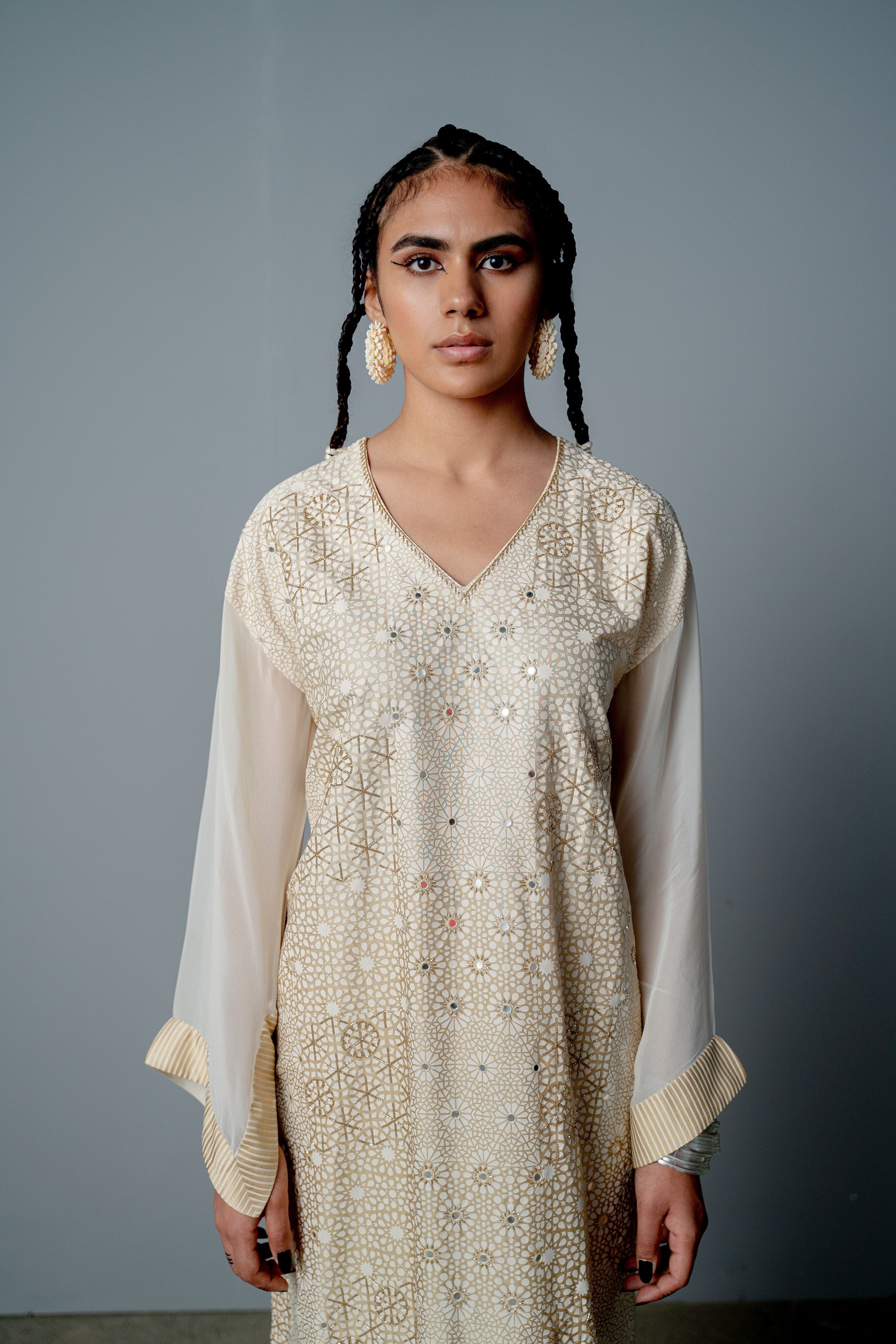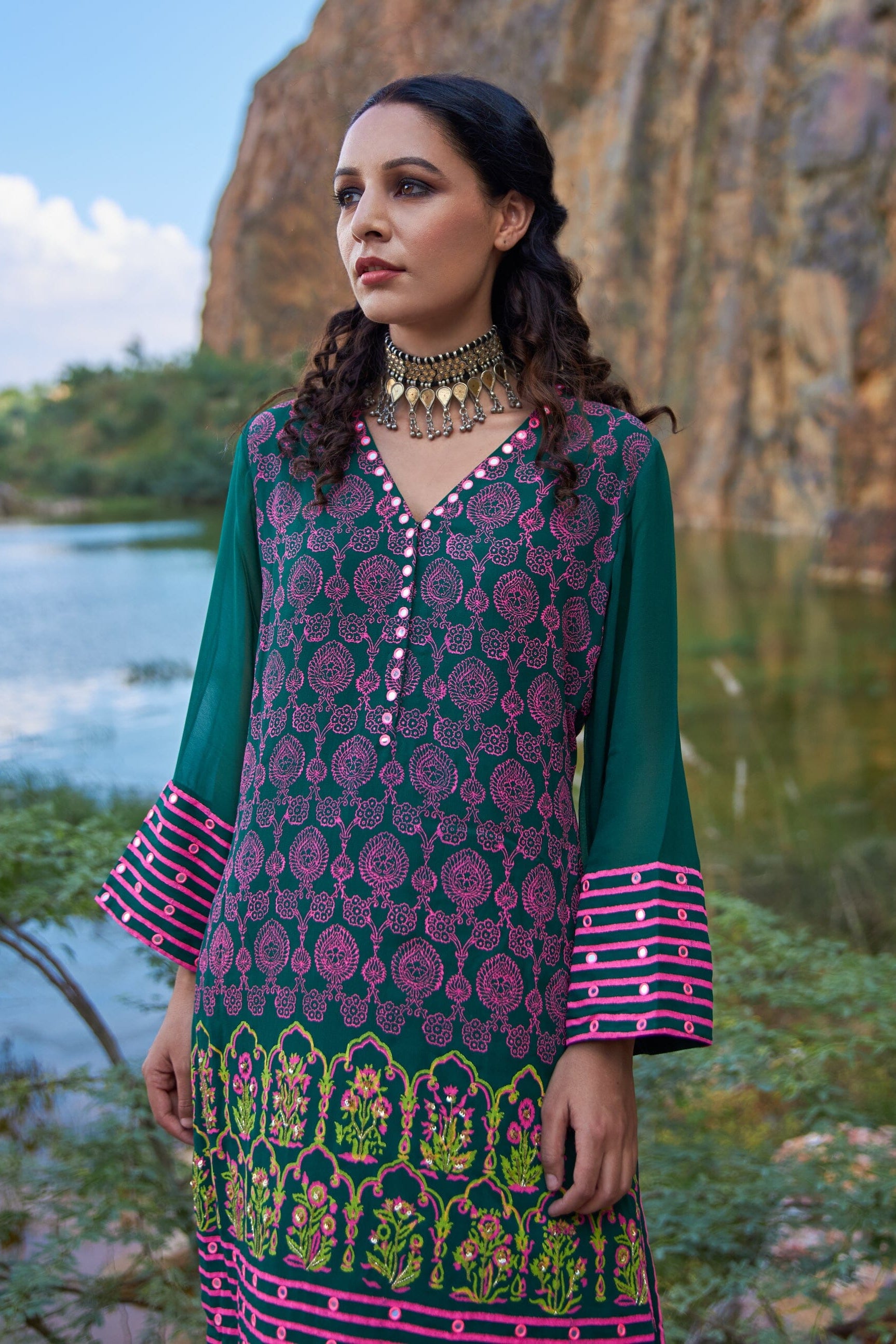 Pooja Rajgarhia Gupta’s style shouts vivid and bright with amalgamation of traditional aesthetics and modern design. The label’s signature geometric surface textures bring a new feel to Indian fluid silhouettes. Their collections are a refreshing shift from very heavy Indian clothing to easy playful silhouettes, statement colors, foiling, printing, intricate handwork and impactful geometric sequence work. Delivery period for this label is usually 20-25 days.