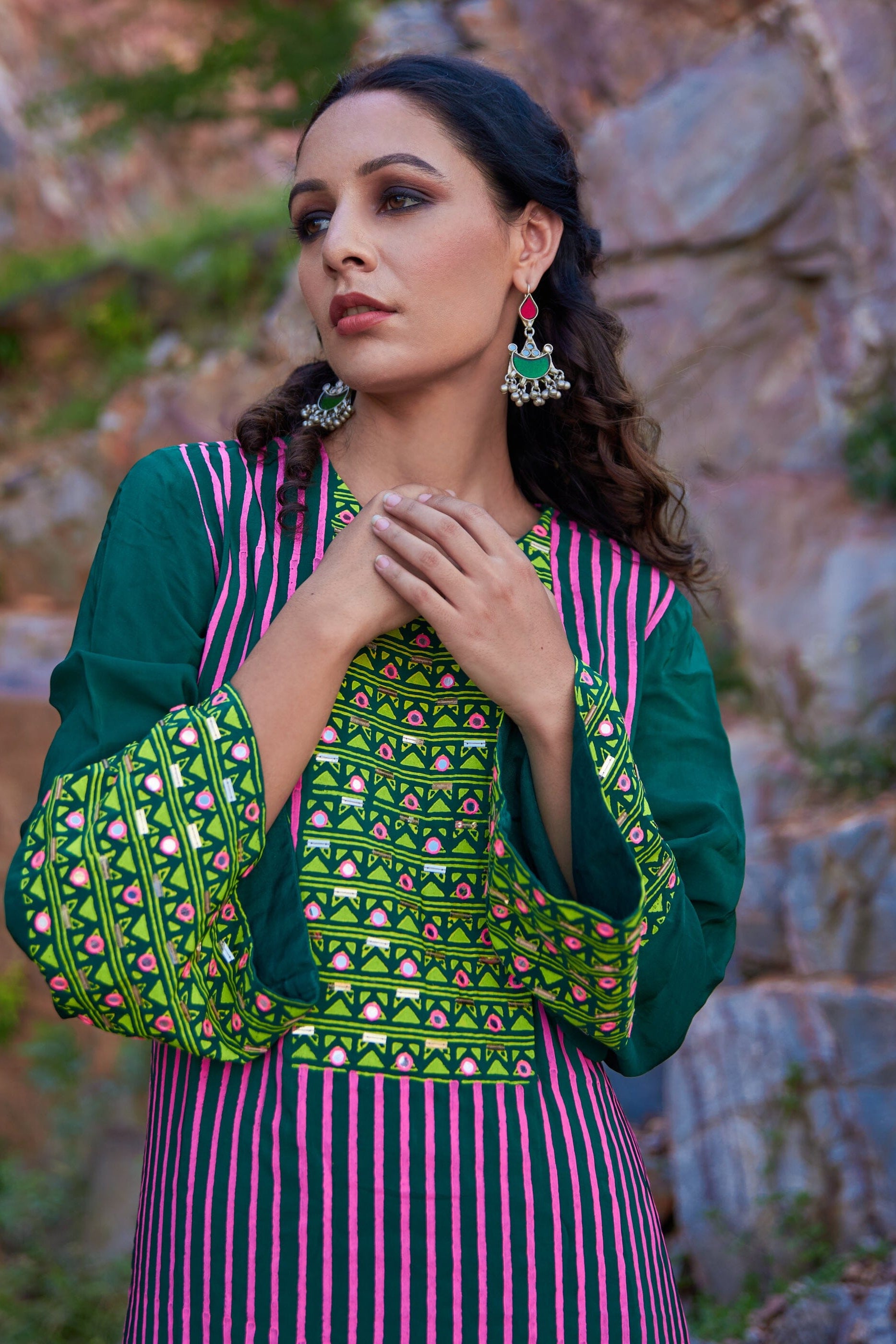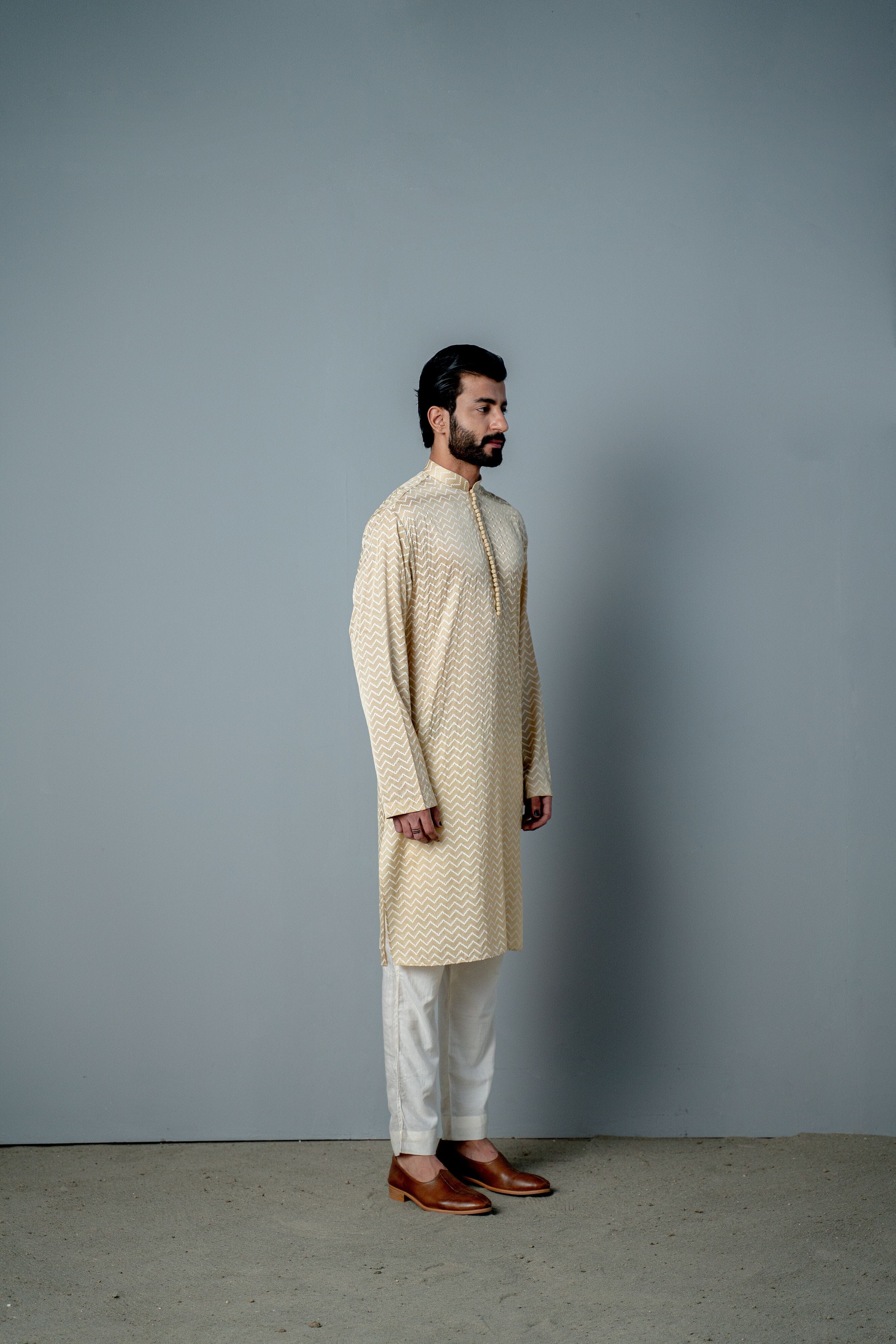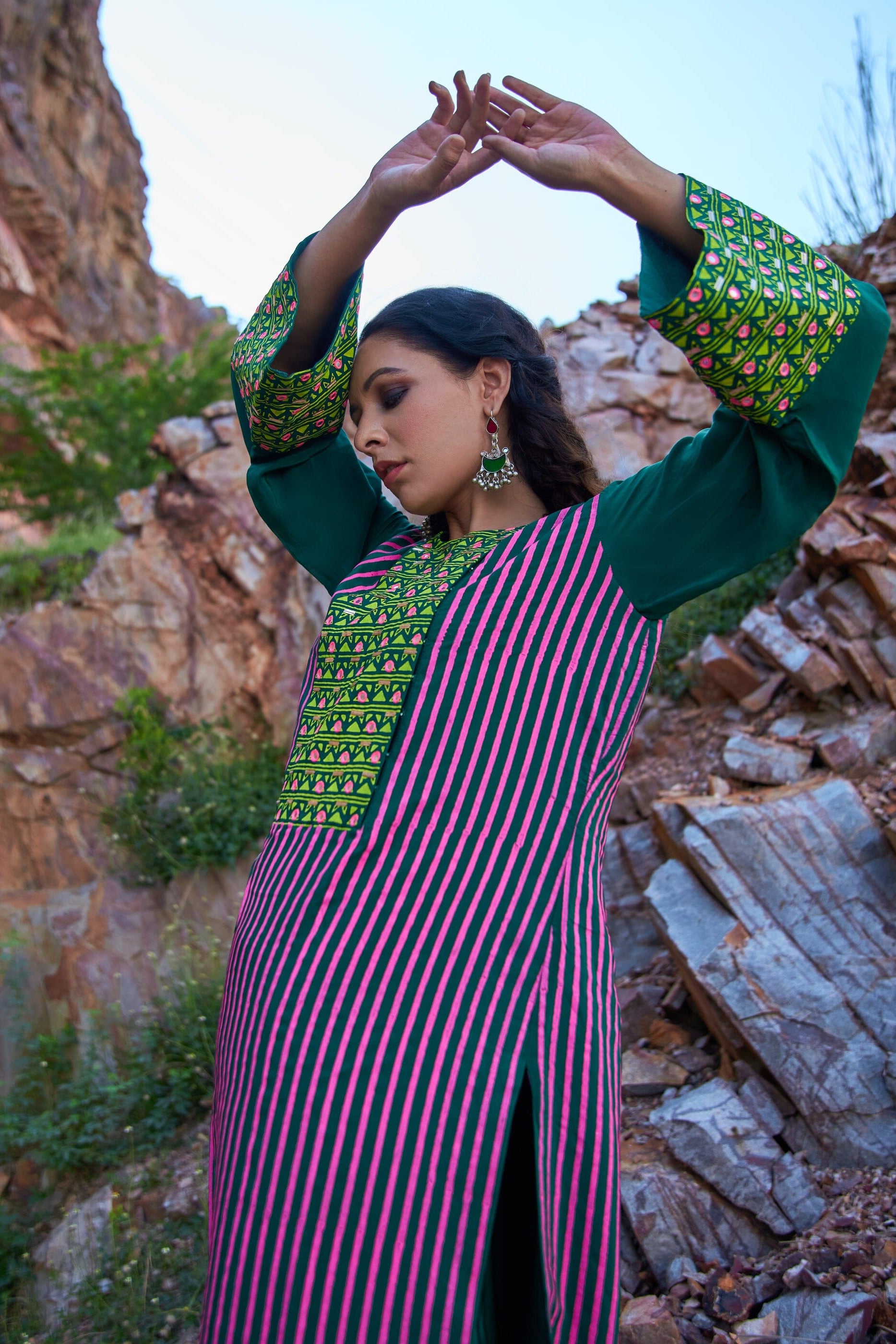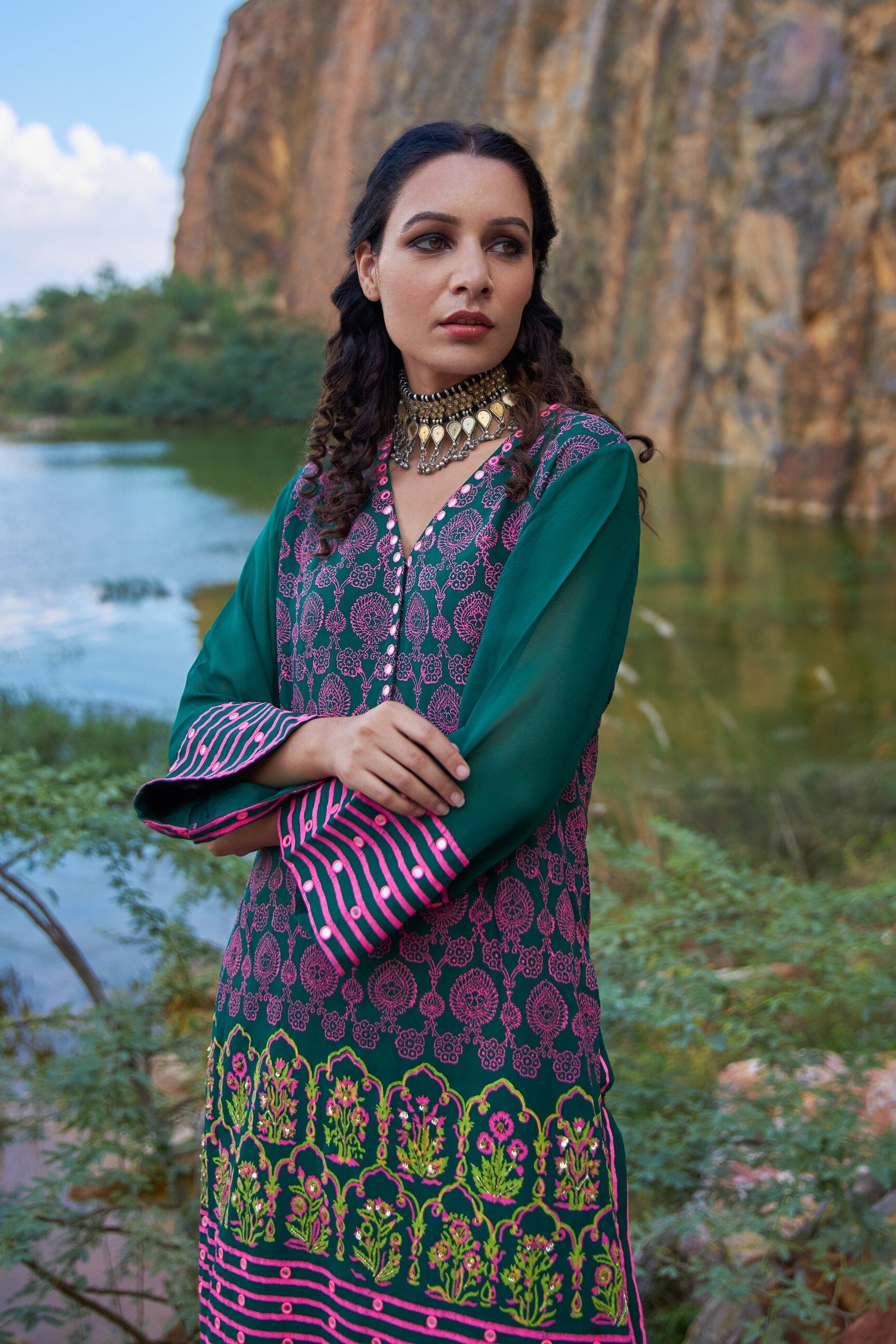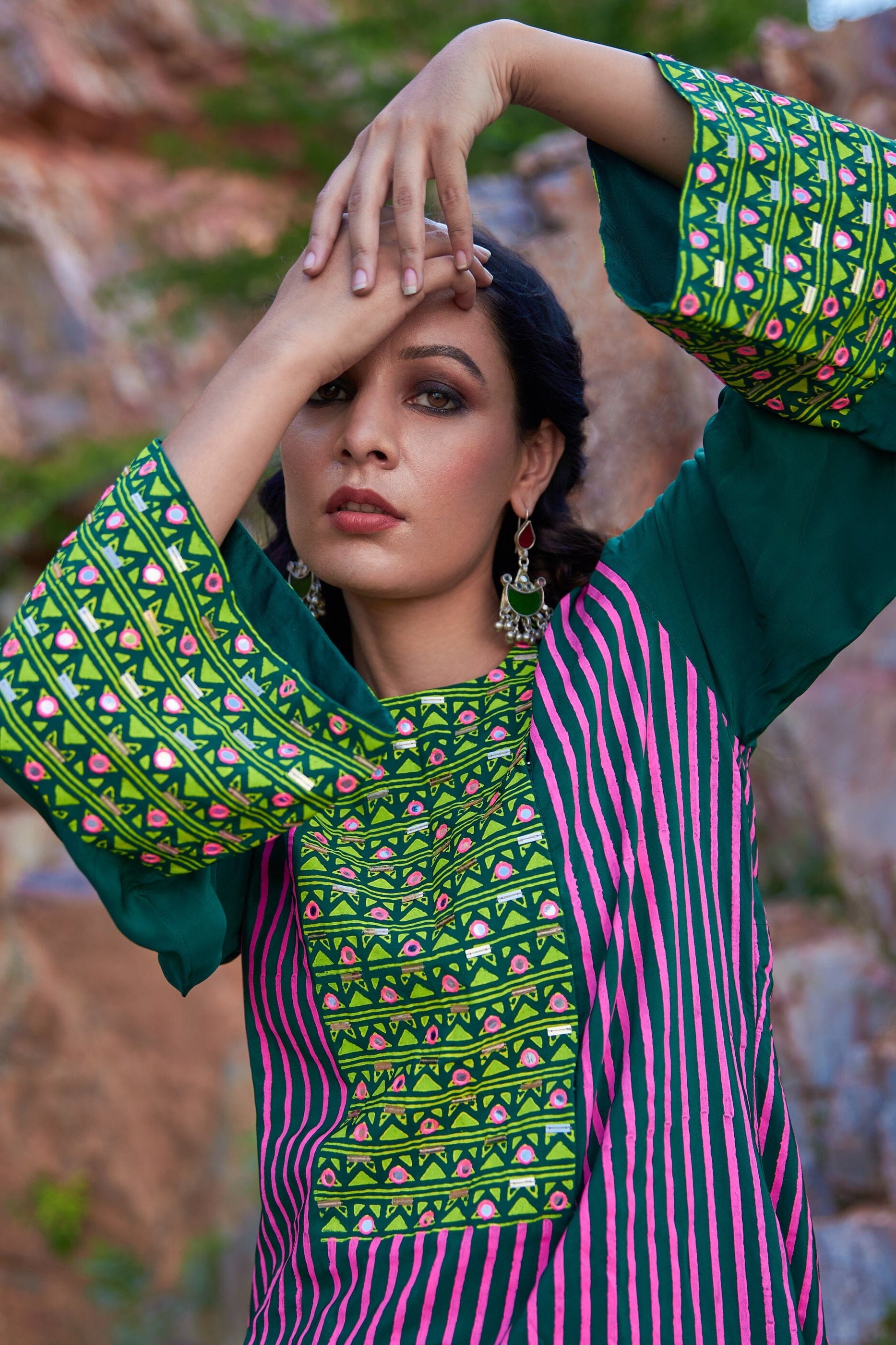 Pooja Rajgarhia Gupta’s style shouts vivid and bright with amalgamation of traditional aesthetics and modern design. The label’s signature geometric surface textures bring a new feel to Indian fluid silhouettes. Their collections are a refreshing shift from very heavy Indian clothing to easy playful silhouettes, statement colors, foiling, printing, intricate handwork and impactful geometric sequence work. Delivery period for this label is usually 20-25 days.