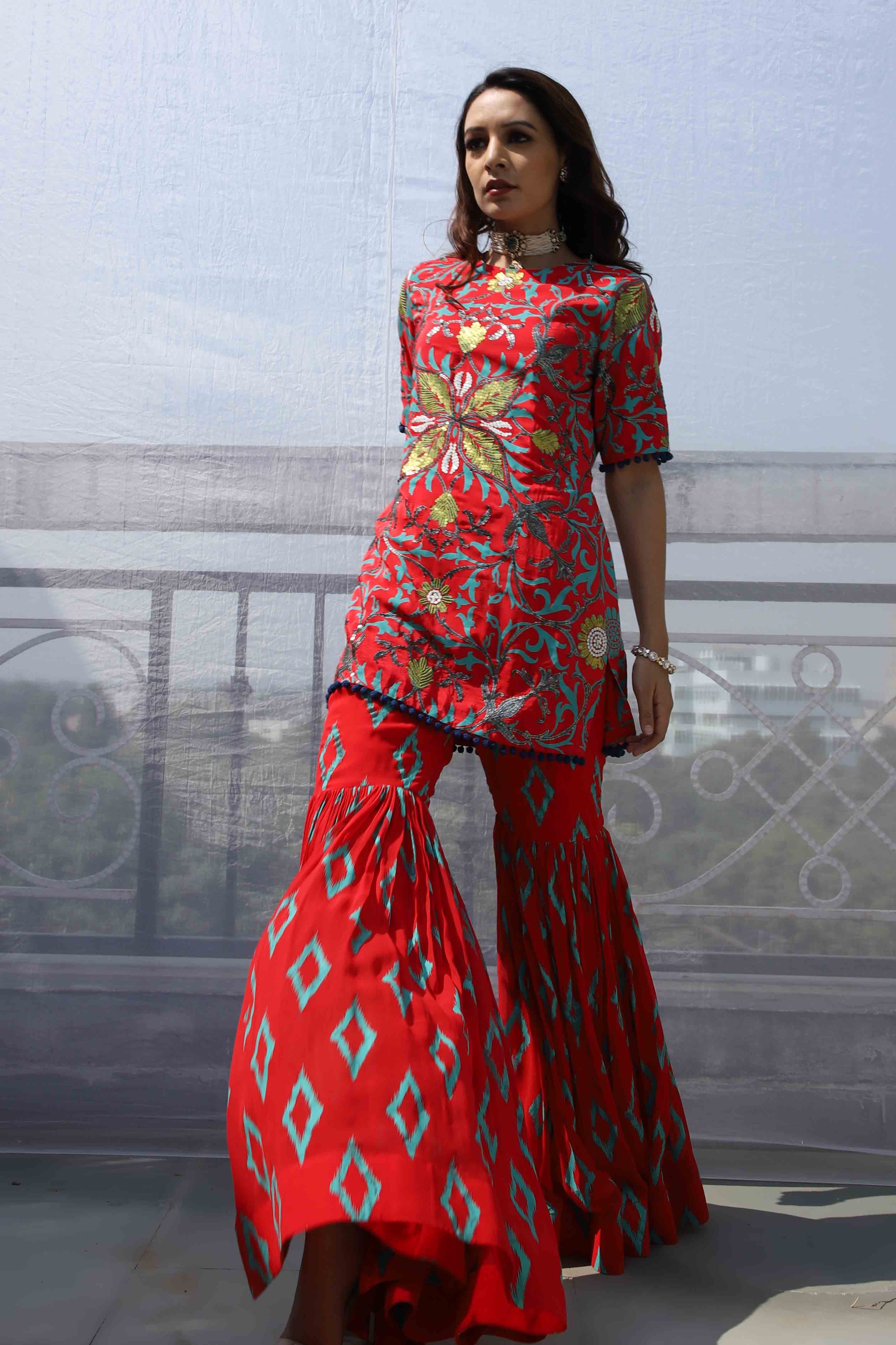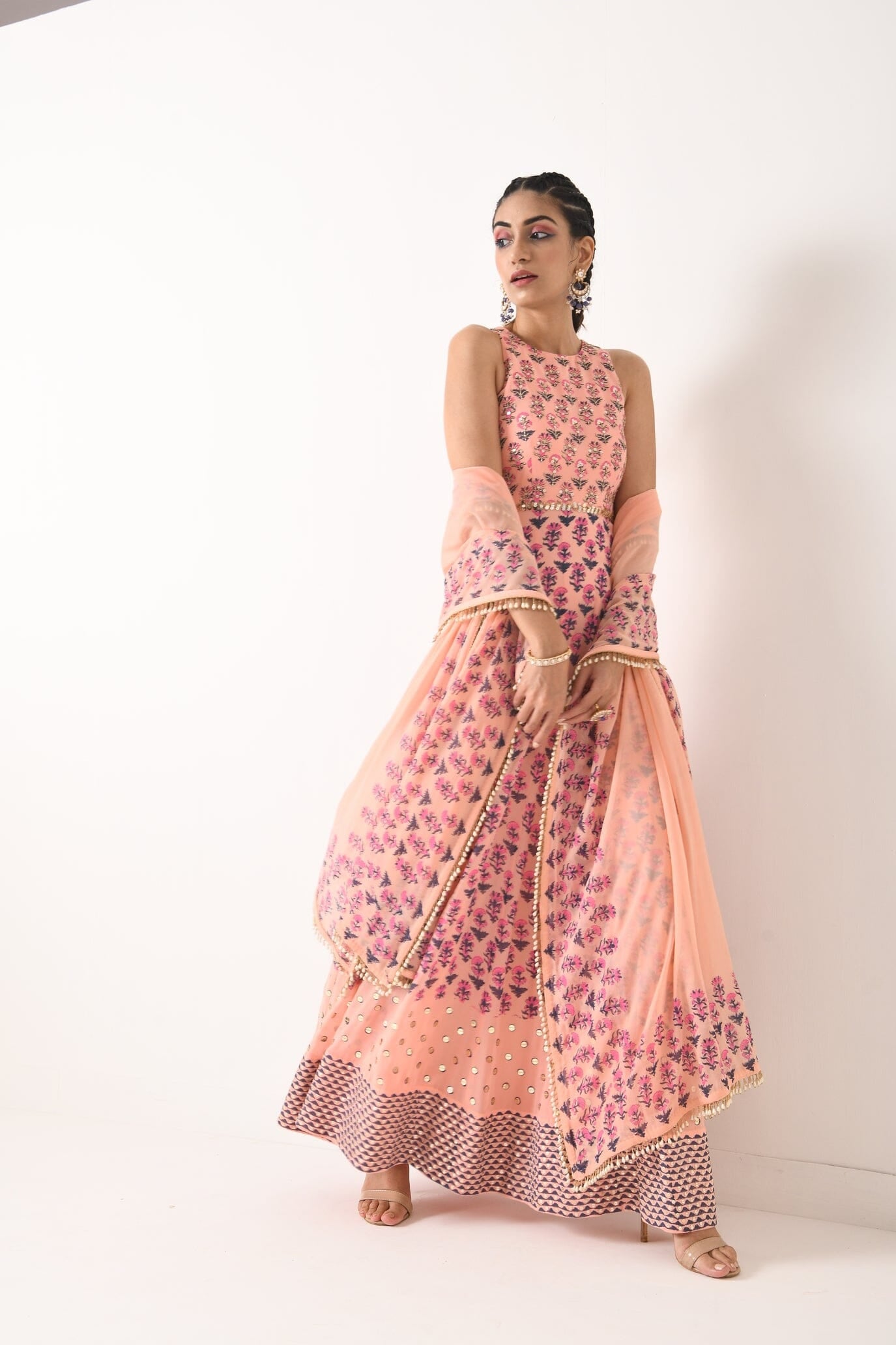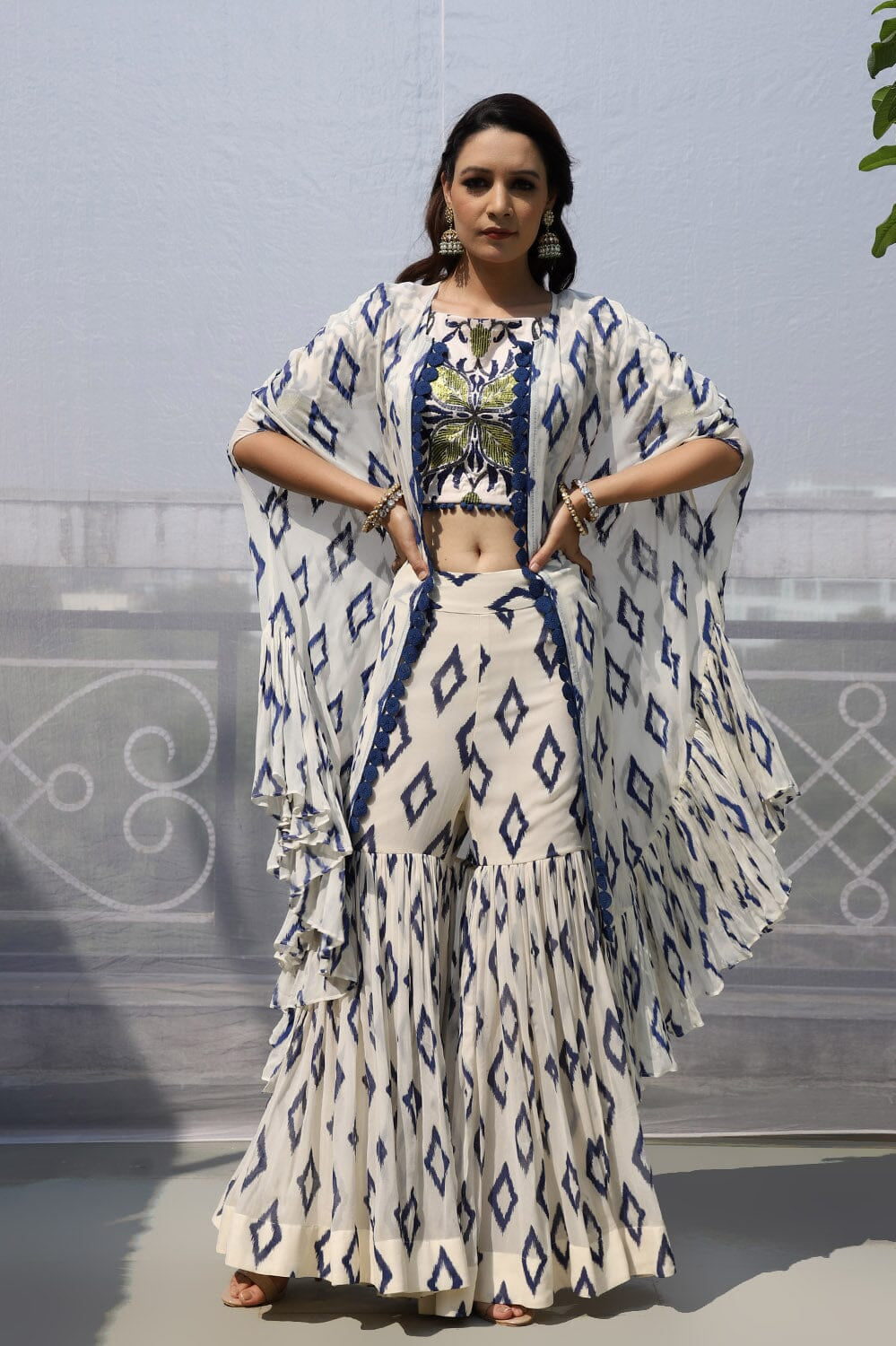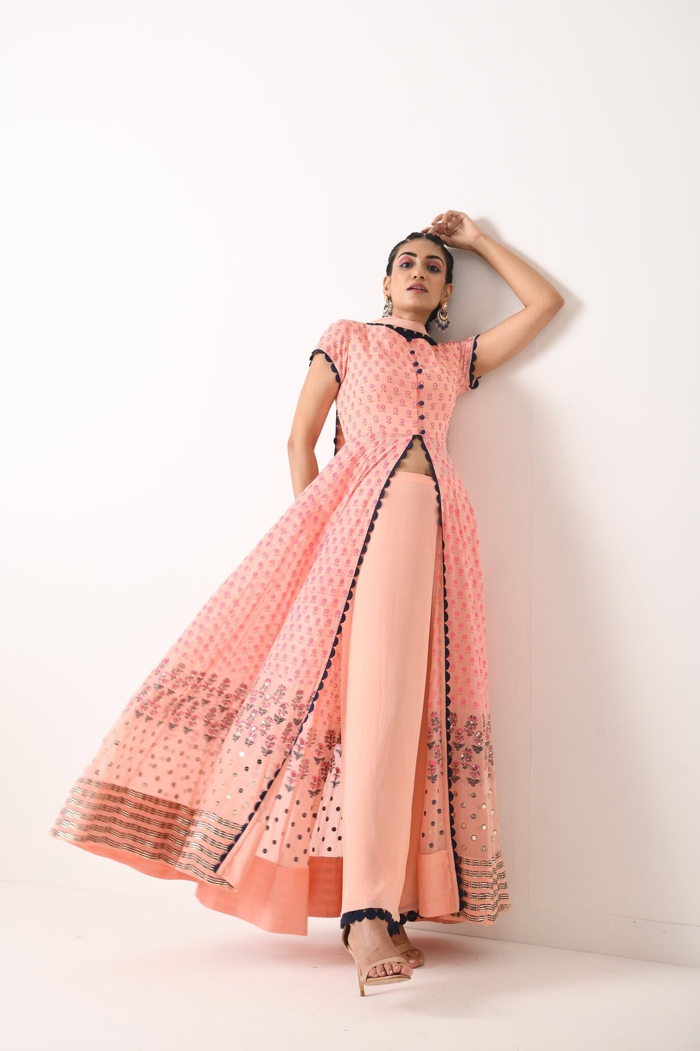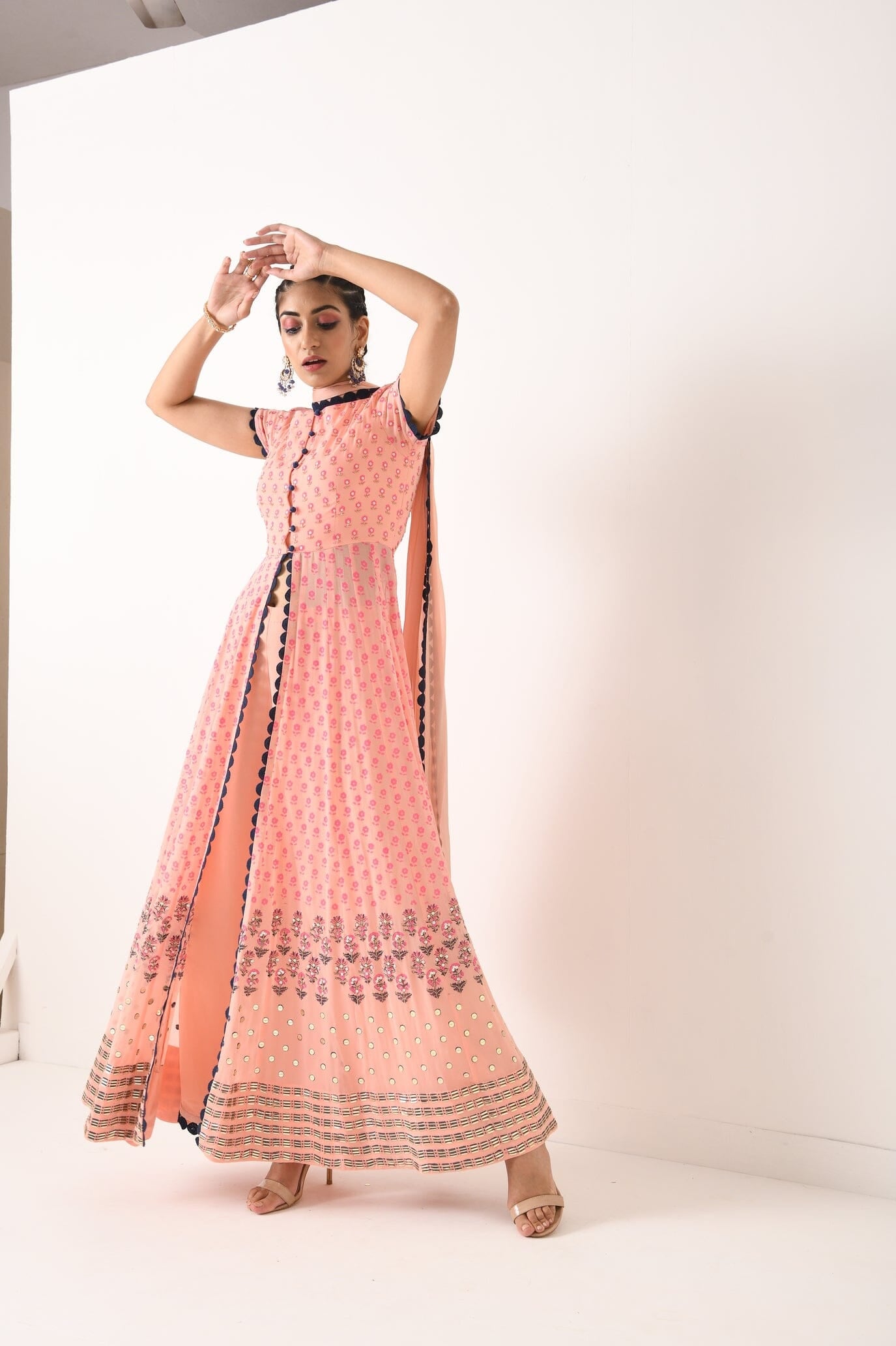 Pooja Rajgarhia Gupta’s style shouts vivid and bright with amalgamation of traditional aesthetics and modern design. The label’s signature geometric surface textures bring a new feel to Indian fluid silhouettes. Their collections are a refreshing shift from very heavy Indian clothing to easy playful silhouettes, statement colors, foiling, printing, intricate handwork and impactful geometric sequence work. Delivery period for this label is usually 20-25 days.