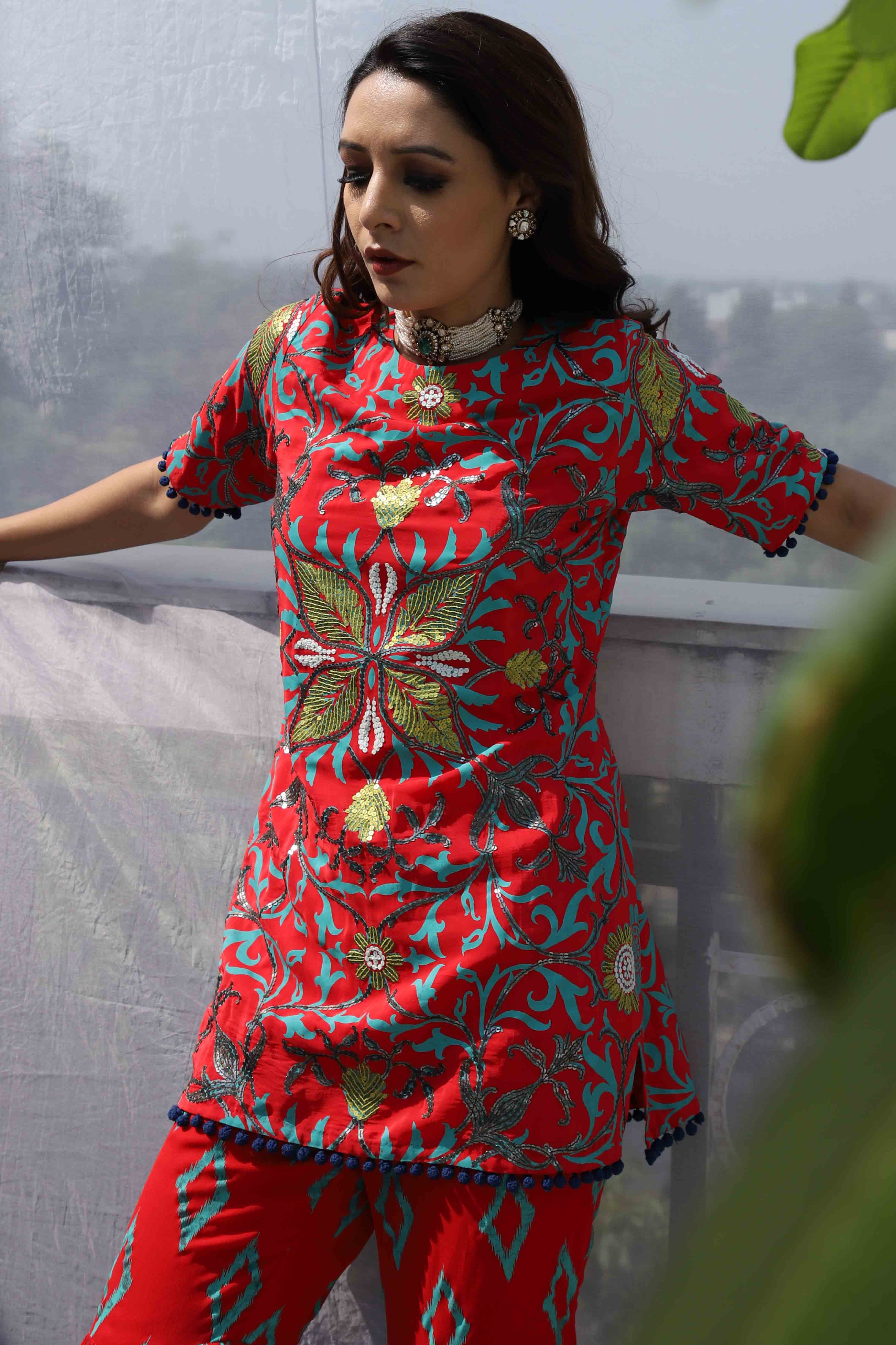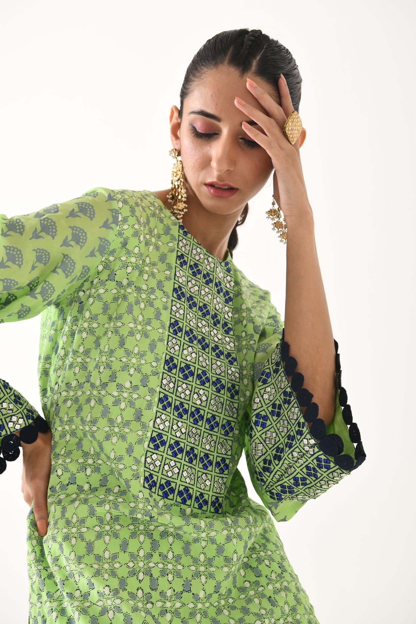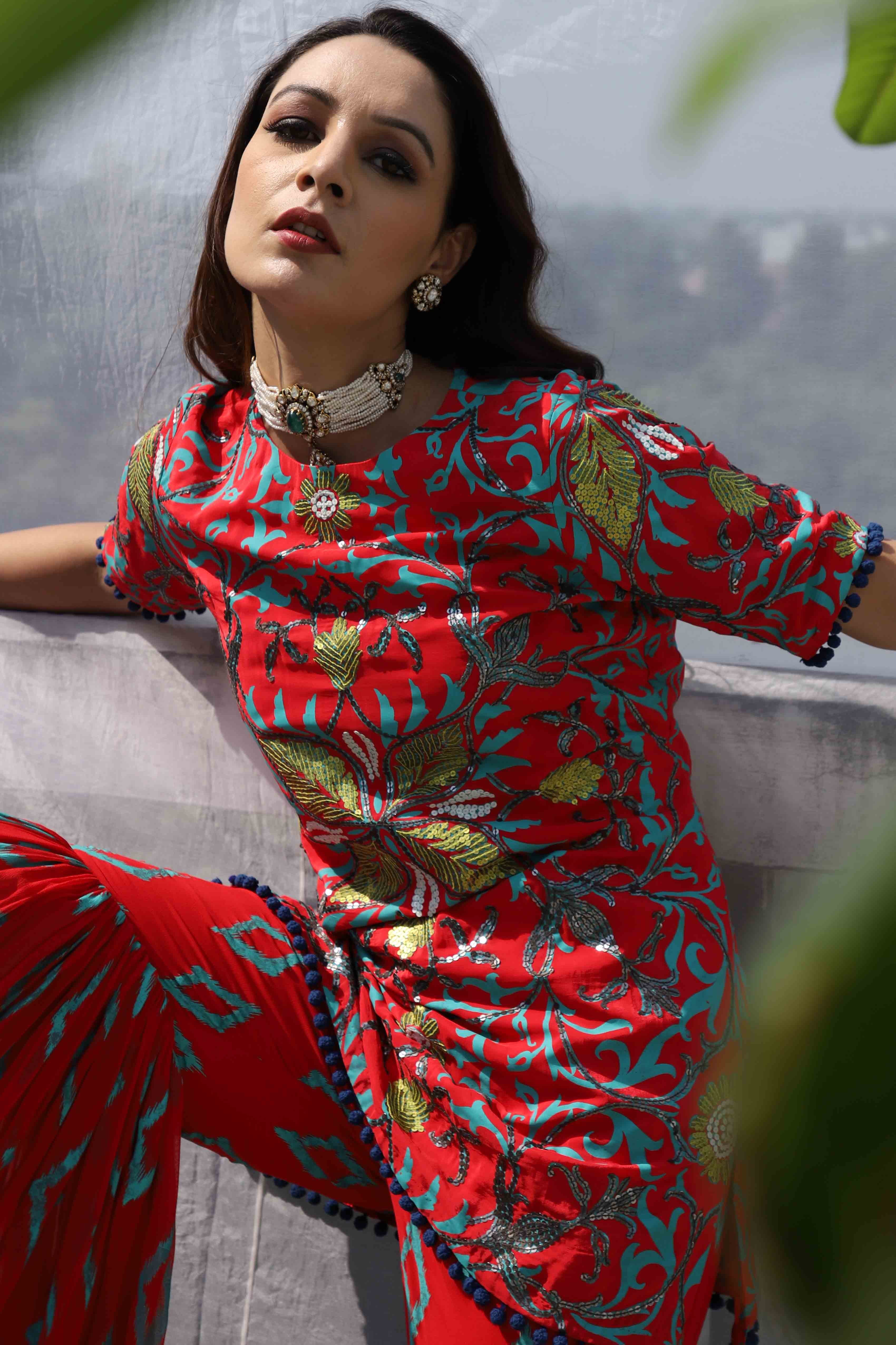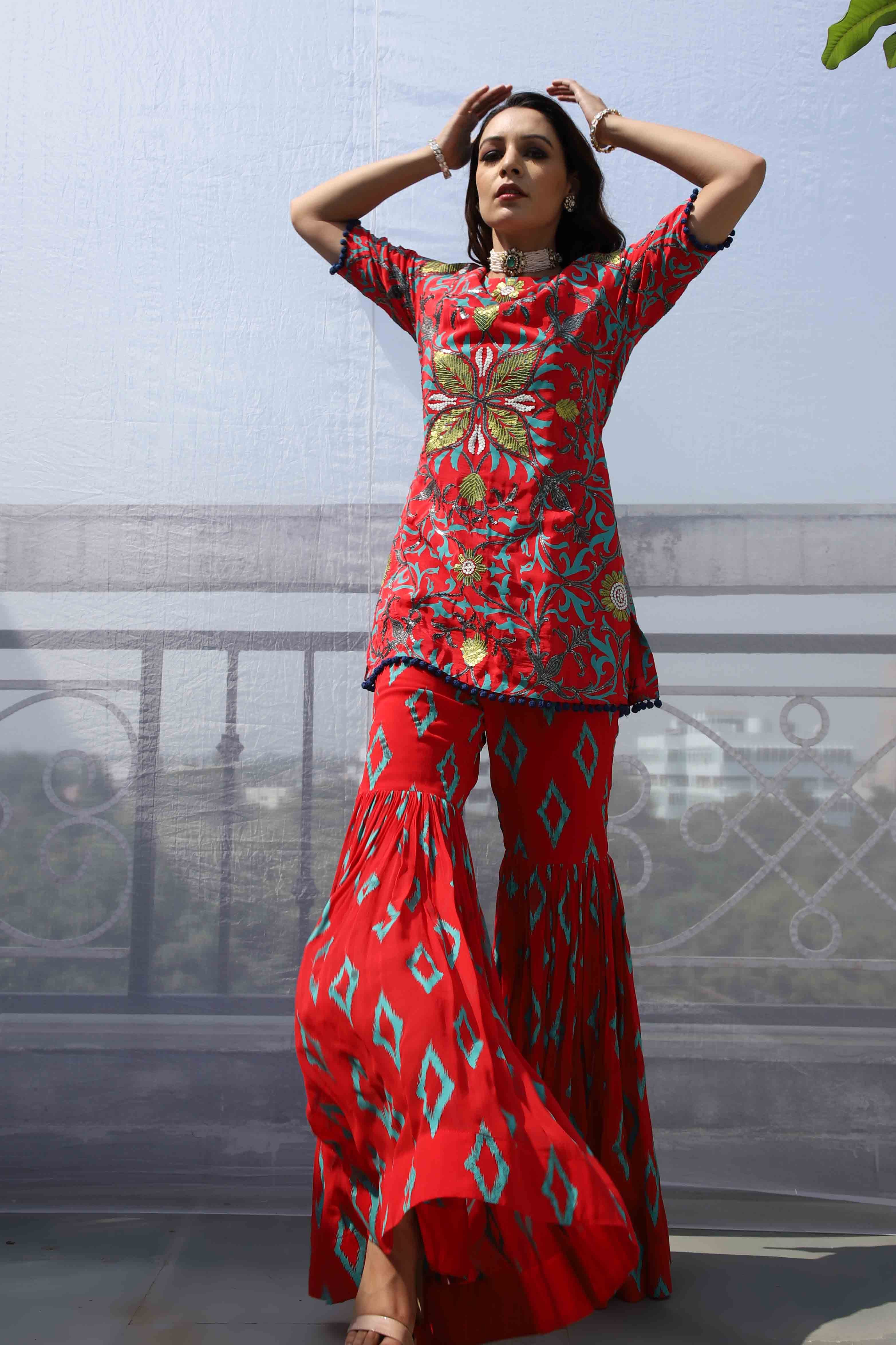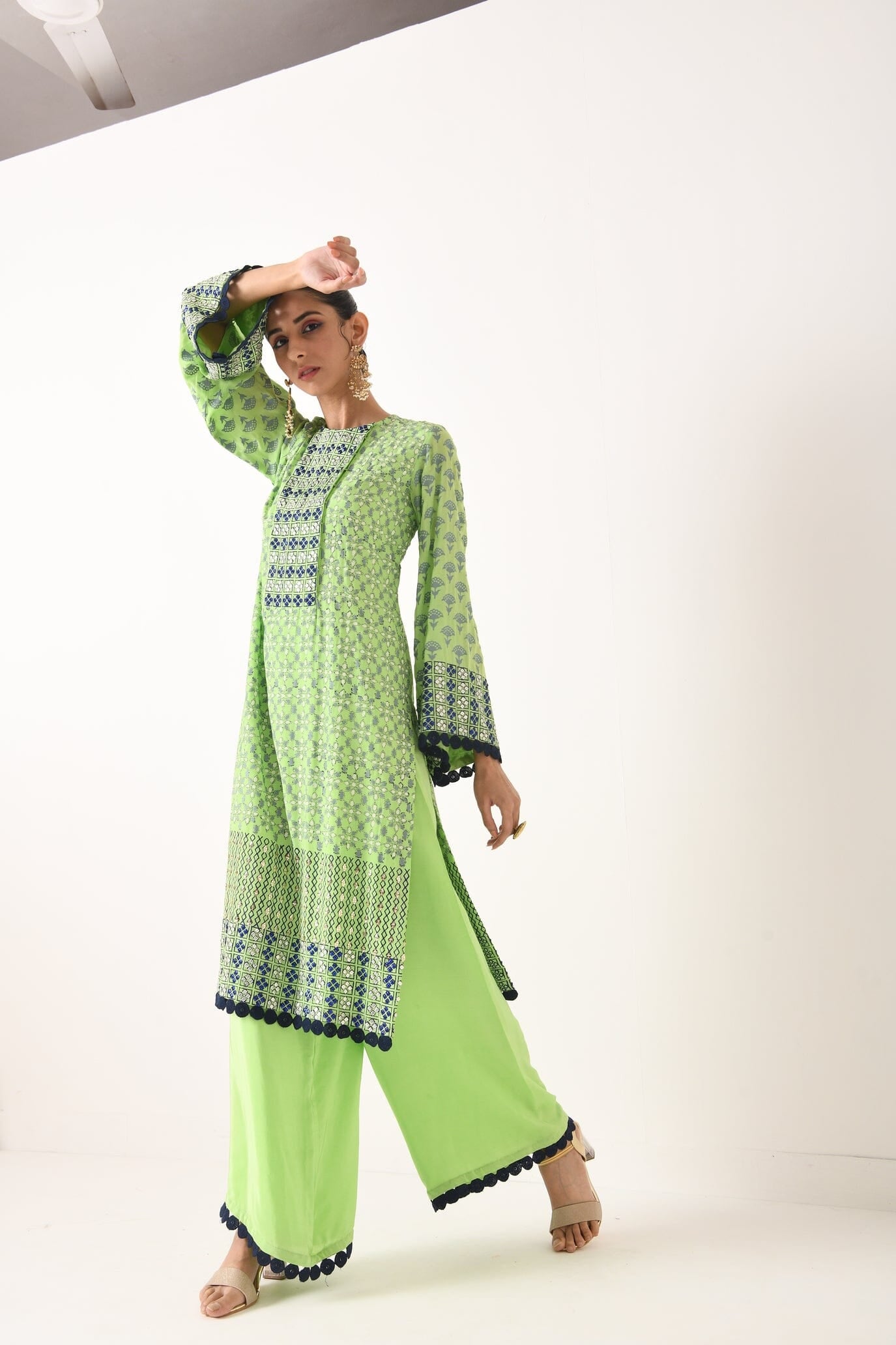 Pooja Rajgarhia Gupta’s style shouts vivid and bright with amalgamation of traditional aesthetics and modern design. The label’s signature geometric surface textures bring a new feel to Indian fluid silhouettes. Their collections are a refreshing shift from very heavy Indian clothing to easy playful silhouettes, statement colors, foiling, printing, intricate handwork and impactful geometric sequence work. Delivery period for this label is usually 20-25 days.