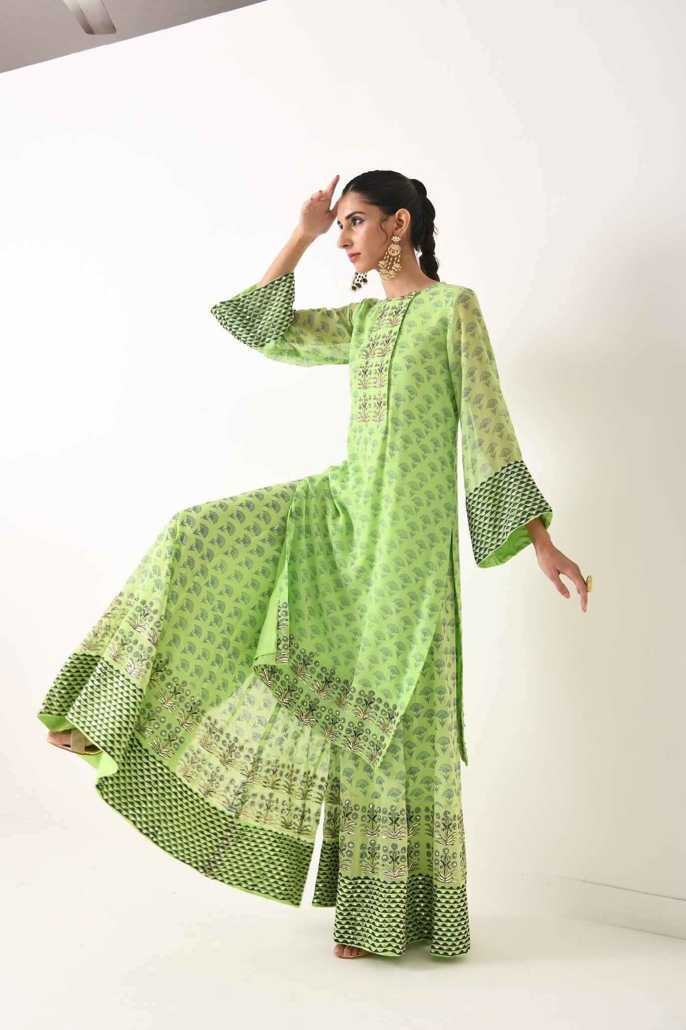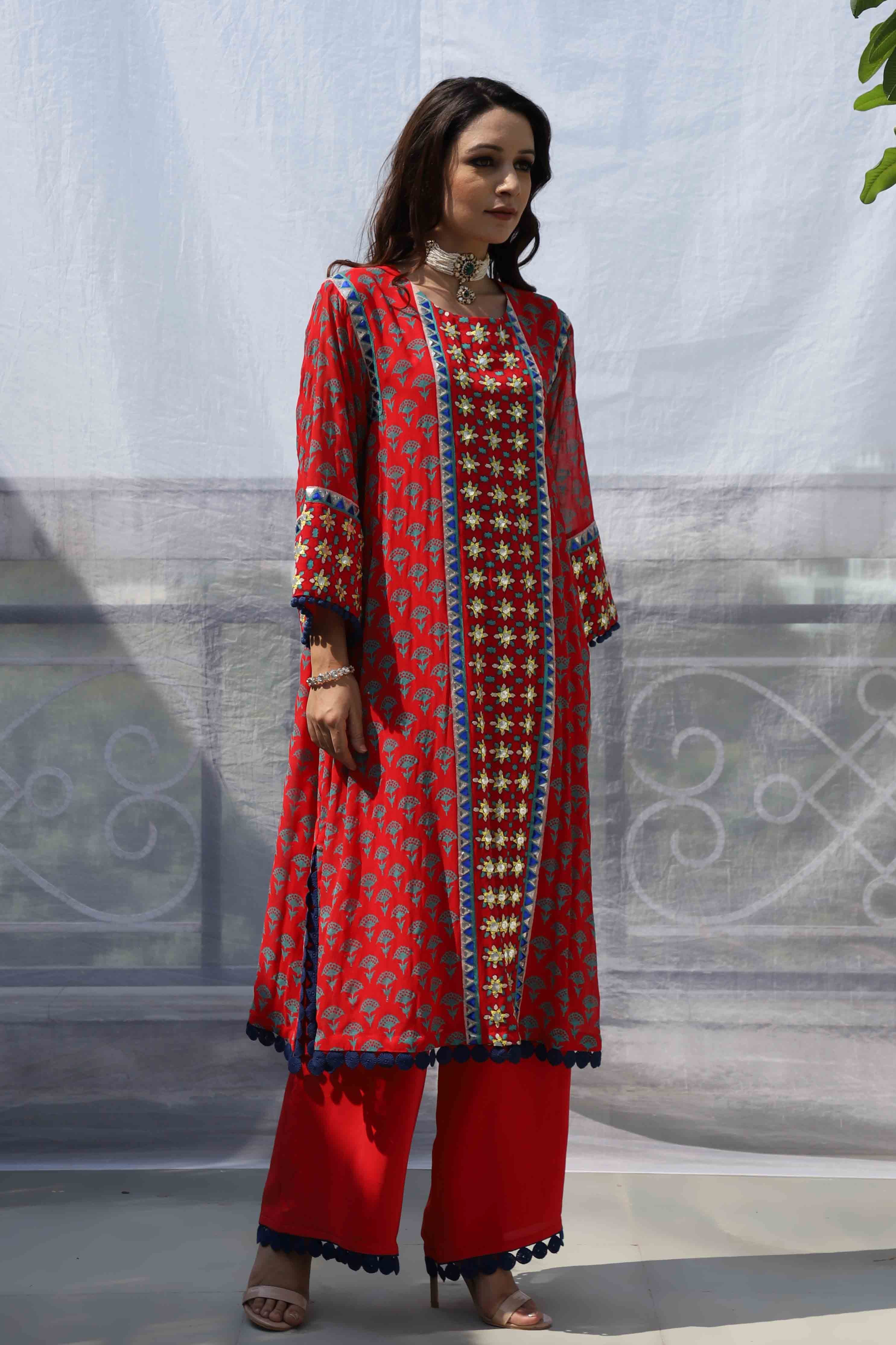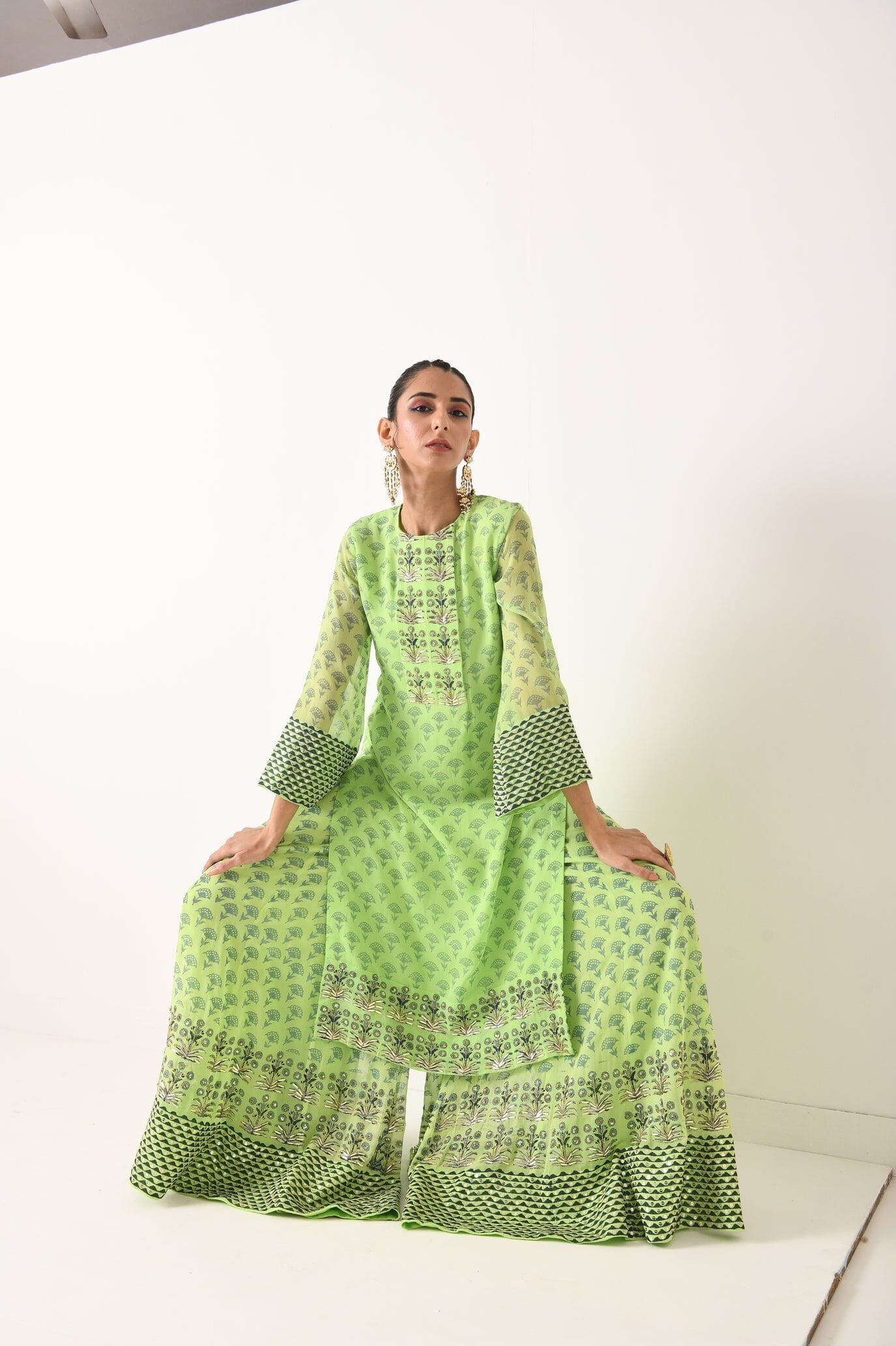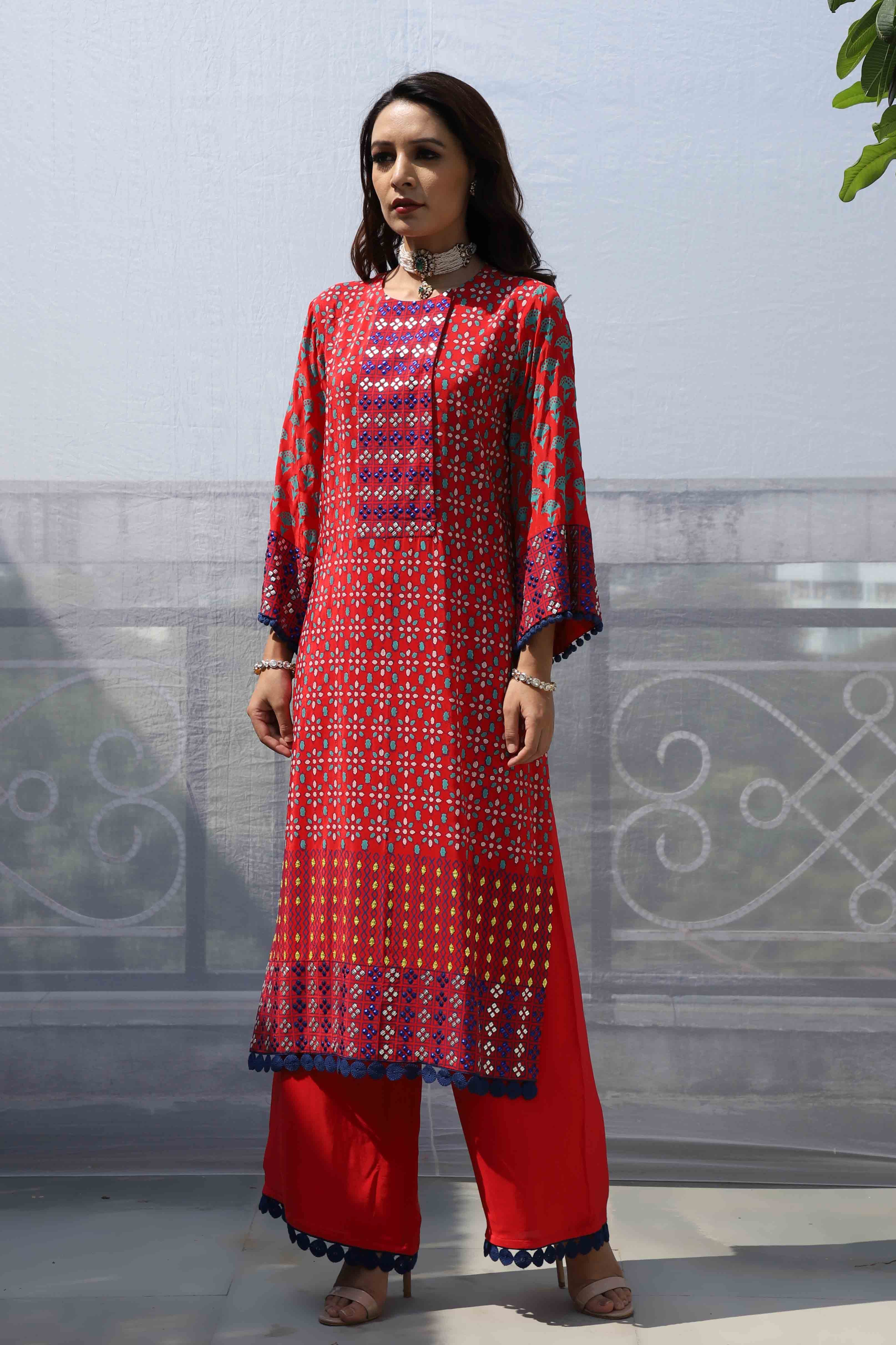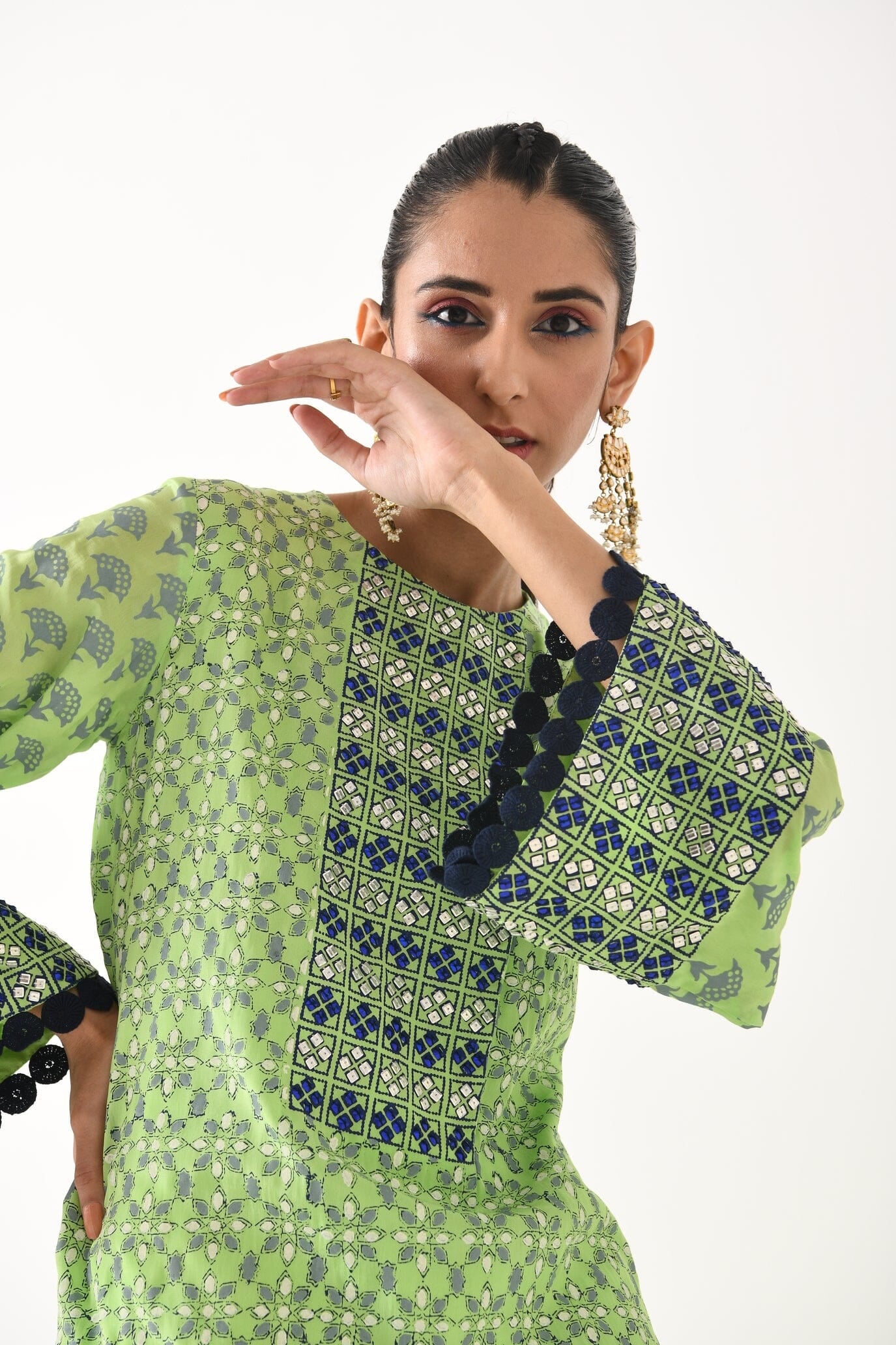 Pooja Rajgarhia Gupta’s style shouts vivid and bright with amalgamation of traditional aesthetics and modern design. The label’s signature geometric surface textures bring a new feel to Indian fluid silhouettes. Their collections are a refreshing shift from very heavy Indian clothing to easy playful silhouettes, statement colors, foiling, printing, intricate handwork and impactful geometric sequence work. Delivery period for this label is usually 20-25 days.