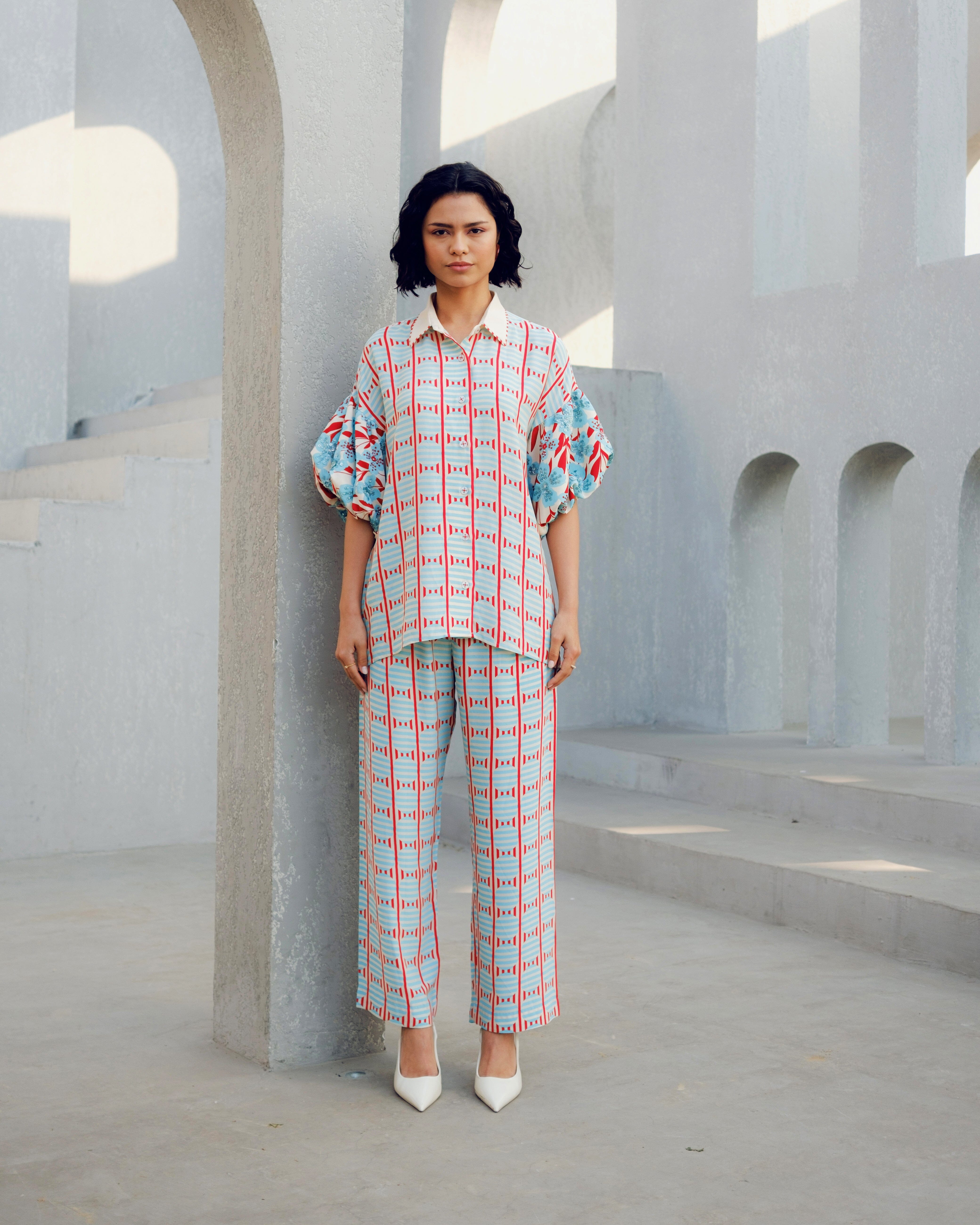 Pooja Rajgarhia Gupta’s style shouts vivid and bright with amalgamation of traditional aesthetics and modern design. The label’s signature geometric surface textures bring a new feel to Indian fluid silhouettes. Their collections are a refreshing shift from very heavy Indian clothing to easy playful silhouettes, statement colors, foiling, printing, intricate handwork and impactful geometric sequence work. Delivery period for this label is usually 20-25 days.