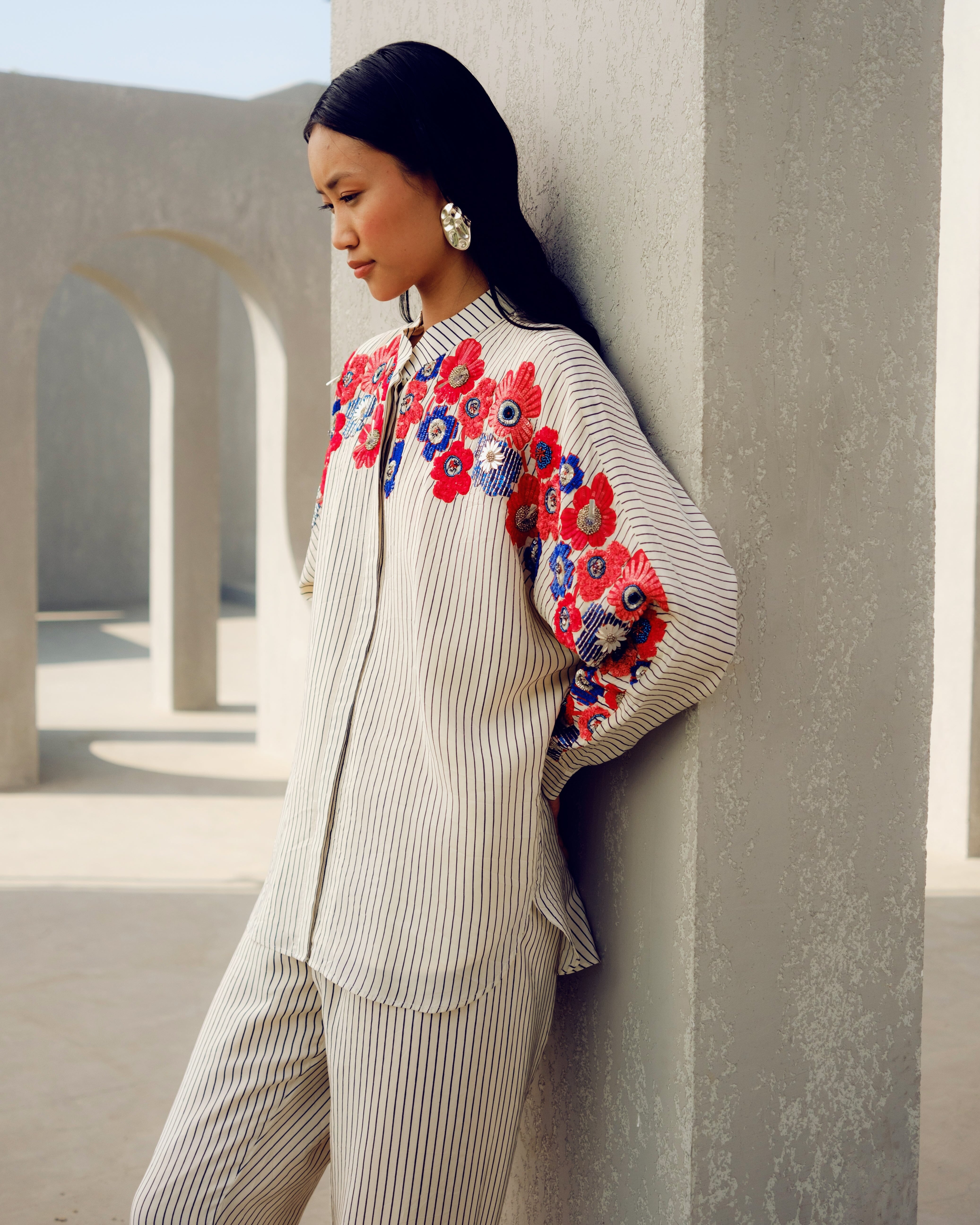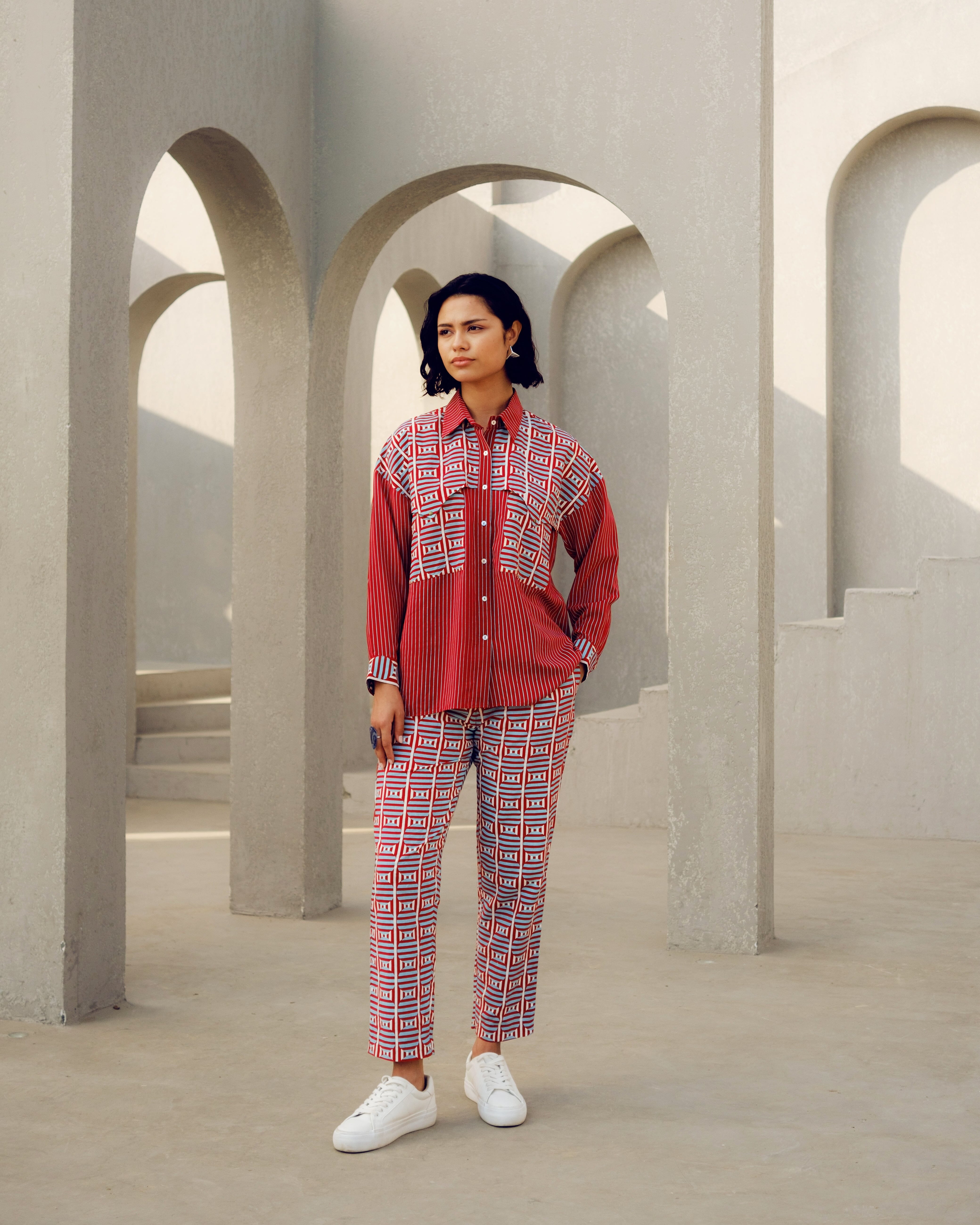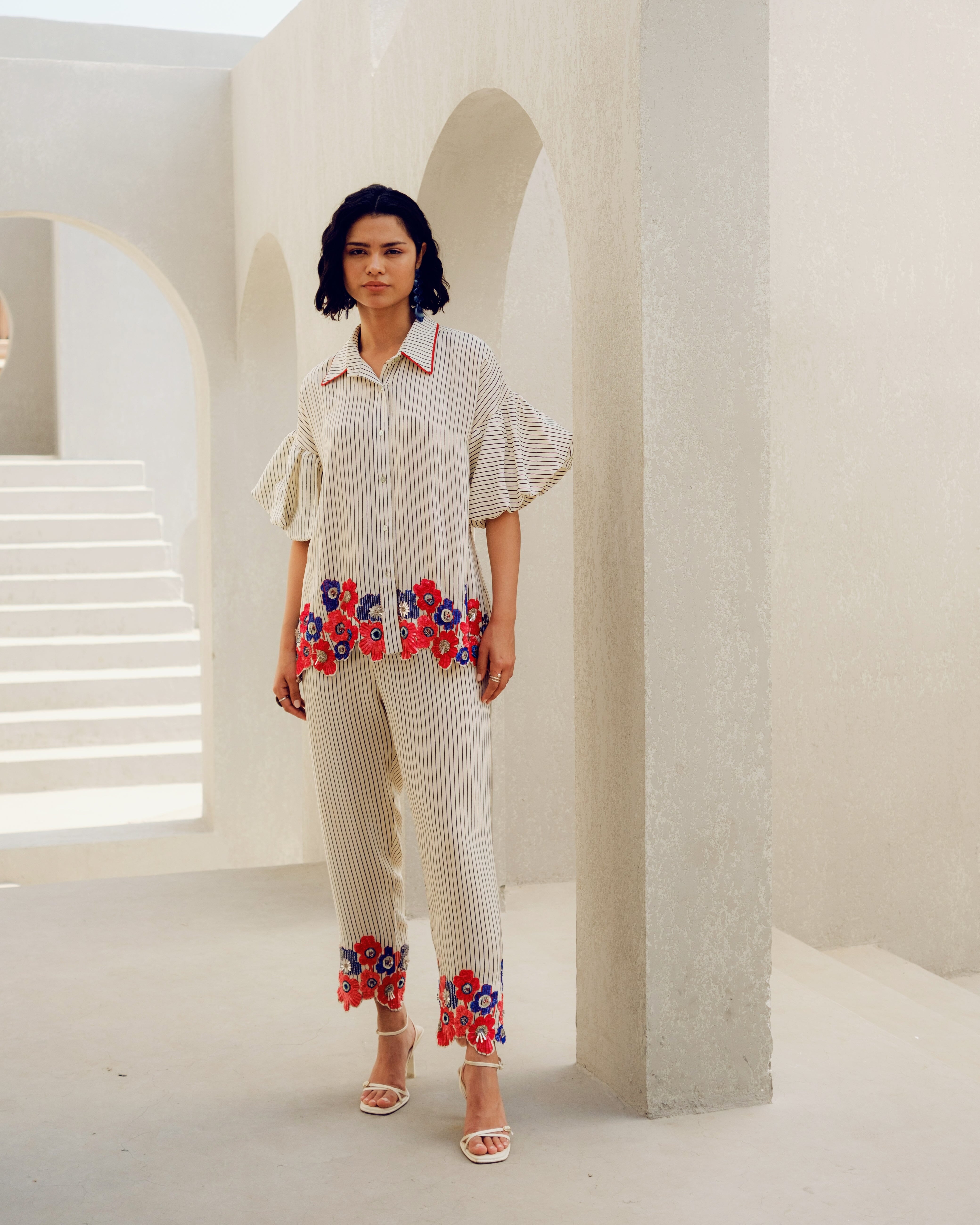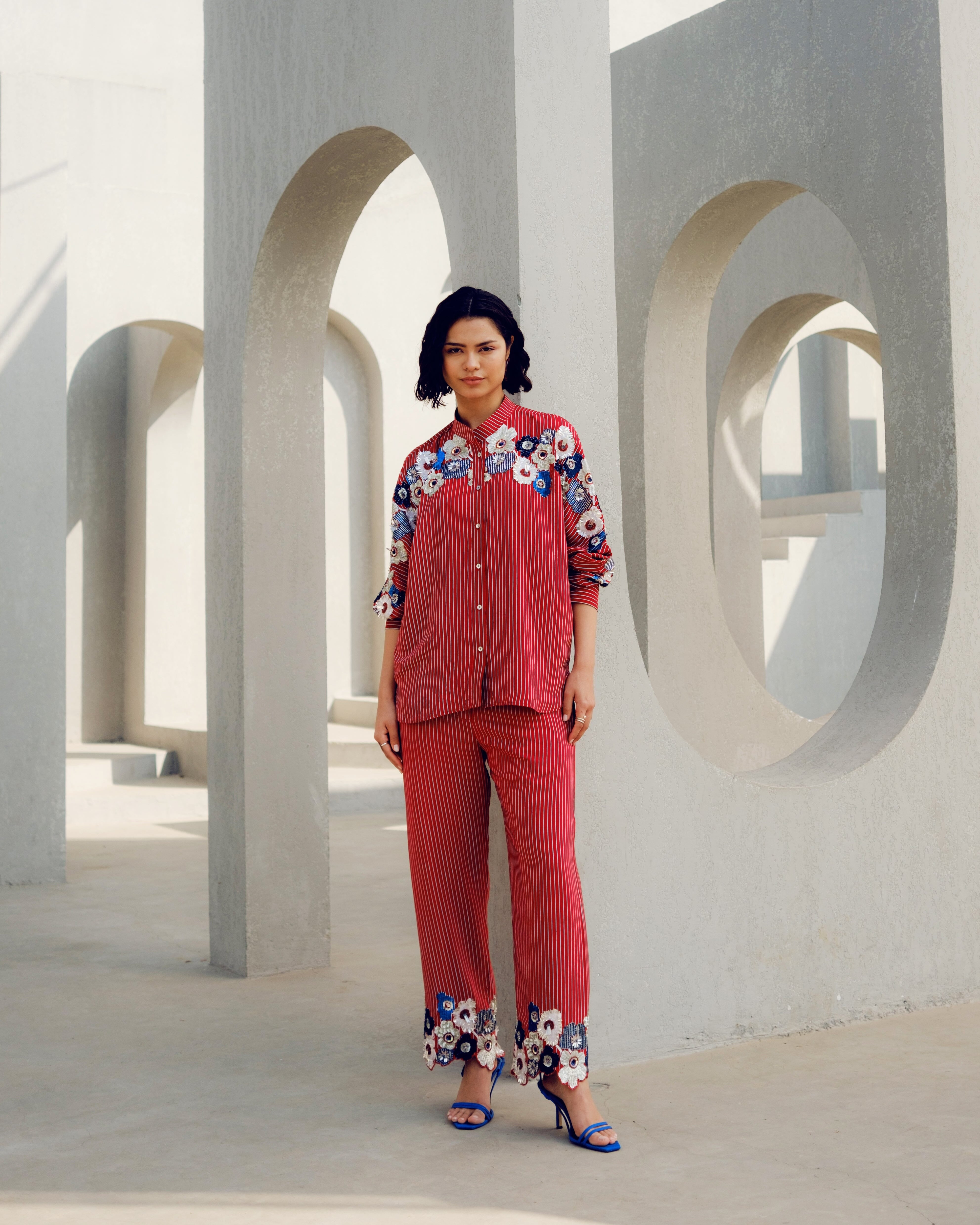 Pooja Rajgarhia Gupta’s style shouts vivid and bright with amalgamation of traditional aesthetics and modern design. The label’s signature geometric surface textures bring a new feel to Indian fluid silhouettes. Their collections are a refreshing shift from very heavy Indian clothing to easy playful silhouettes, statement colors, foiling, printing, intricate handwork and impactful geometric sequence work. Delivery period for this label is usually 20-25 days.