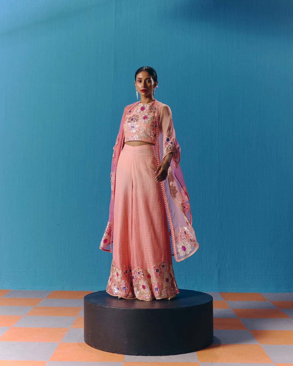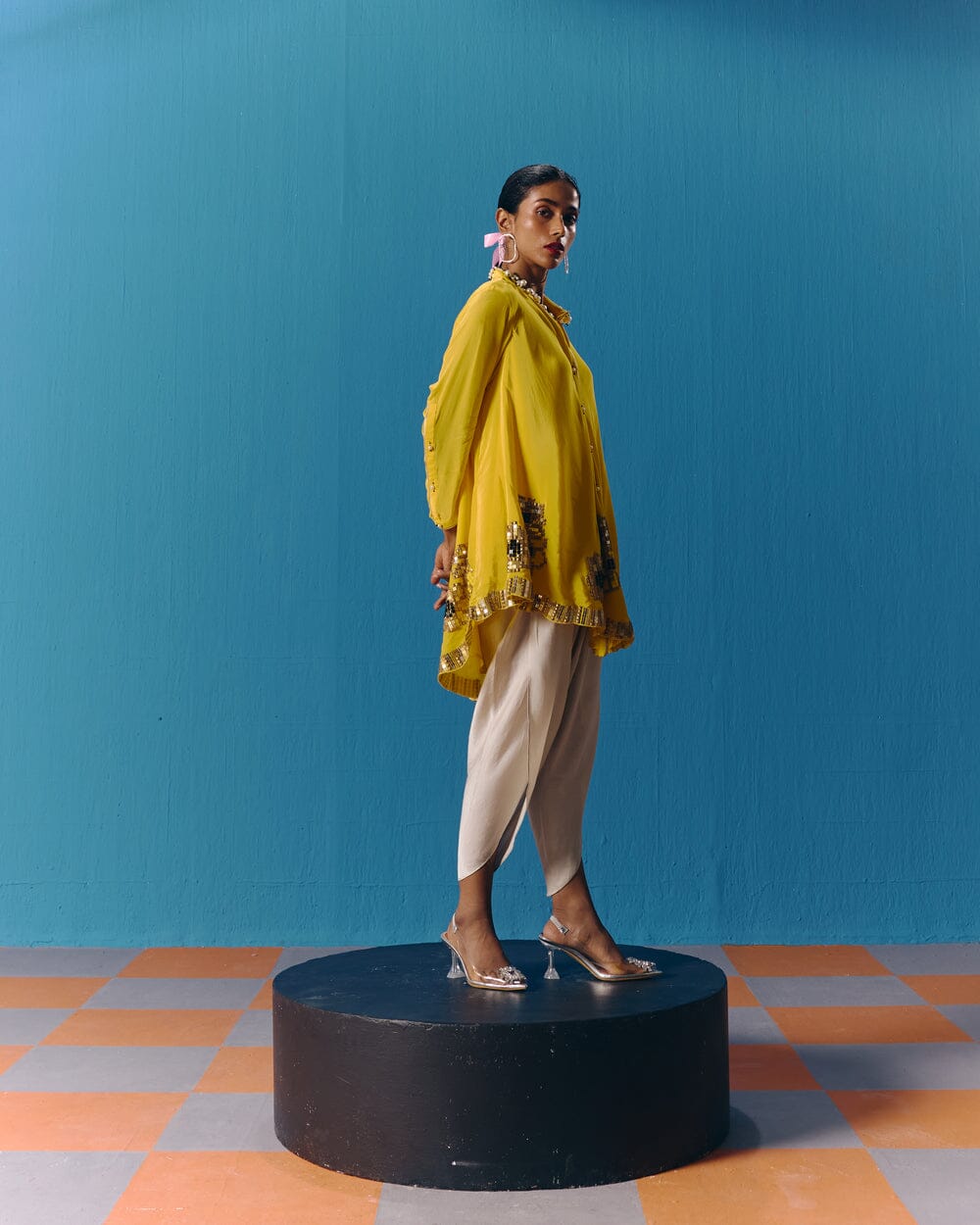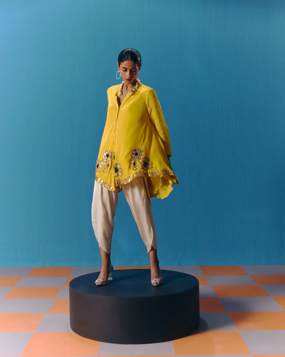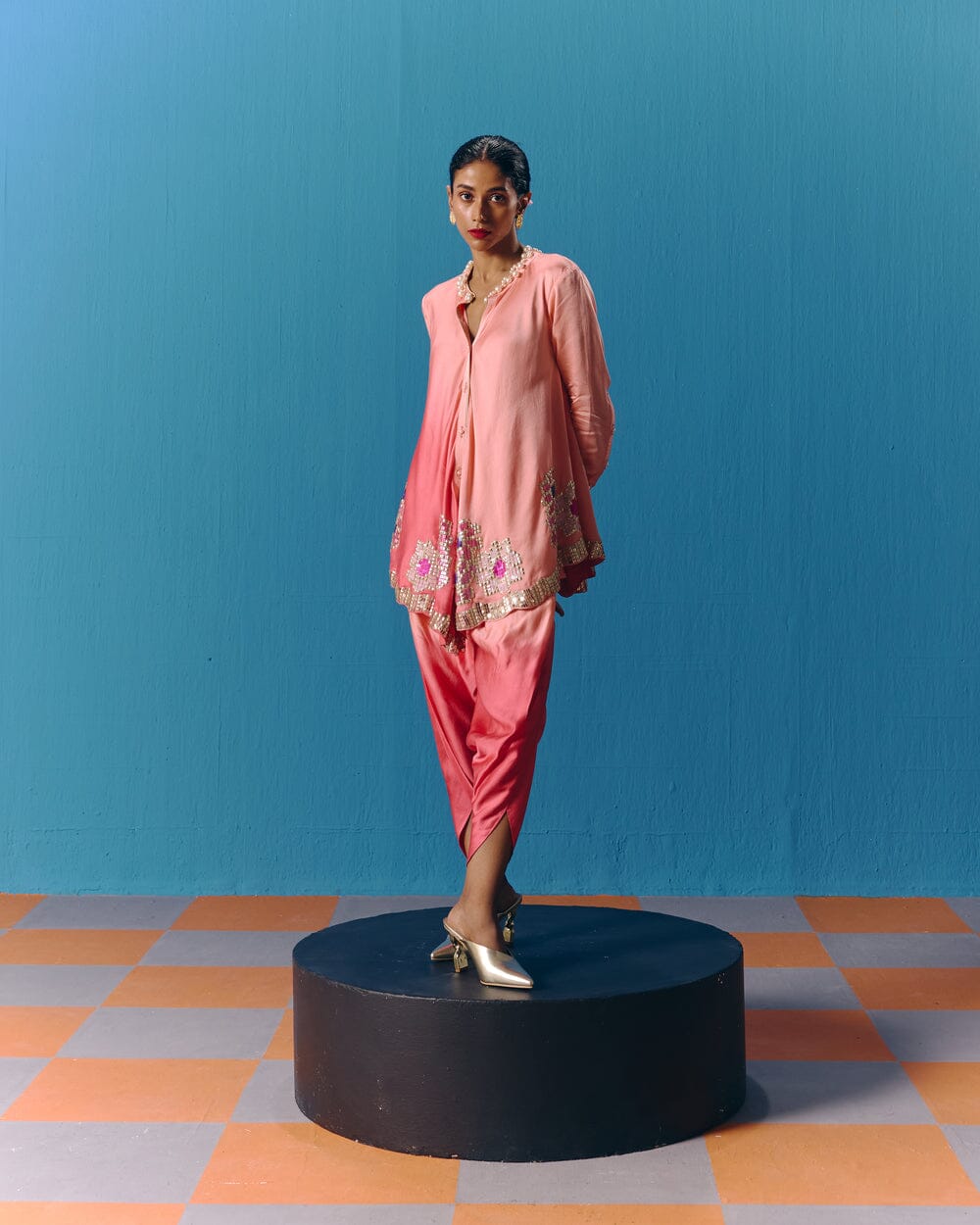 Pooja Rajgarhia Gupta’s style shouts vivid and bright with amalgamation of traditional aesthetics and modern design. The label’s signature geometric surface textures bring a new feel to Indian fluid silhouettes. Their collections are a refreshing shift from very heavy Indian clothing to easy playful silhouettes, statement colors, foiling, printing, intricate handwork and impactful geometric sequence work. Delivery period for this label is usually 20-25 days.
