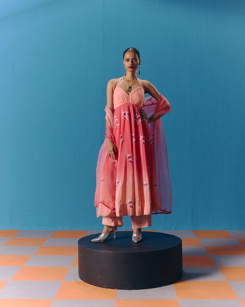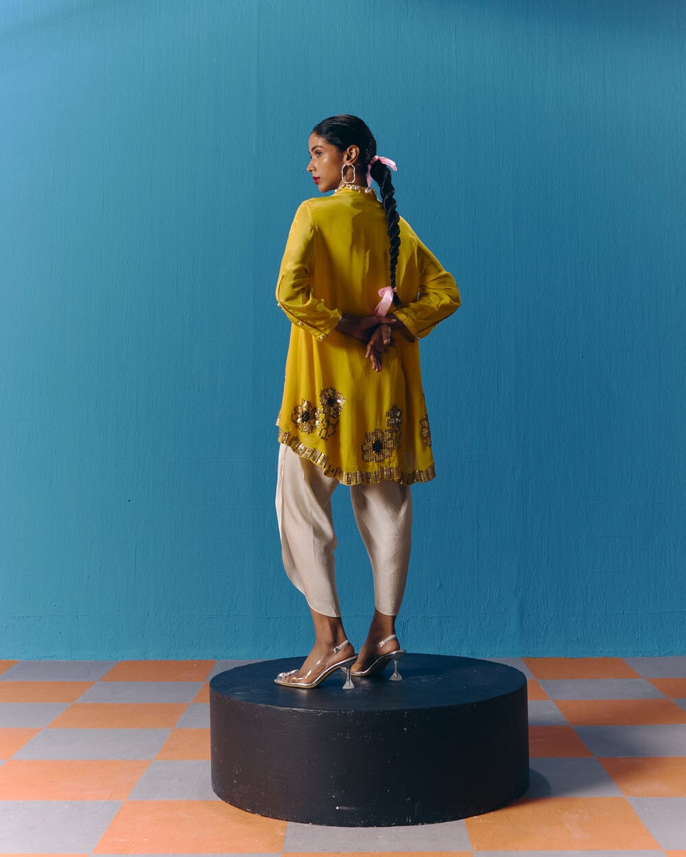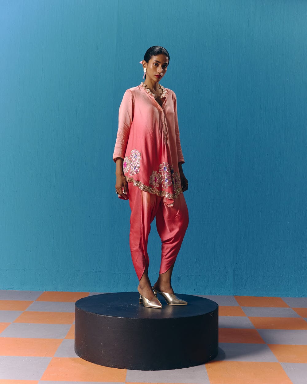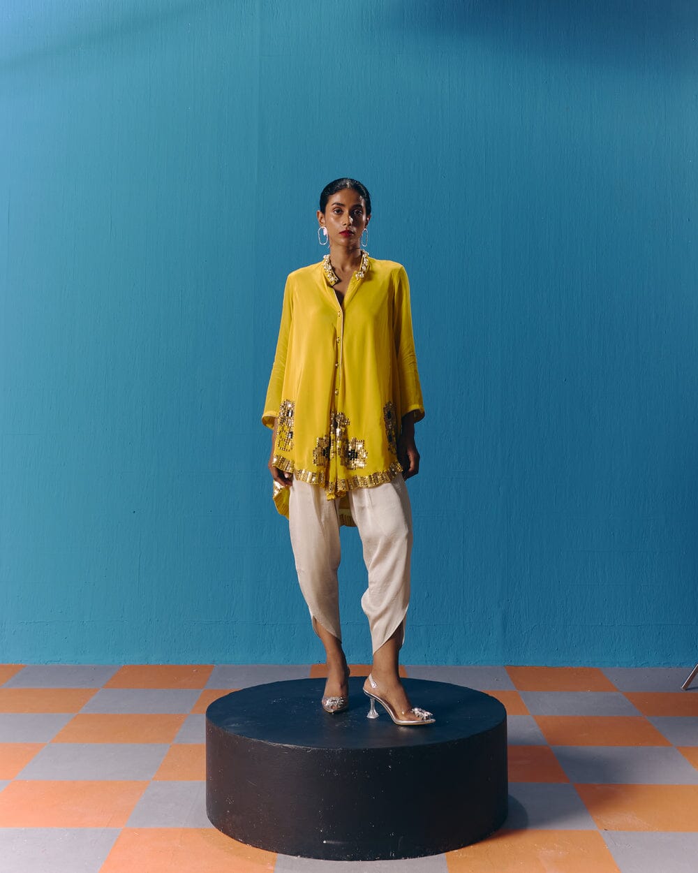 Pooja Rajgarhia Gupta’s style shouts vivid and bright with amalgamation of traditional aesthetics and modern design. The label’s signature geometric surface textures bring a new feel to Indian fluid silhouettes. Their collections are a refreshing shift from very heavy Indian clothing to easy playful silhouettes, statement colors, foiling, printing, intricate handwork and impactful geometric sequence work. Delivery period for this label is usually 20-25 days.