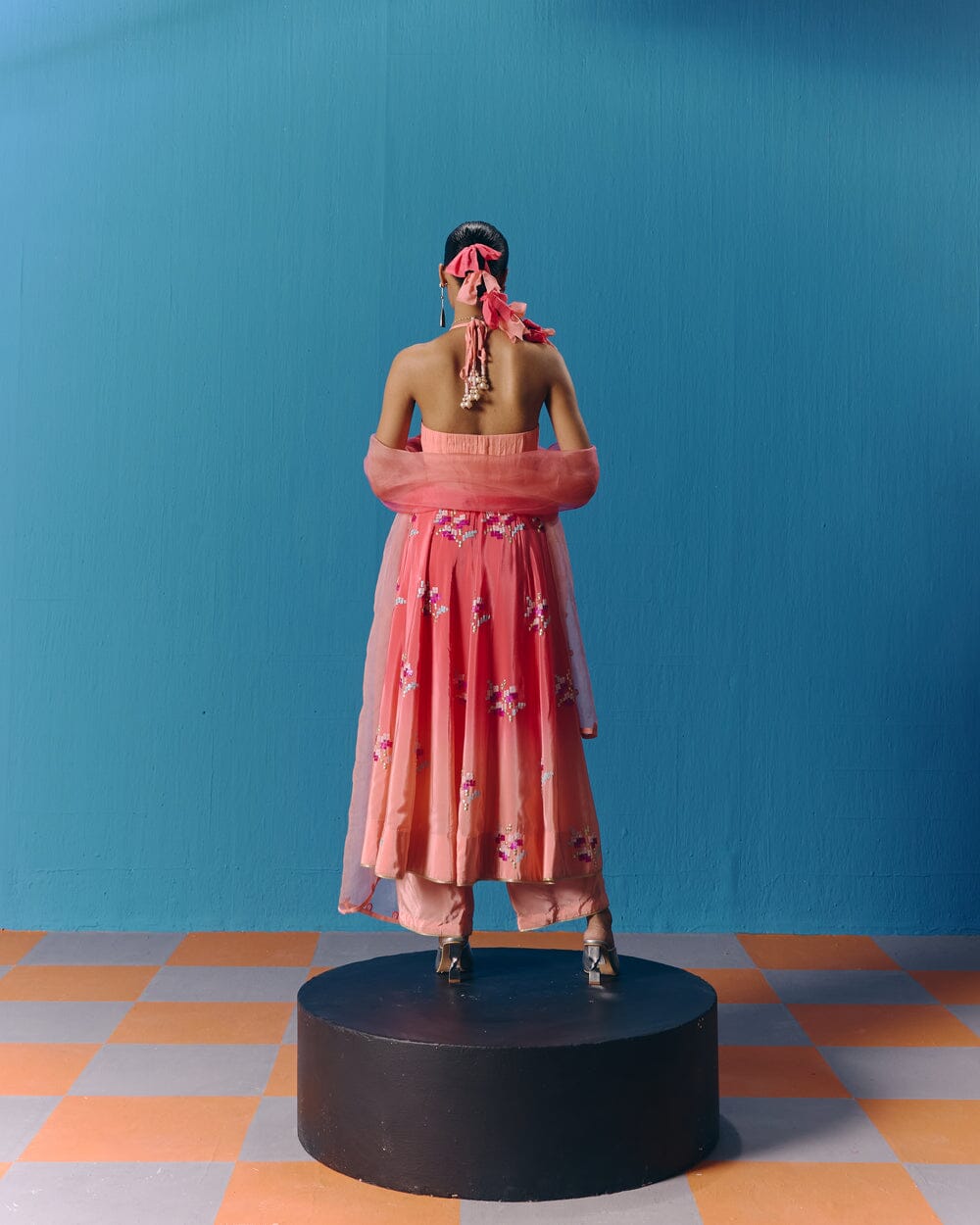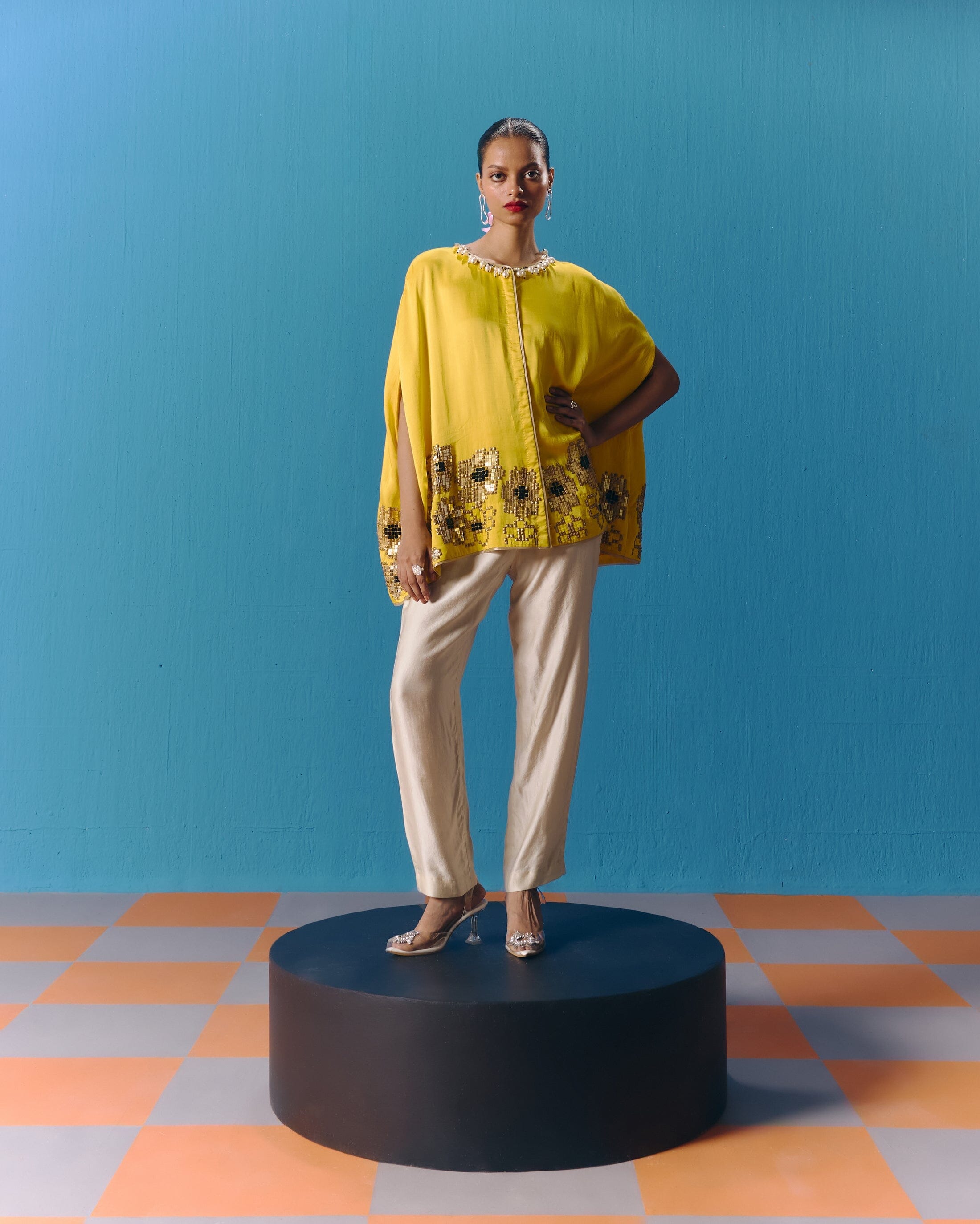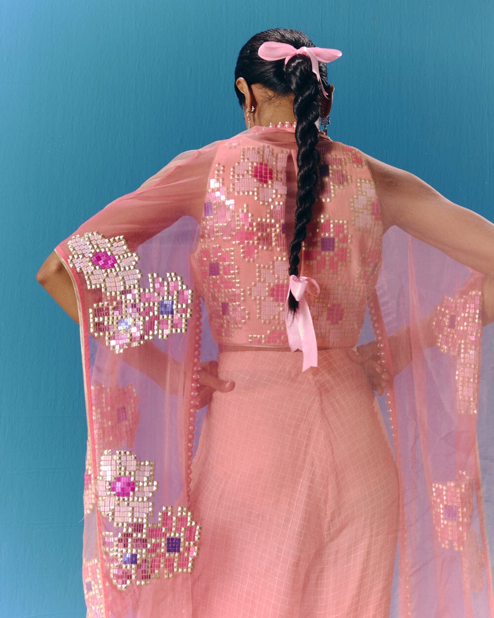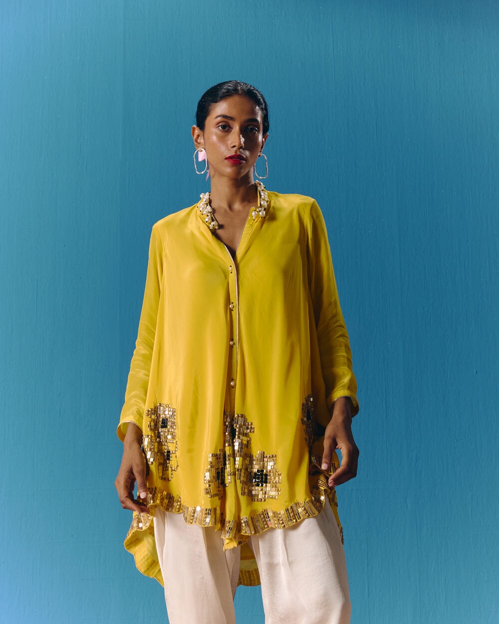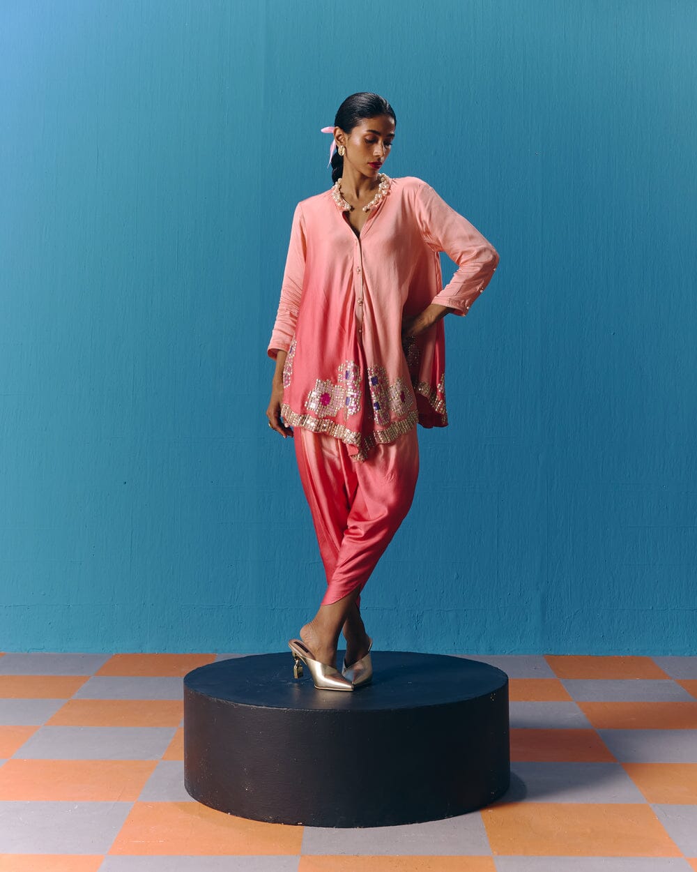 Pooja Rajgarhia Gupta’s style shouts vivid and bright with amalgamation of traditional aesthetics and modern design. The label’s signature geometric surface textures bring a new feel to Indian fluid silhouettes. Their collections are a refreshing shift from very heavy Indian clothing to easy playful silhouettes, statement colors, foiling, printing, intricate handwork and impactful geometric sequence work. Delivery period for this label is usually 20-25 days.