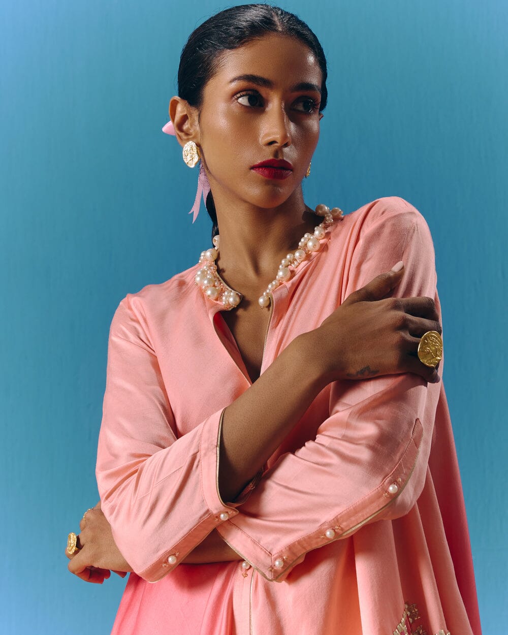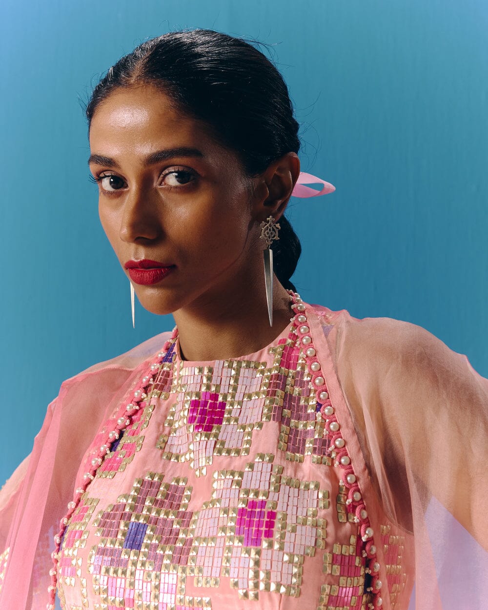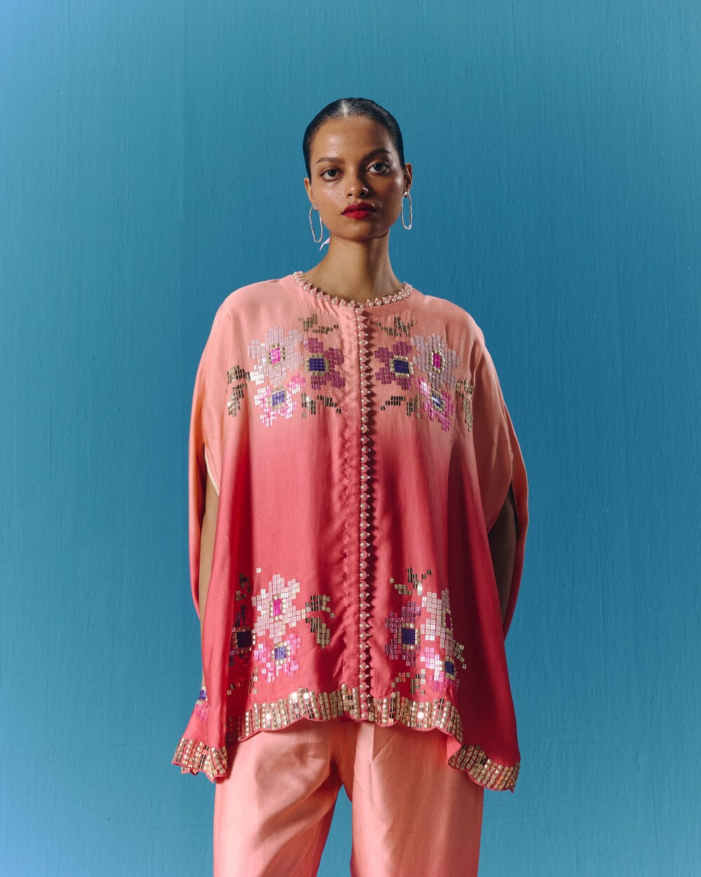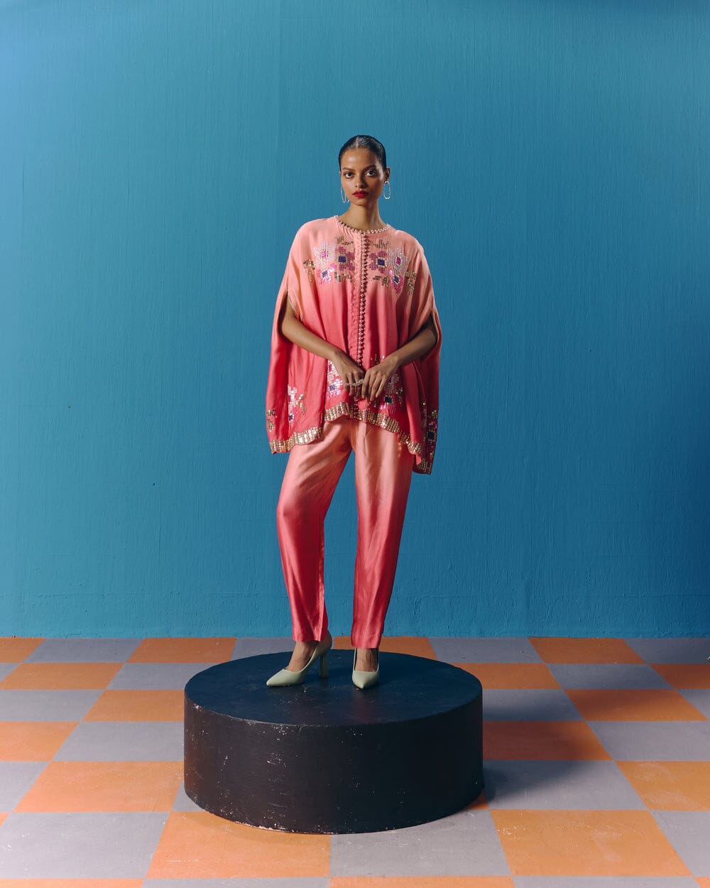 Pooja Rajgarhia Gupta’s style shouts vivid and bright with amalgamation of traditional aesthetics and modern design. The label’s signature geometric surface textures bring a new feel to Indian fluid silhouettes. Their collections are a refreshing shift from very heavy Indian clothing to easy playful silhouettes, statement colors, foiling, printing, intricate handwork and impactful geometric sequence work. Delivery period for this label is usually 20-25 days.
