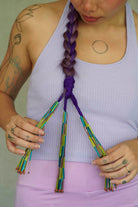 Tassels made of green, blue and violet shiny glass pipes. Perfect accessory to pair it with a contemporary outfit.