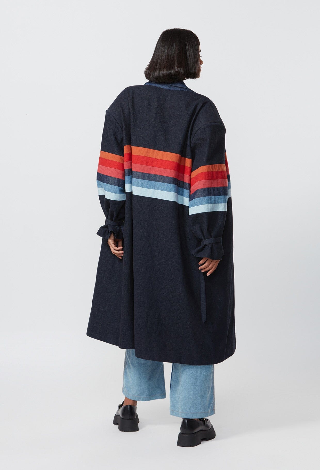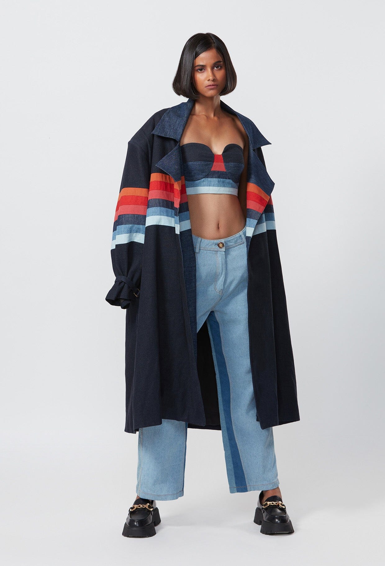 COAT : TRI COLOUR DENIM PATCHWORK OVERSIZED COAT