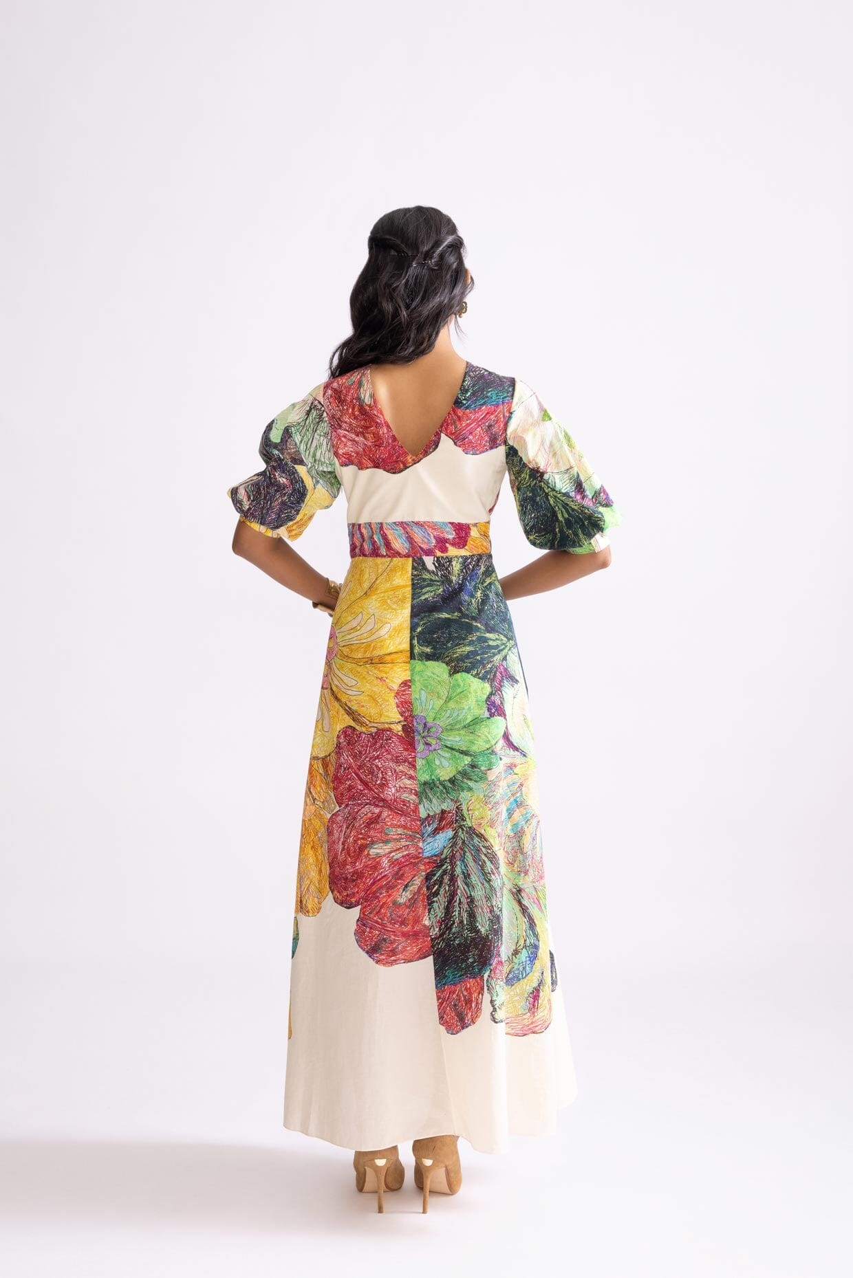 DAISY PRINT A LINE DRESS WITH LONG SLEEVES AND KEY HOLE DETAILING