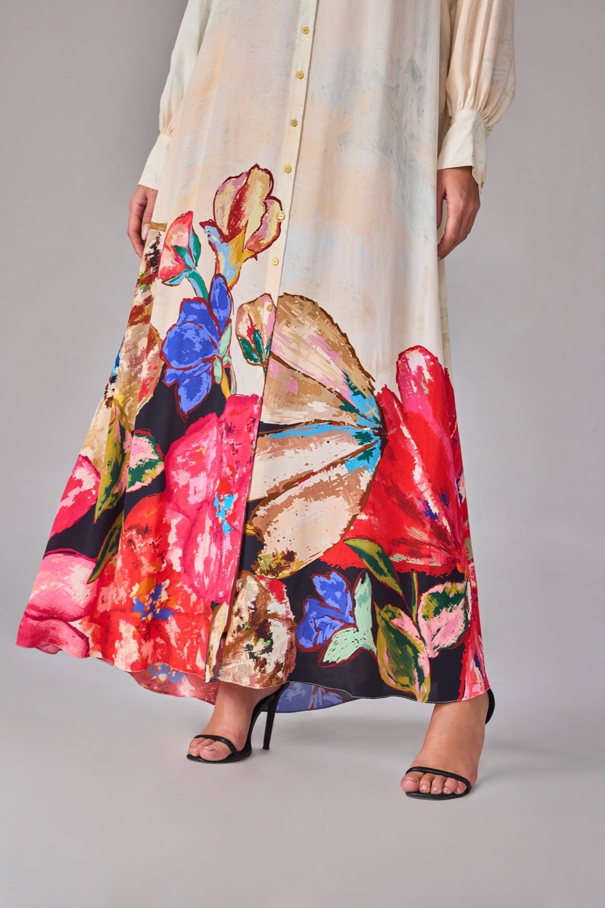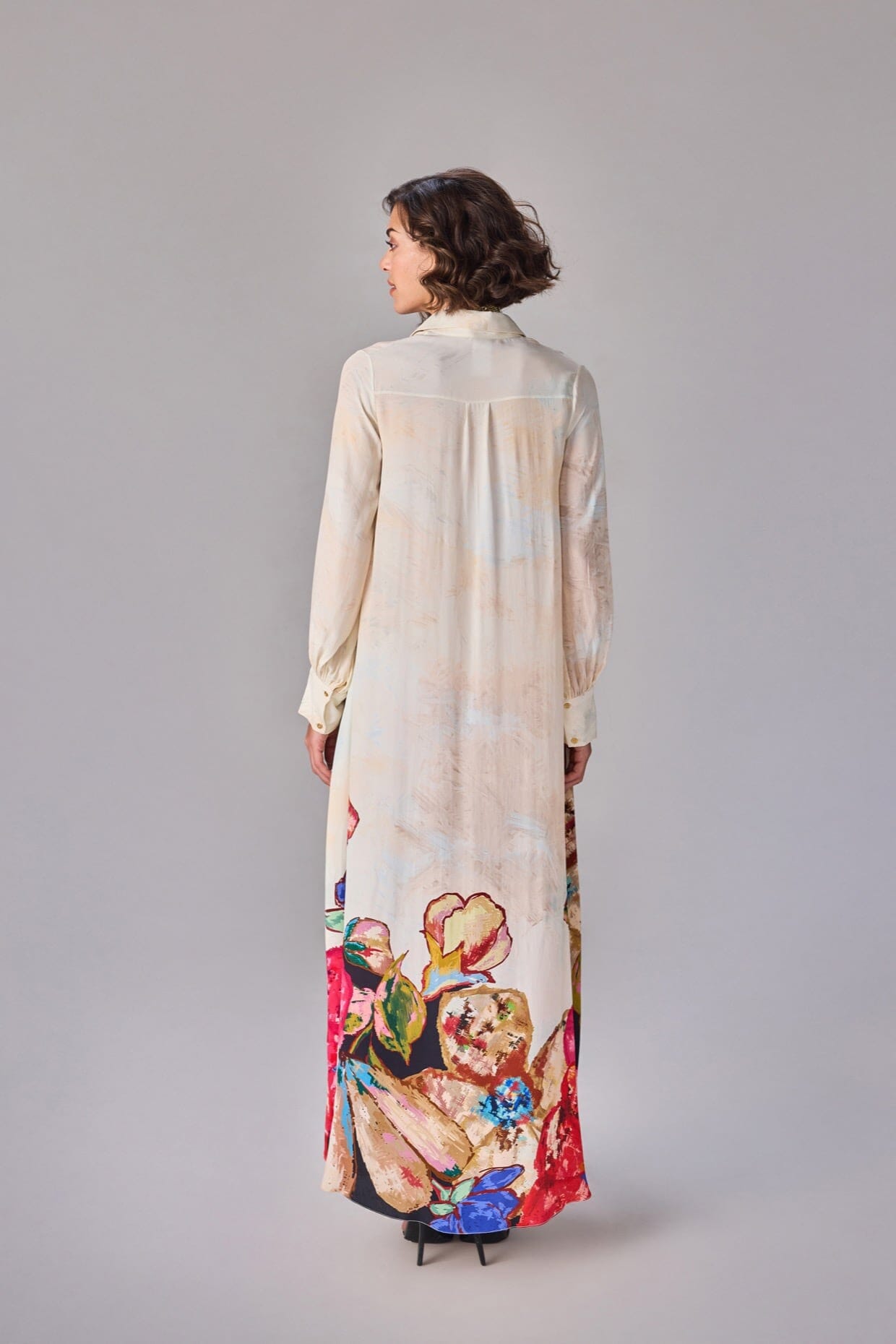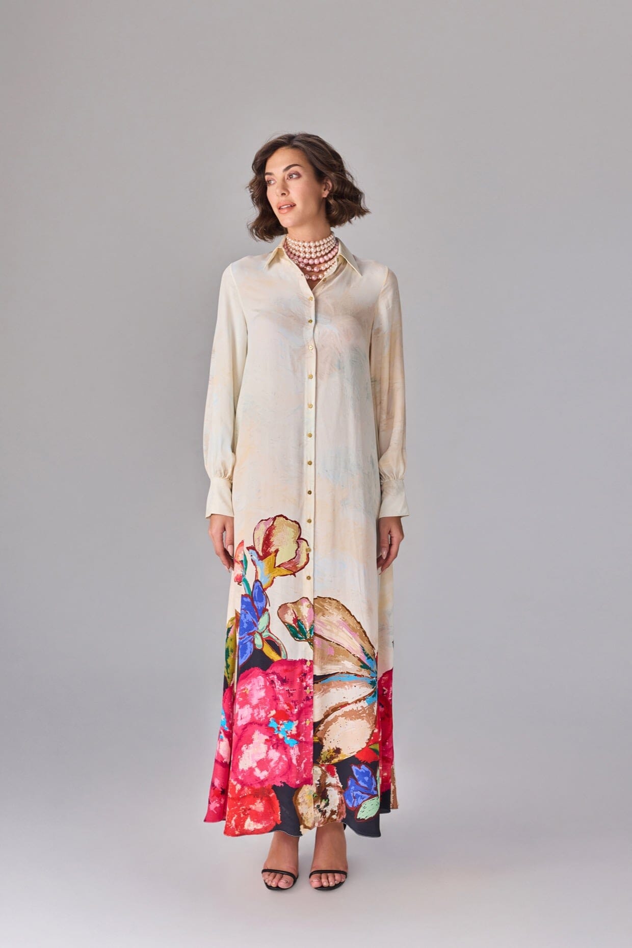 Floral Placement Print, Buttoned Down Collared Shirt Dress