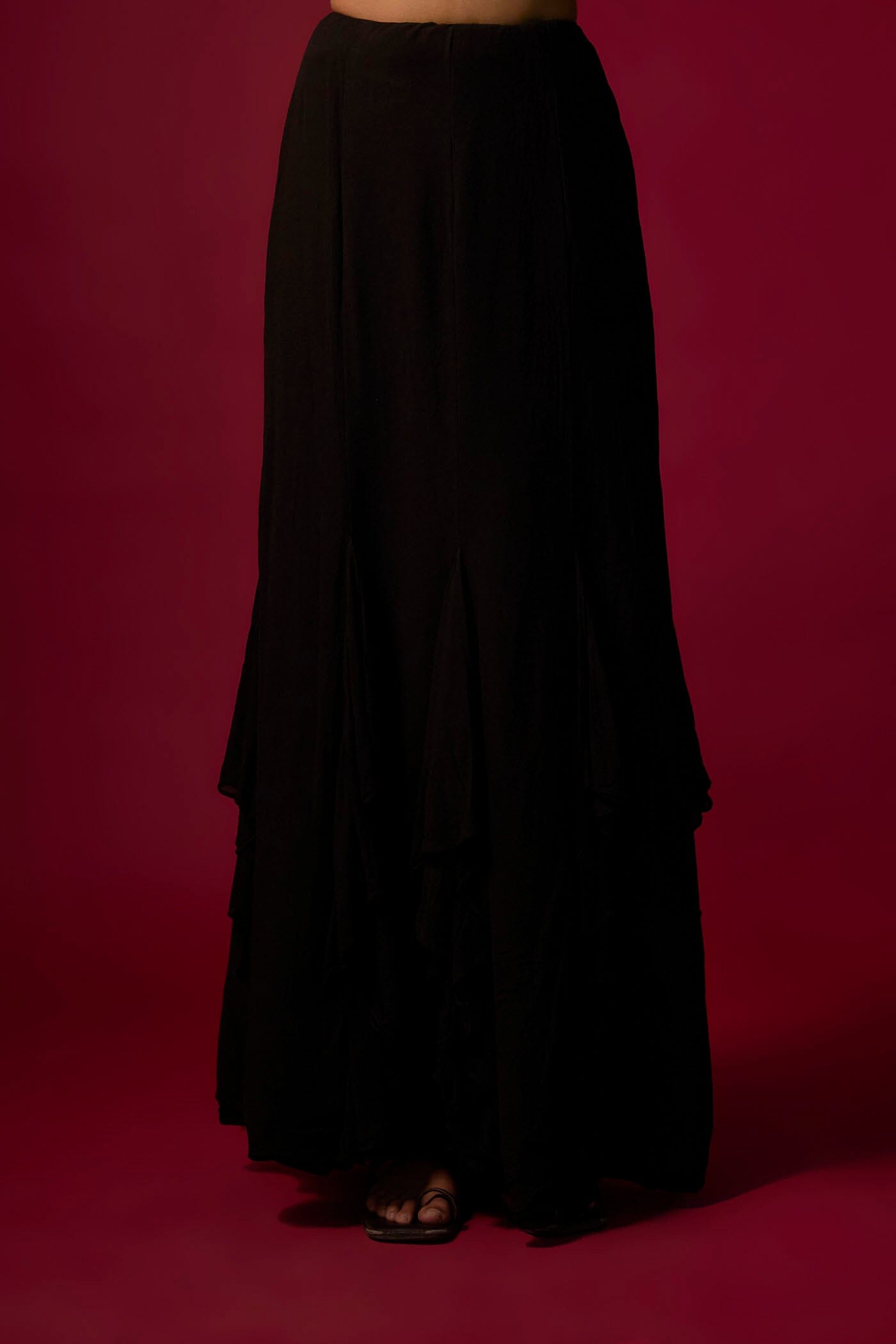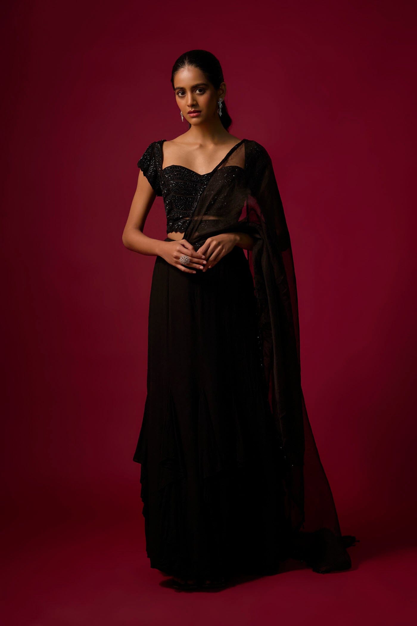 BLACK CHOLI WITH RUFFLE SKIRT WITH PALLU SET