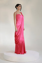 Command the spotlight in our PINK Corset Saree — a sculpted silhouette that marries structure with fluidity. Designed in luxurious fabric, the corset contours the body with precision, while the pre-draped saree cascades effortlessly for a modern, yet timeless appeal. With refined gathers and a cinched waistline, this ensemble is your go-to for elevated celebrations and unforgettable entrances.