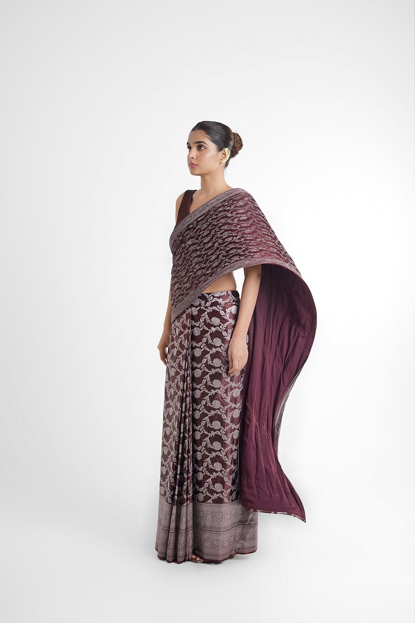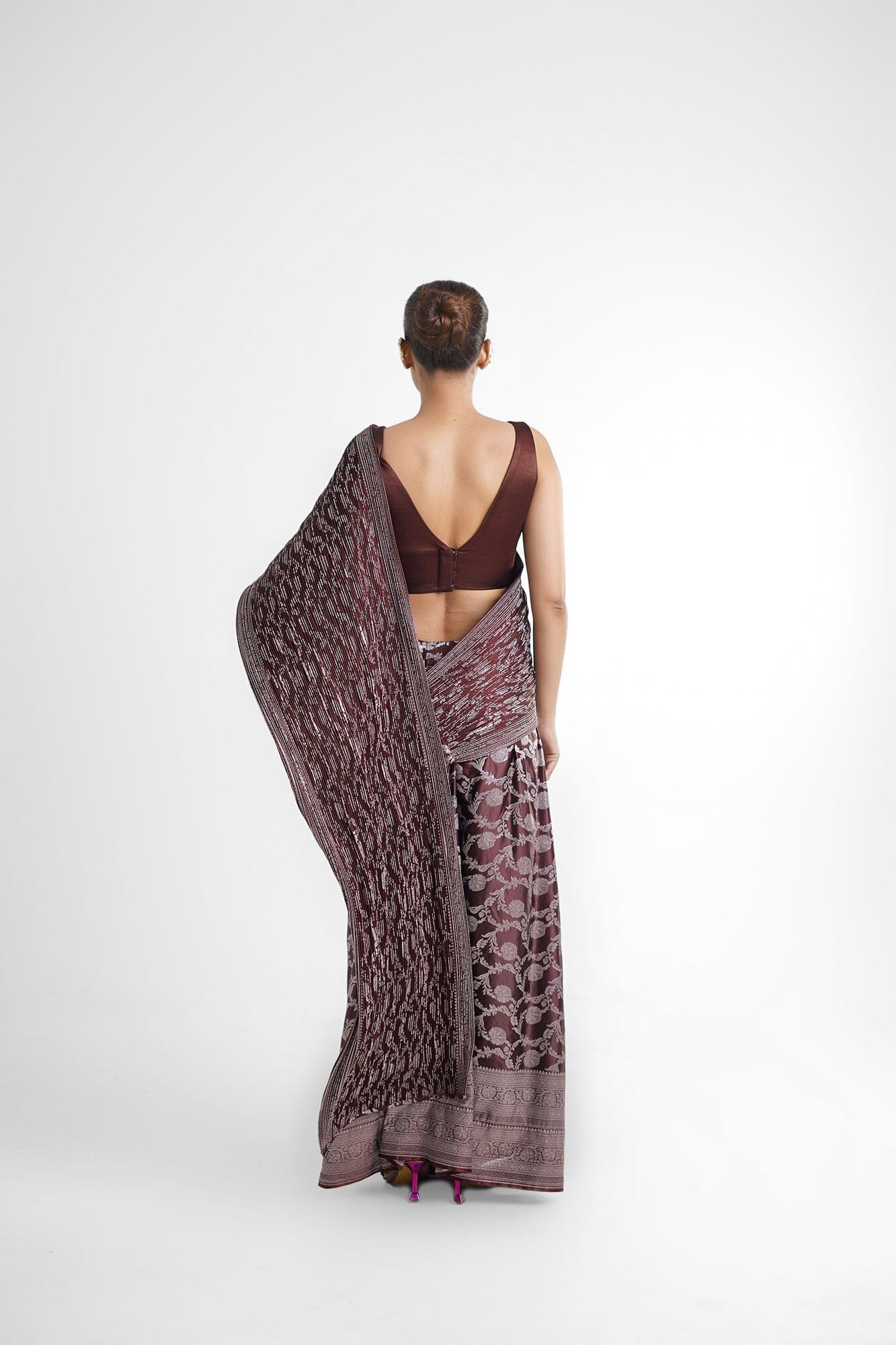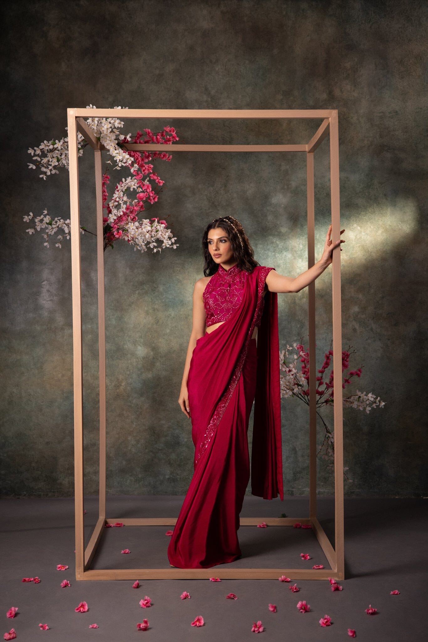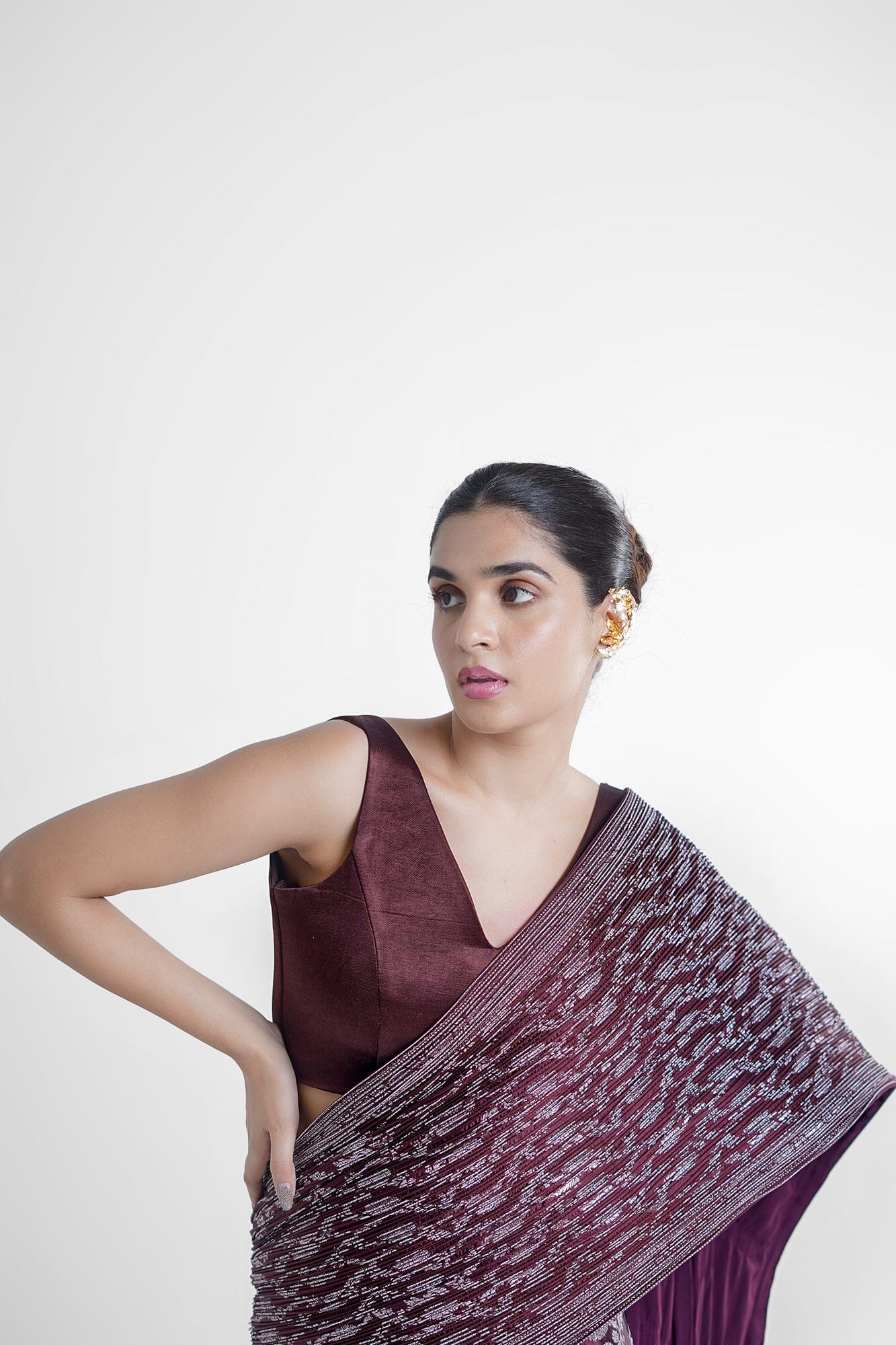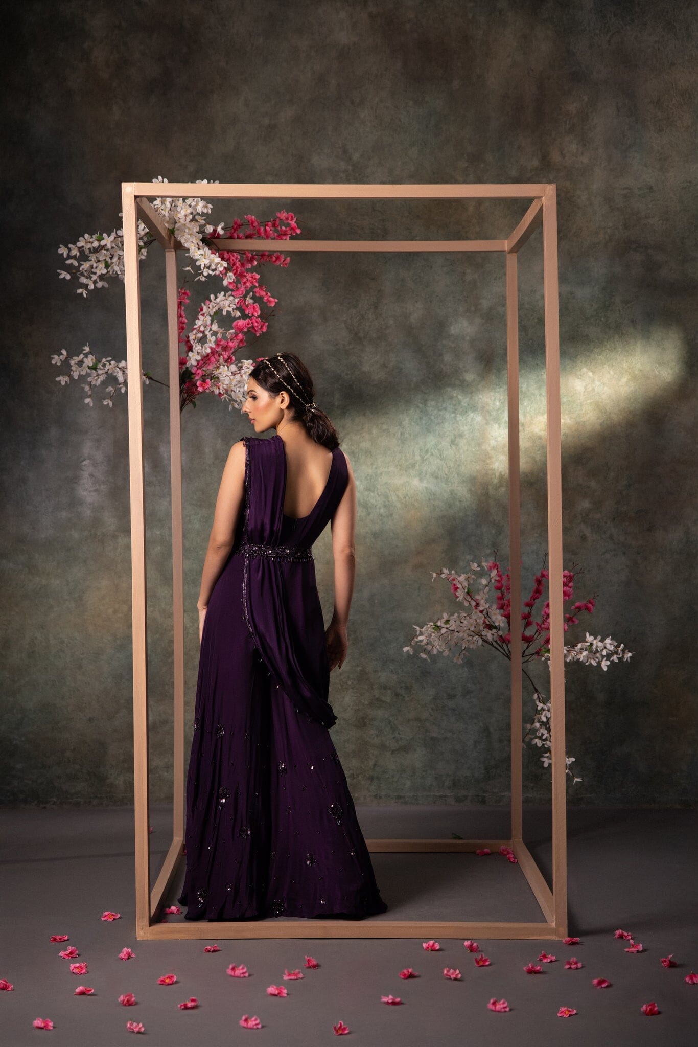 Purple Jumpsuit, Drape And Belt Set With Embroidery