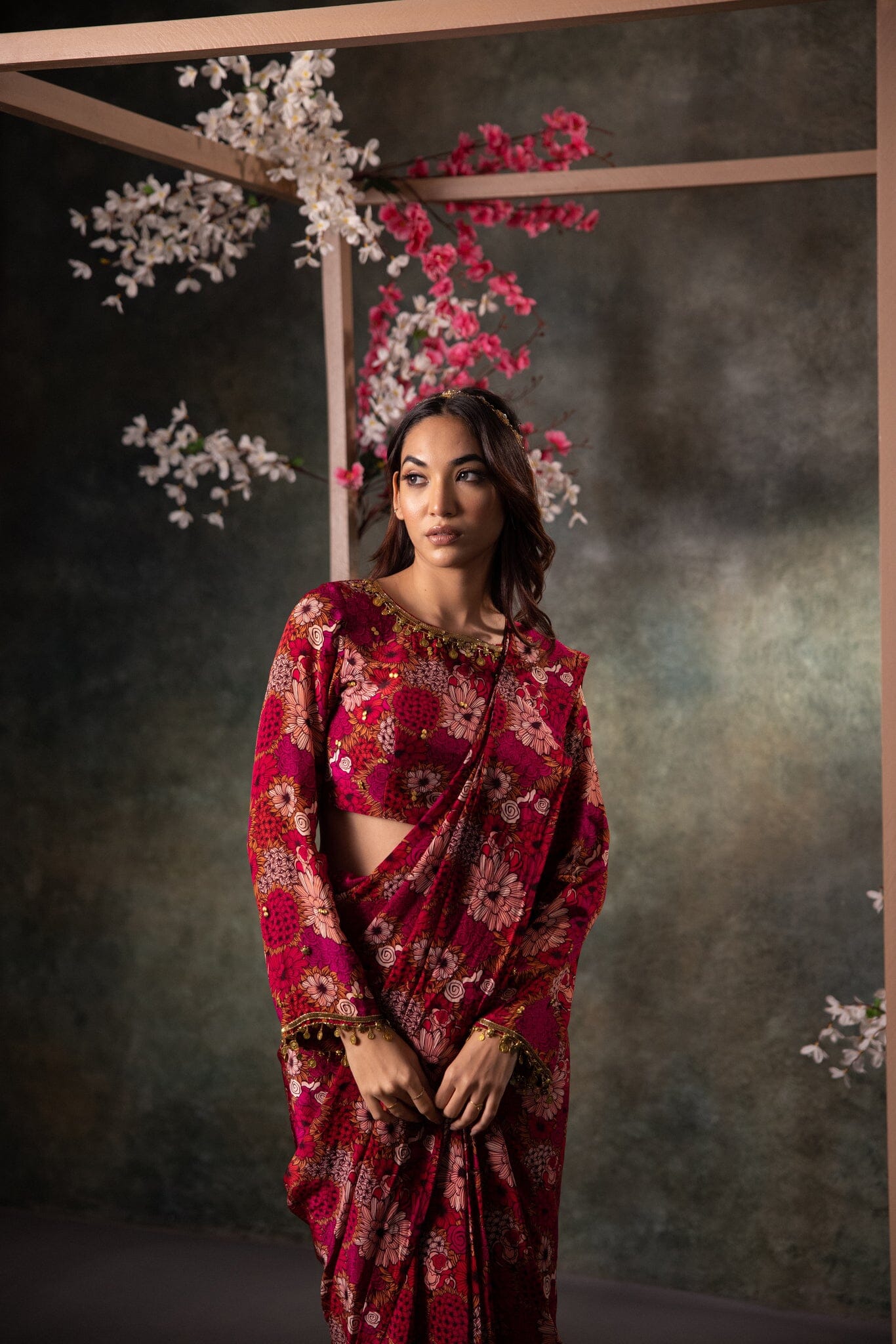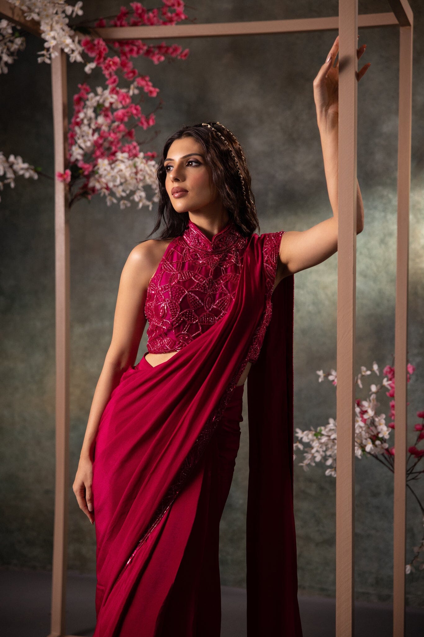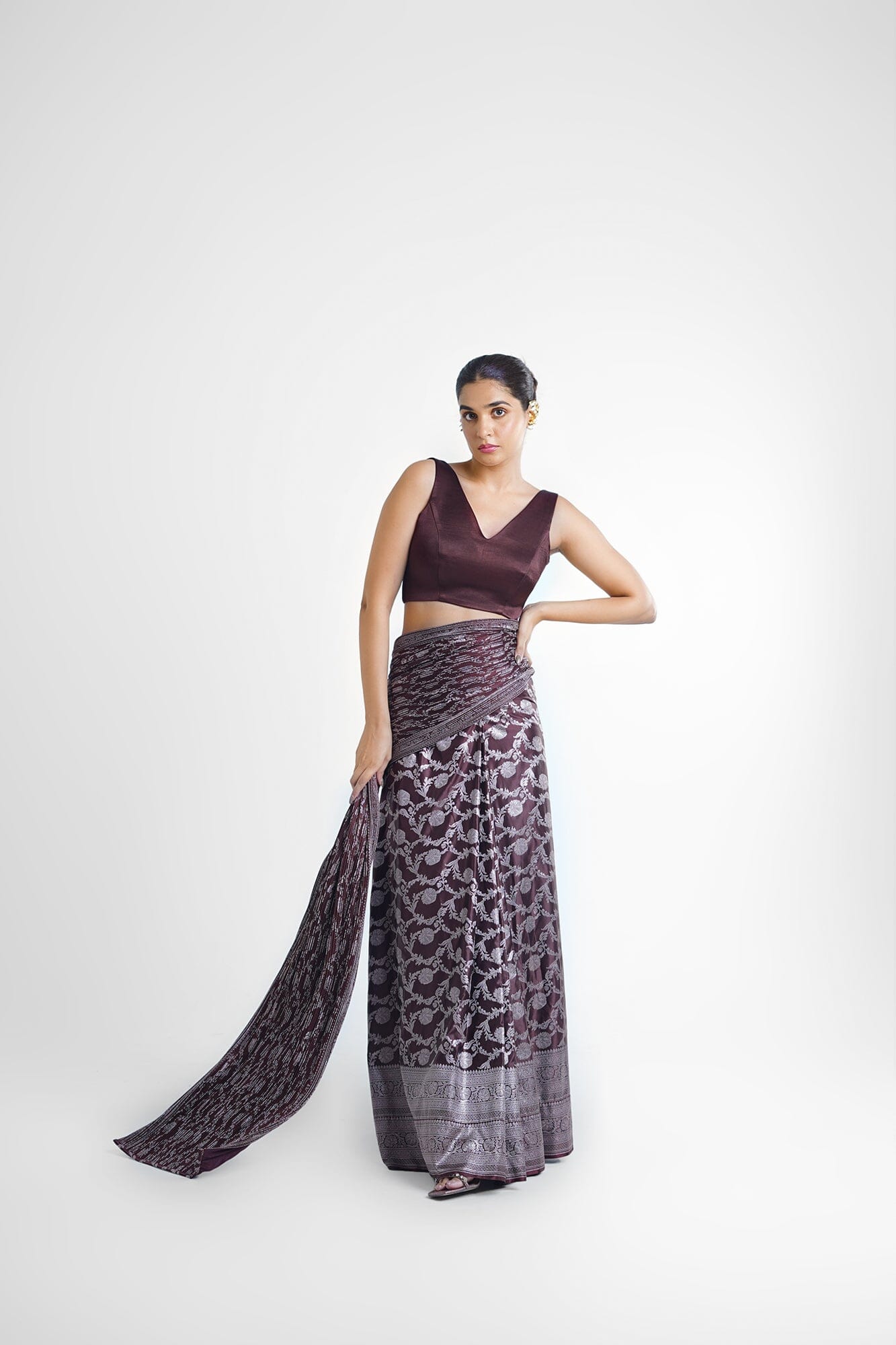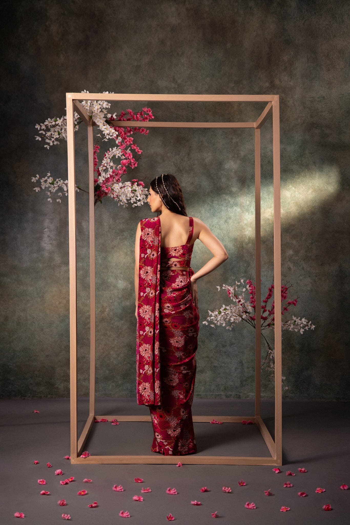 Purple Jumpsuit, Drape And Belt Set With Embroidery
