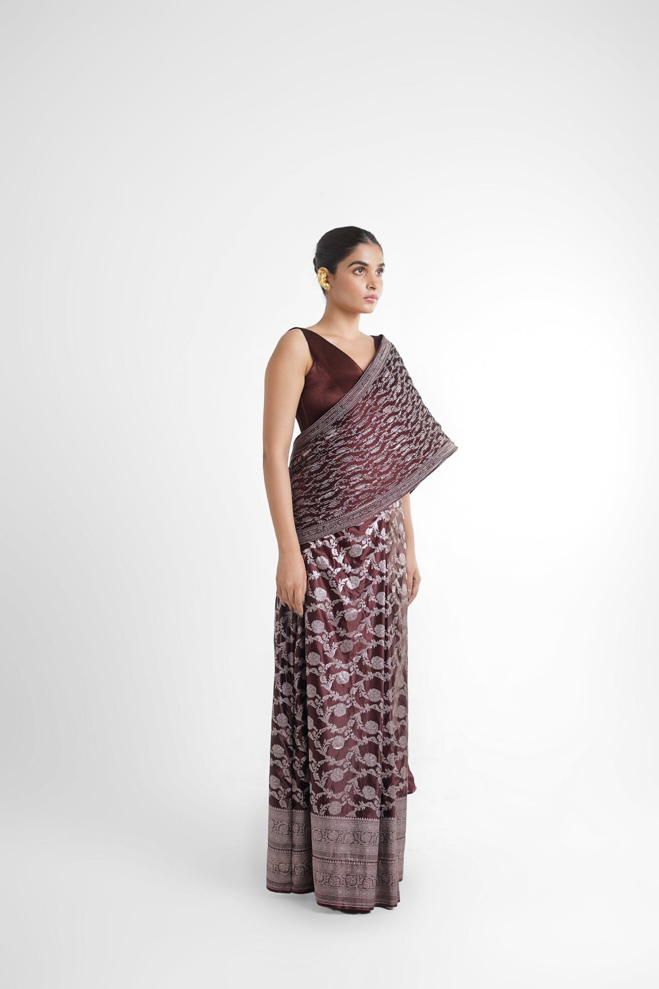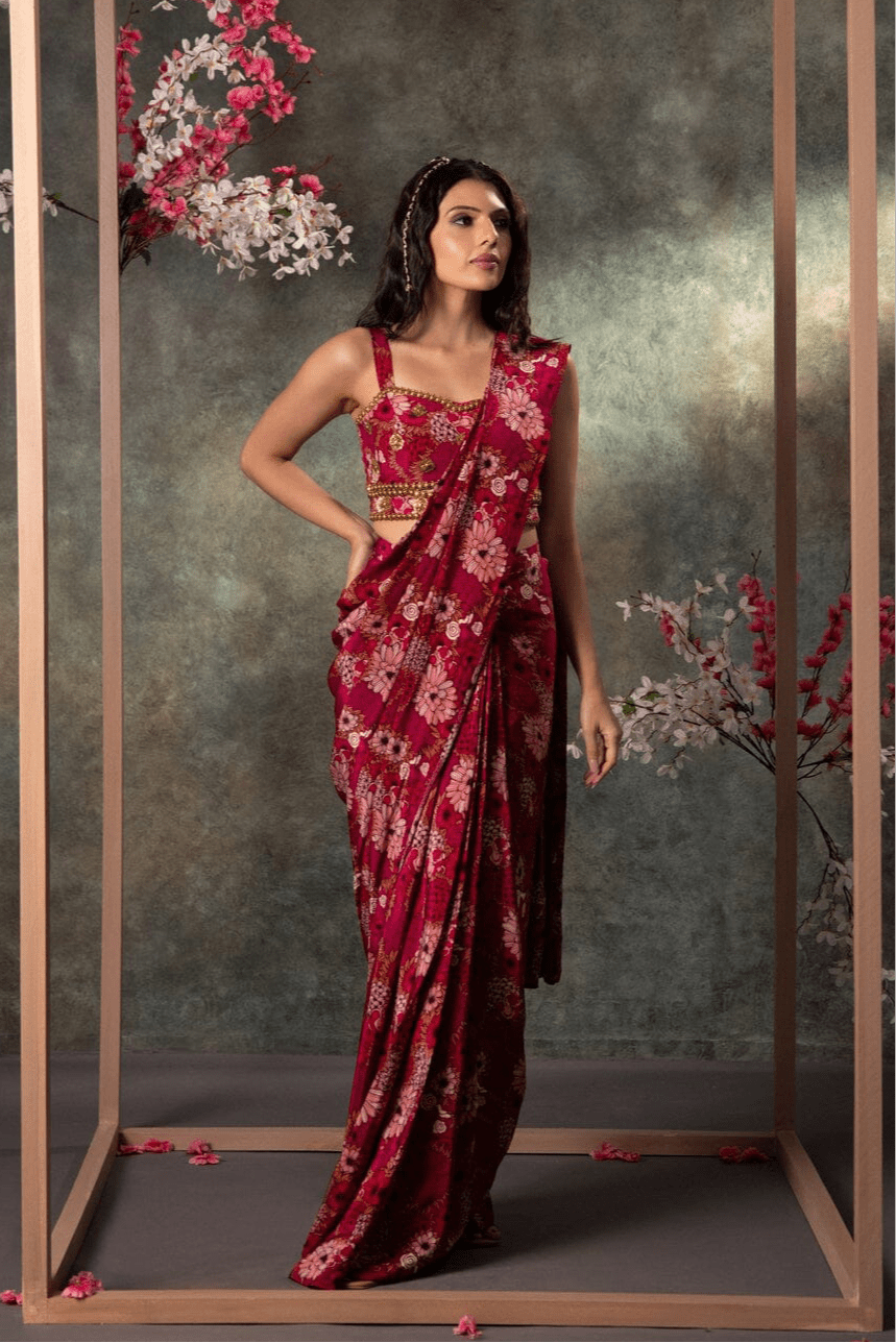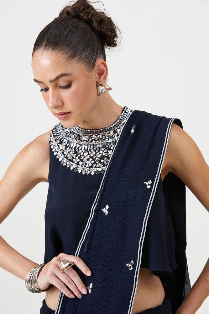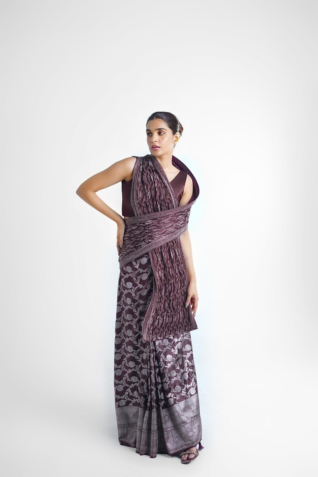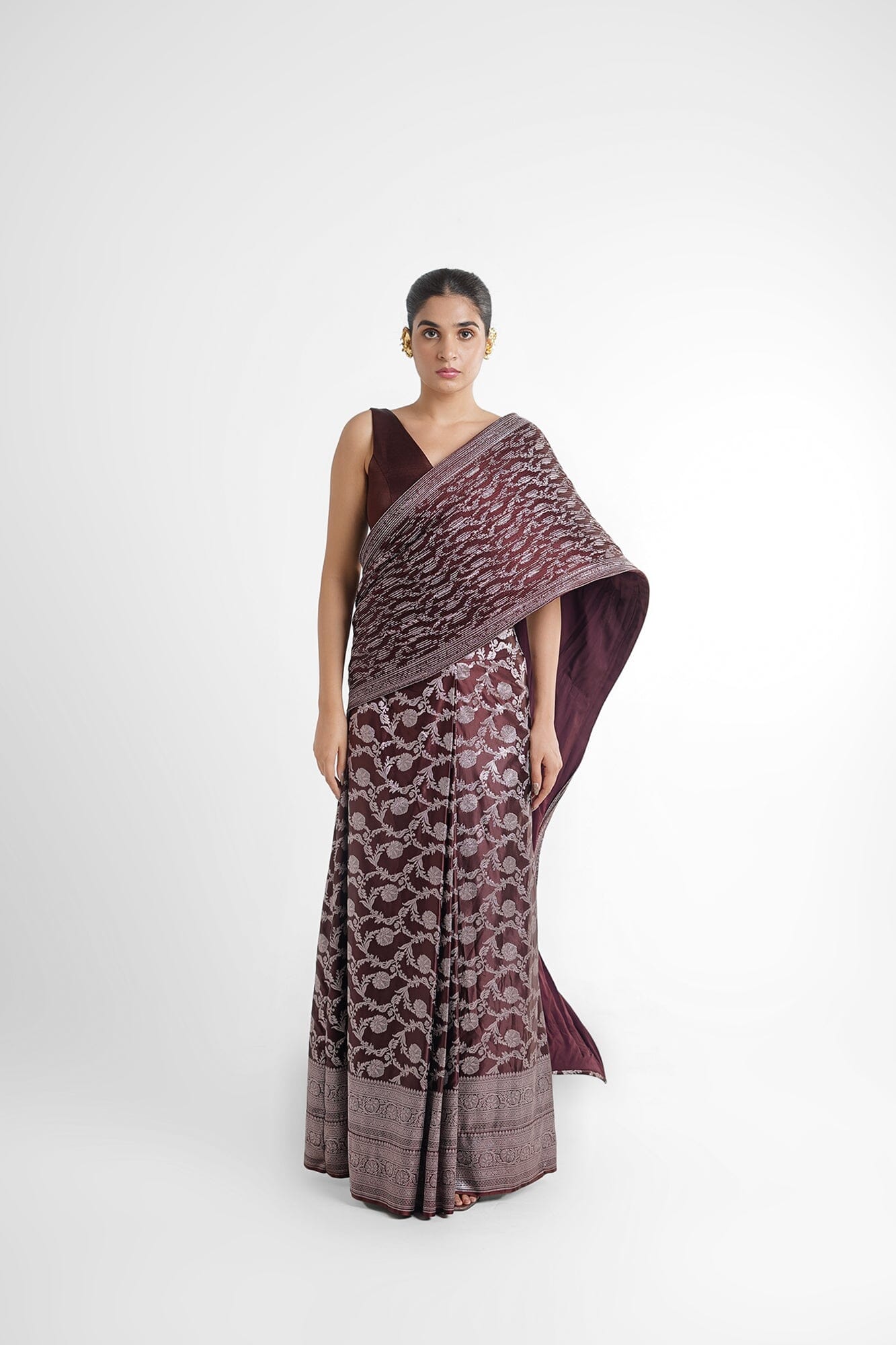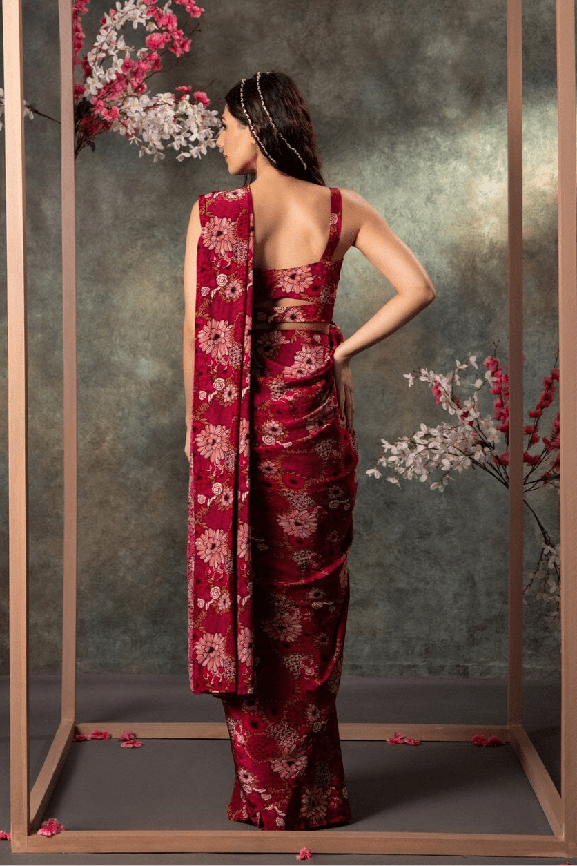 Purple Jumpsuit, Drape And Belt Set With Embroidery