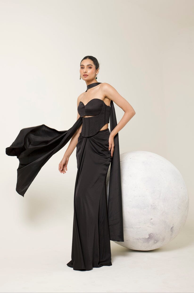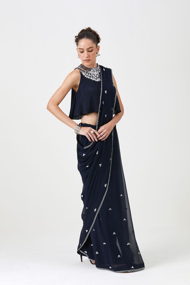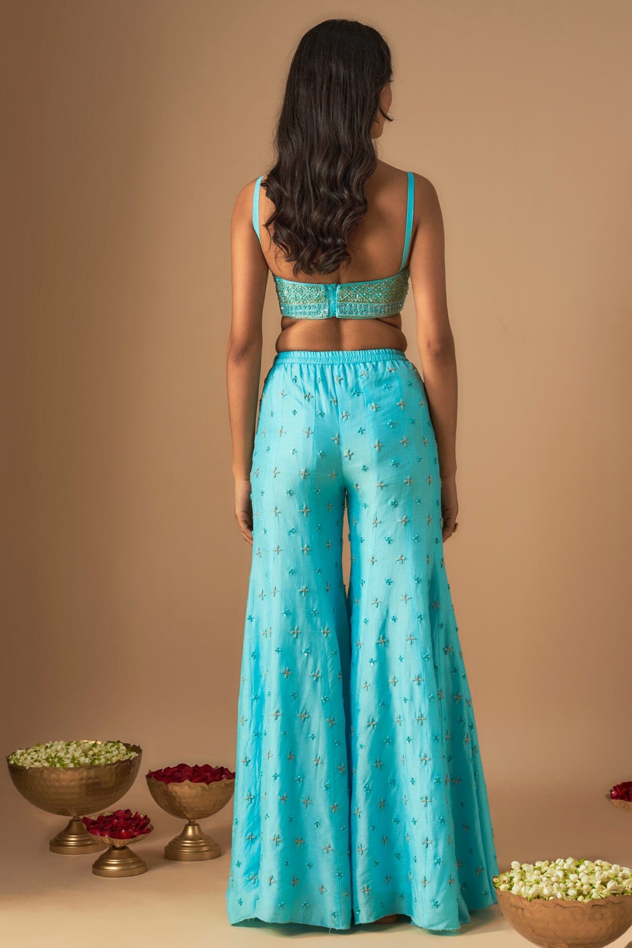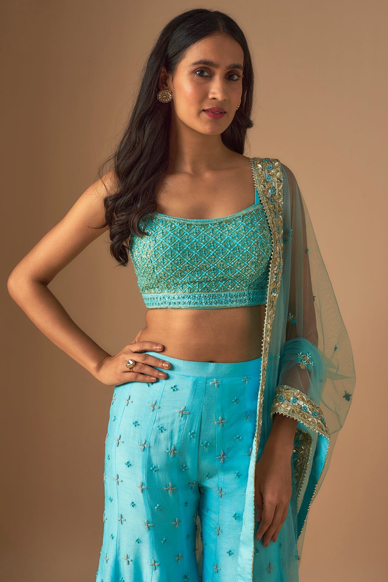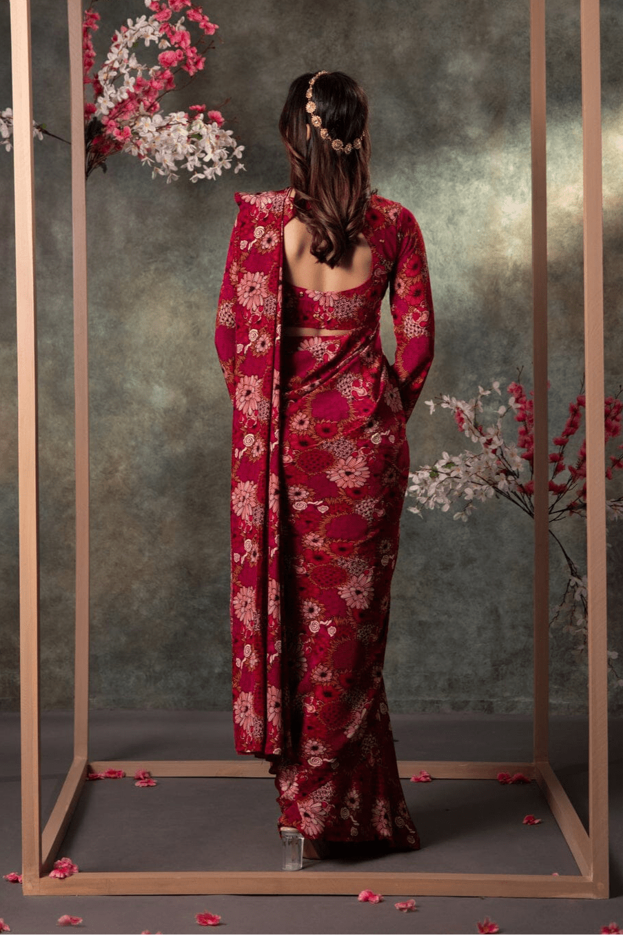 Purple Jumpsuit, Drape And Belt Set With Embroidery
