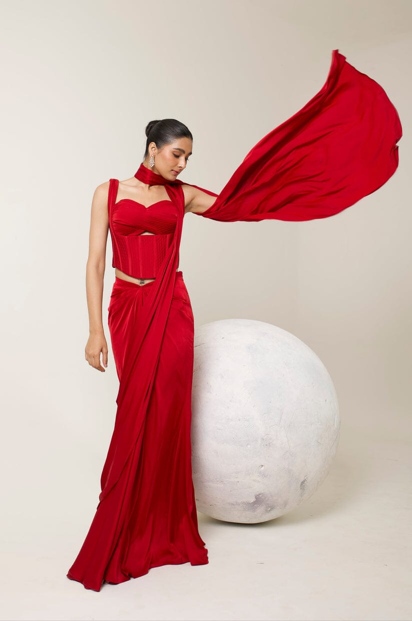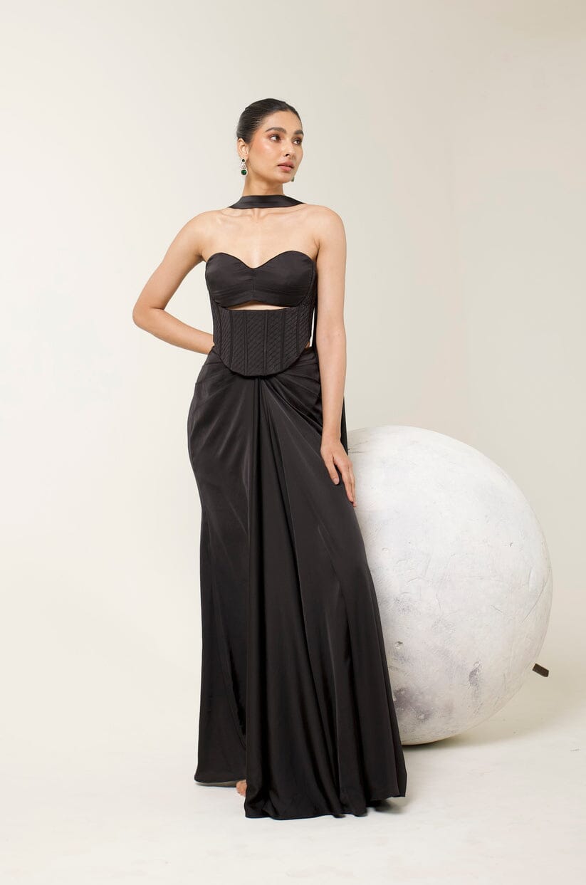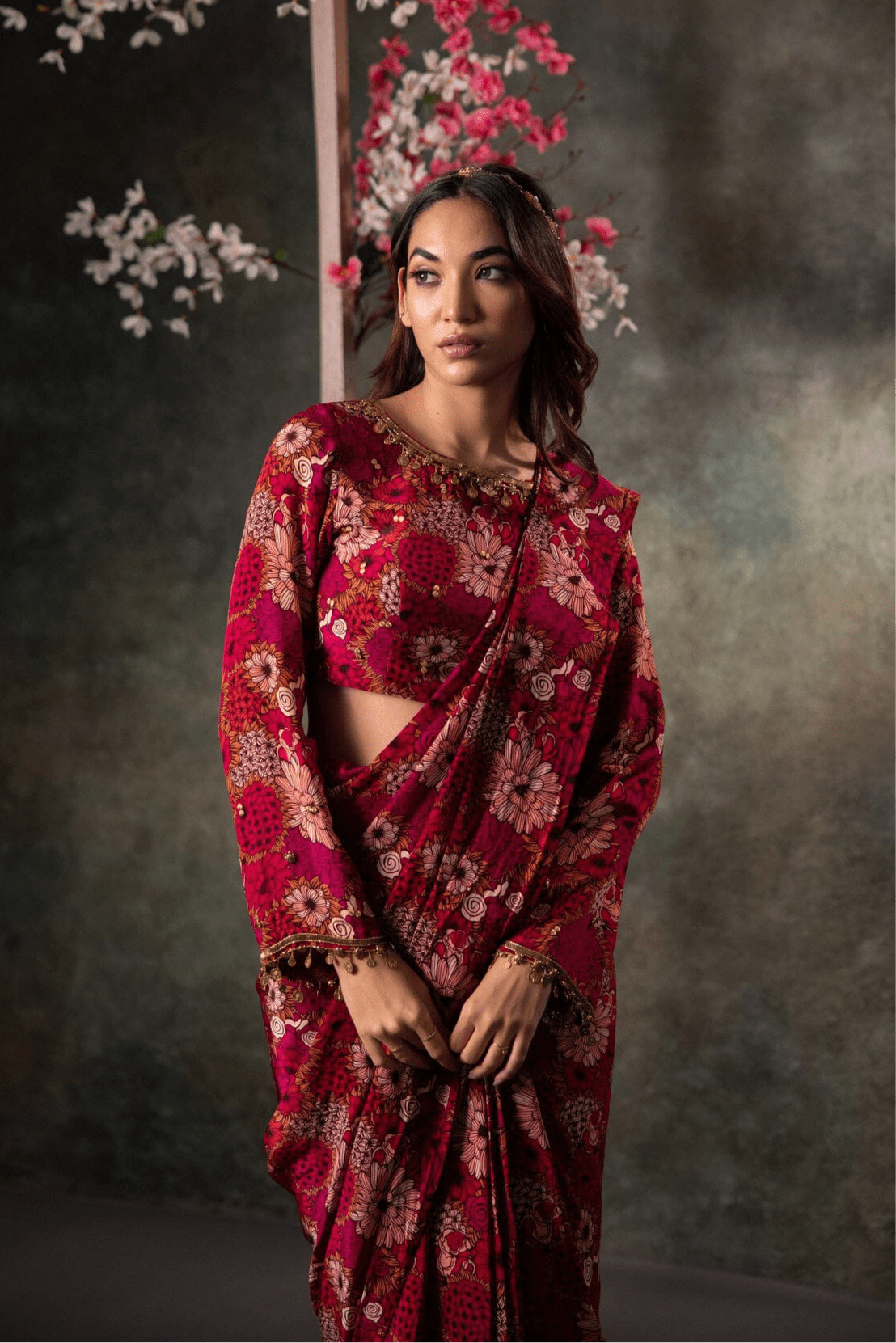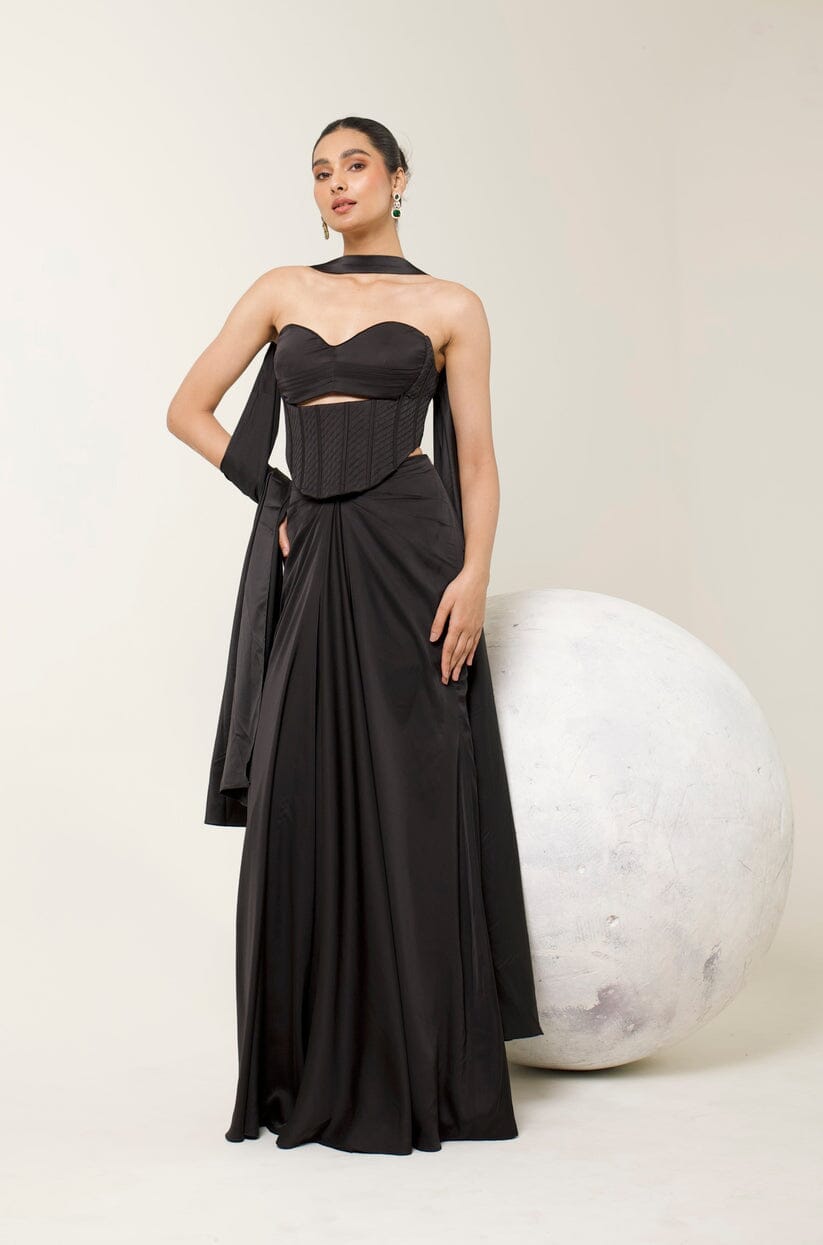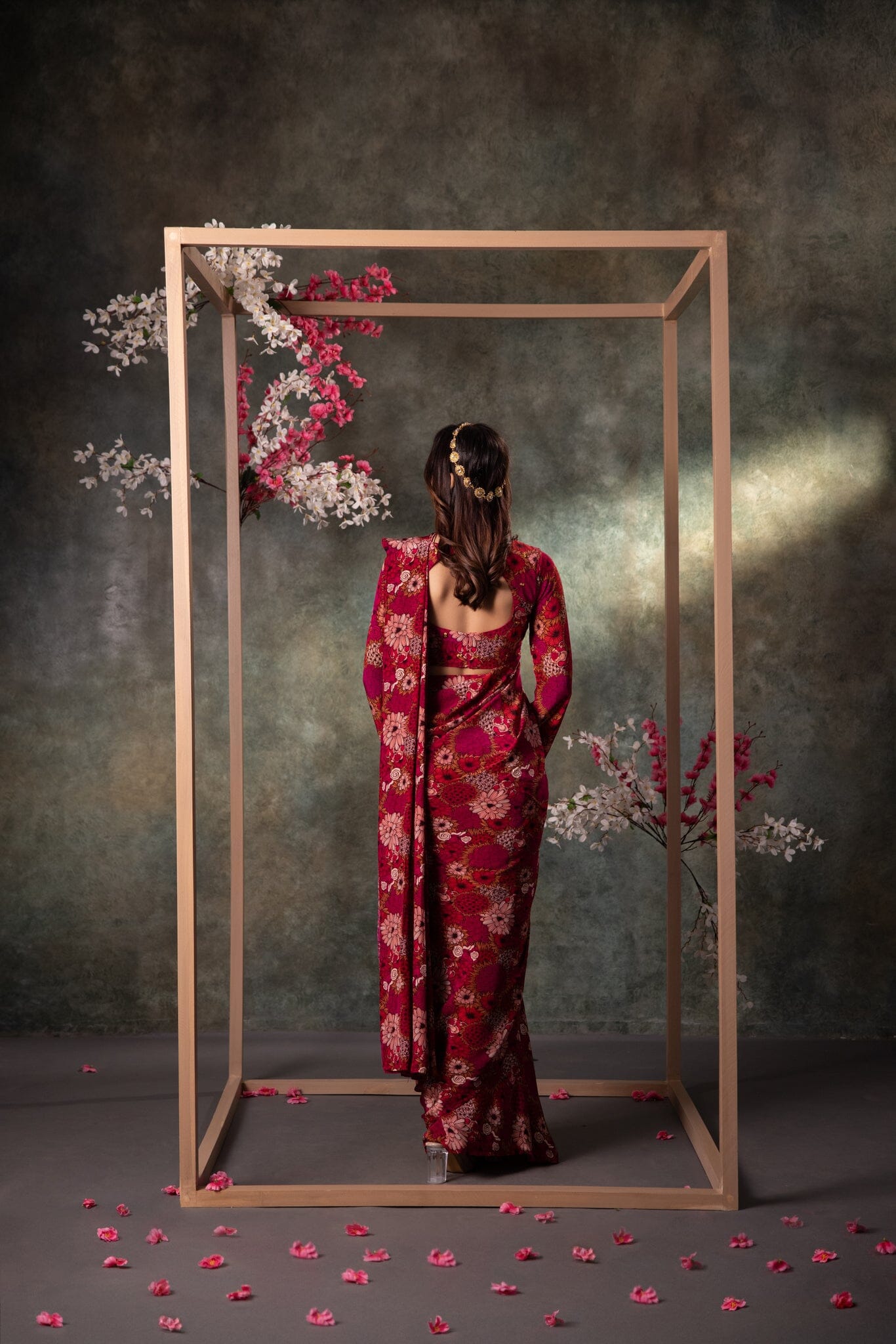 Purple Jumpsuit, Drape And Belt Set With Embroidery