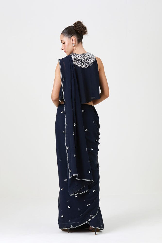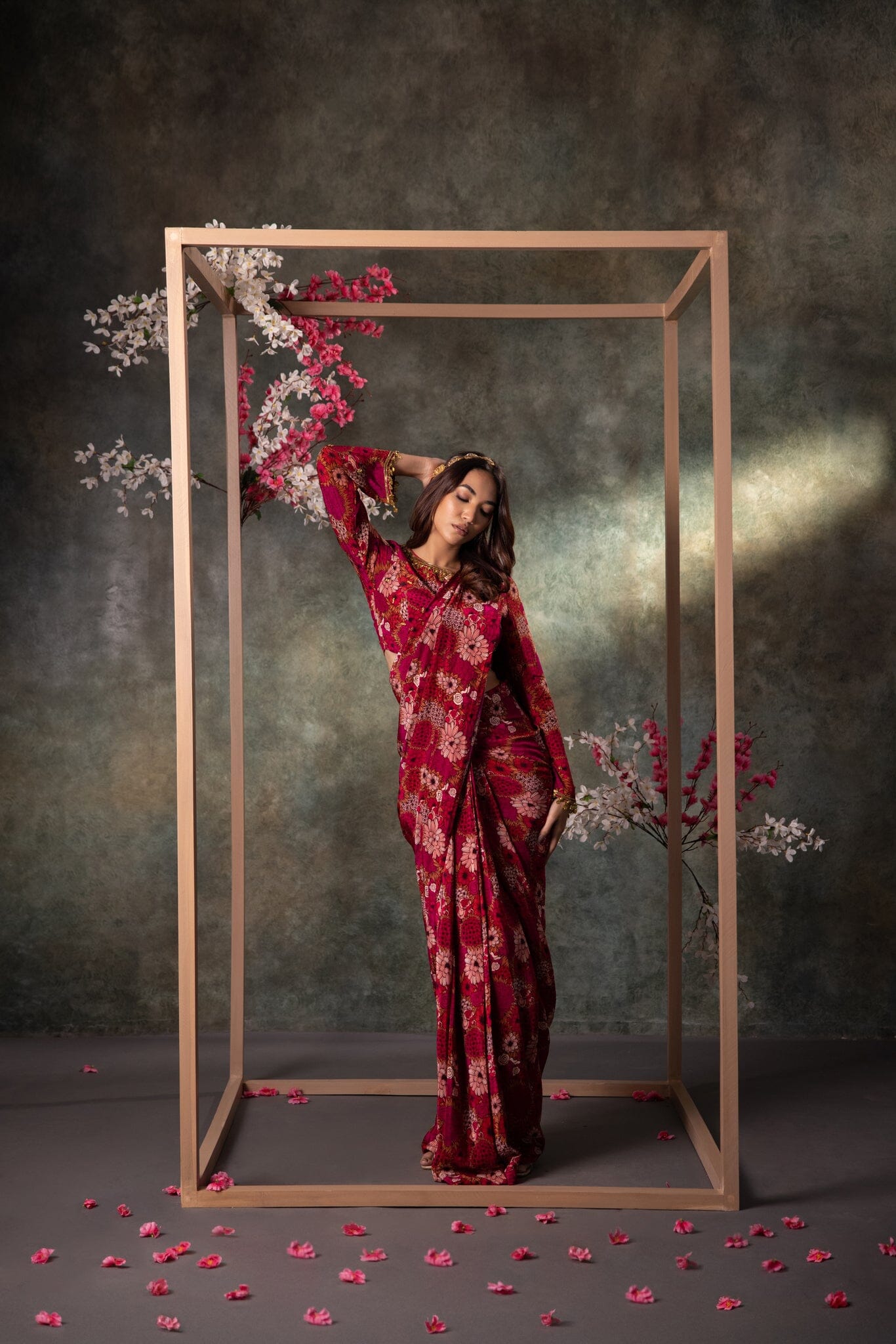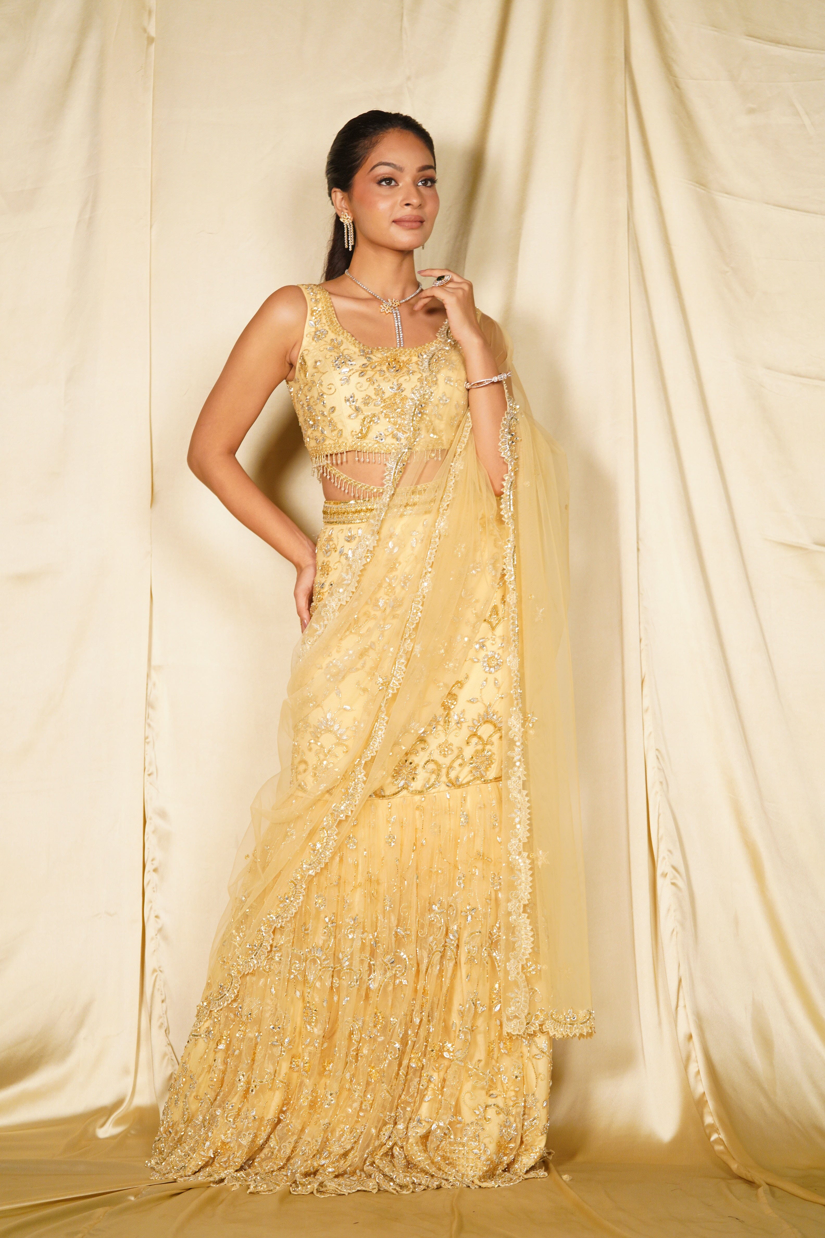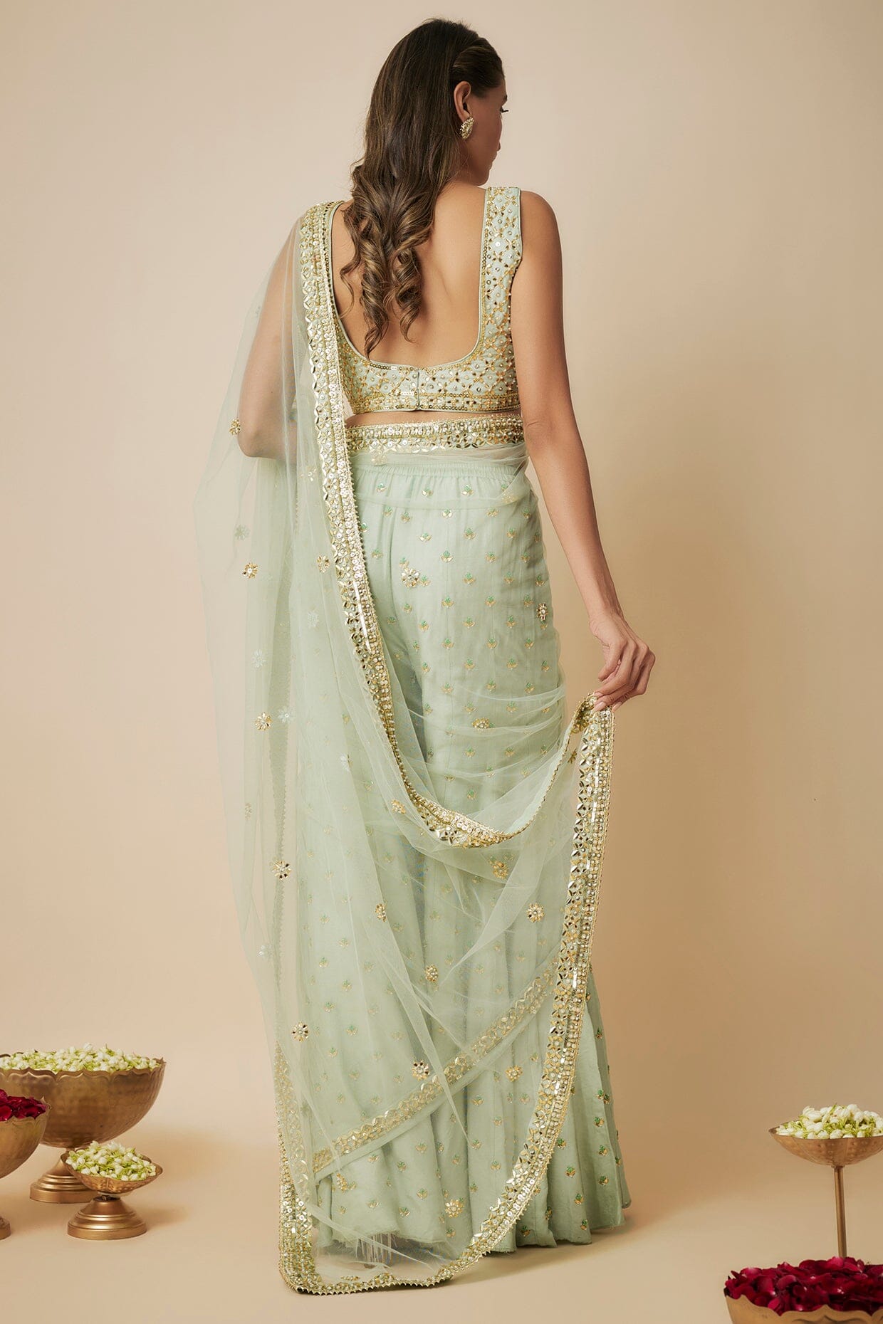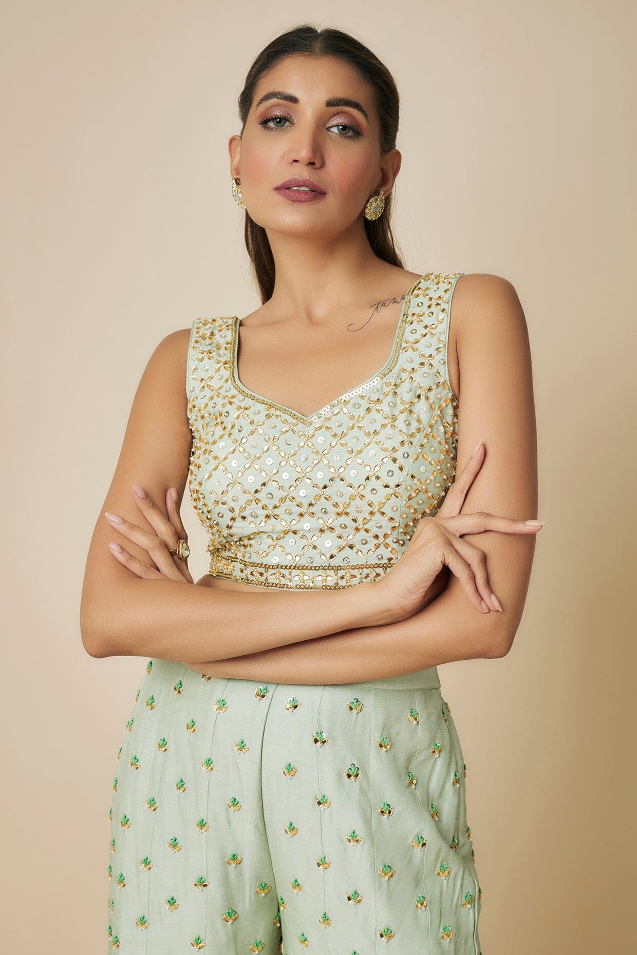 Purple Jumpsuit, Drape And Belt Set With Embroidery