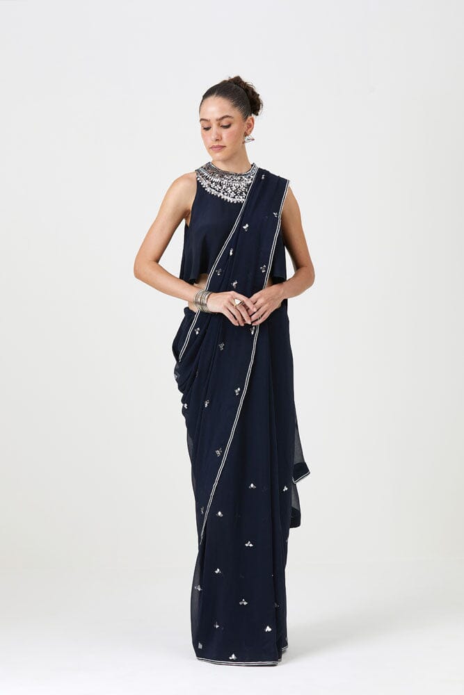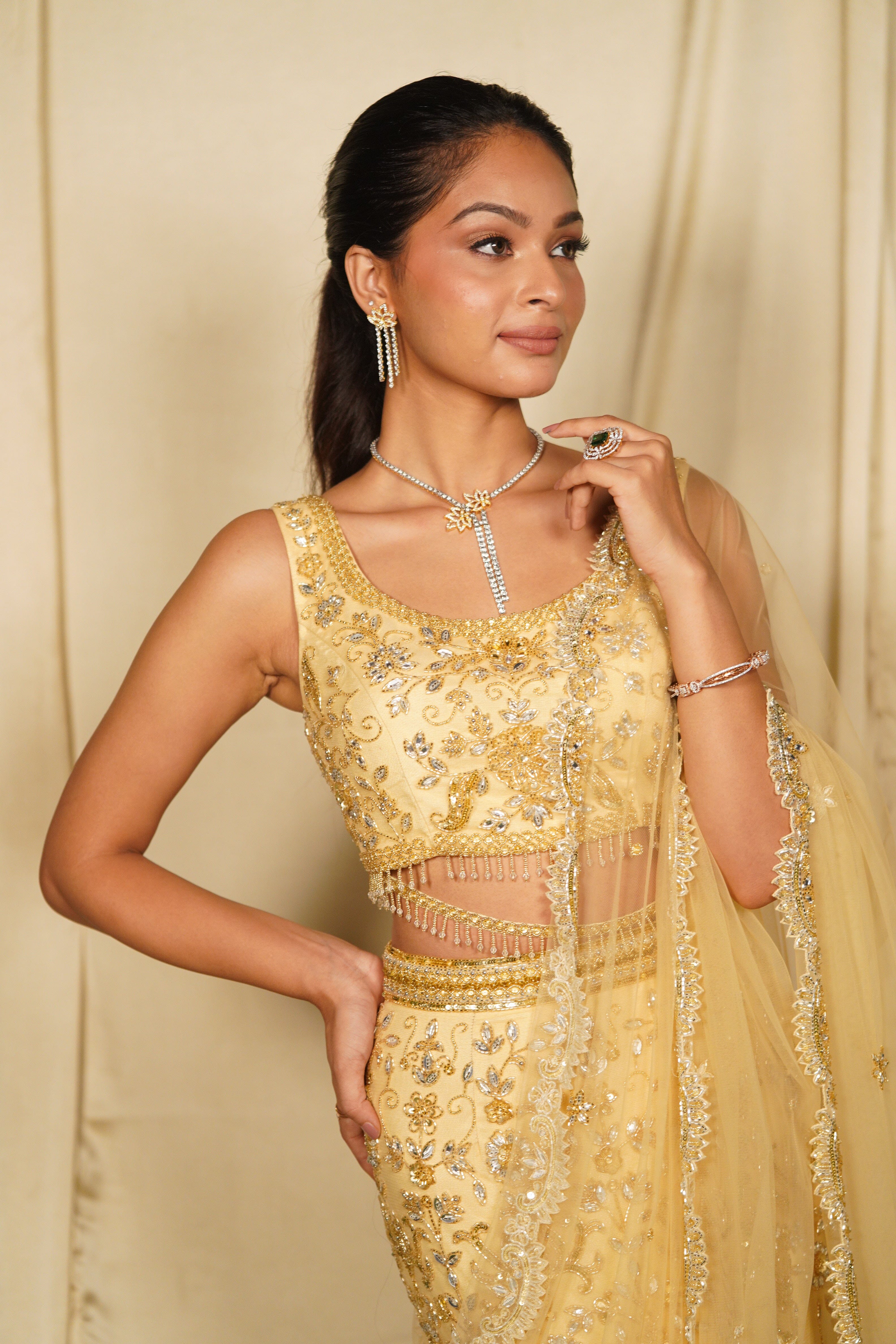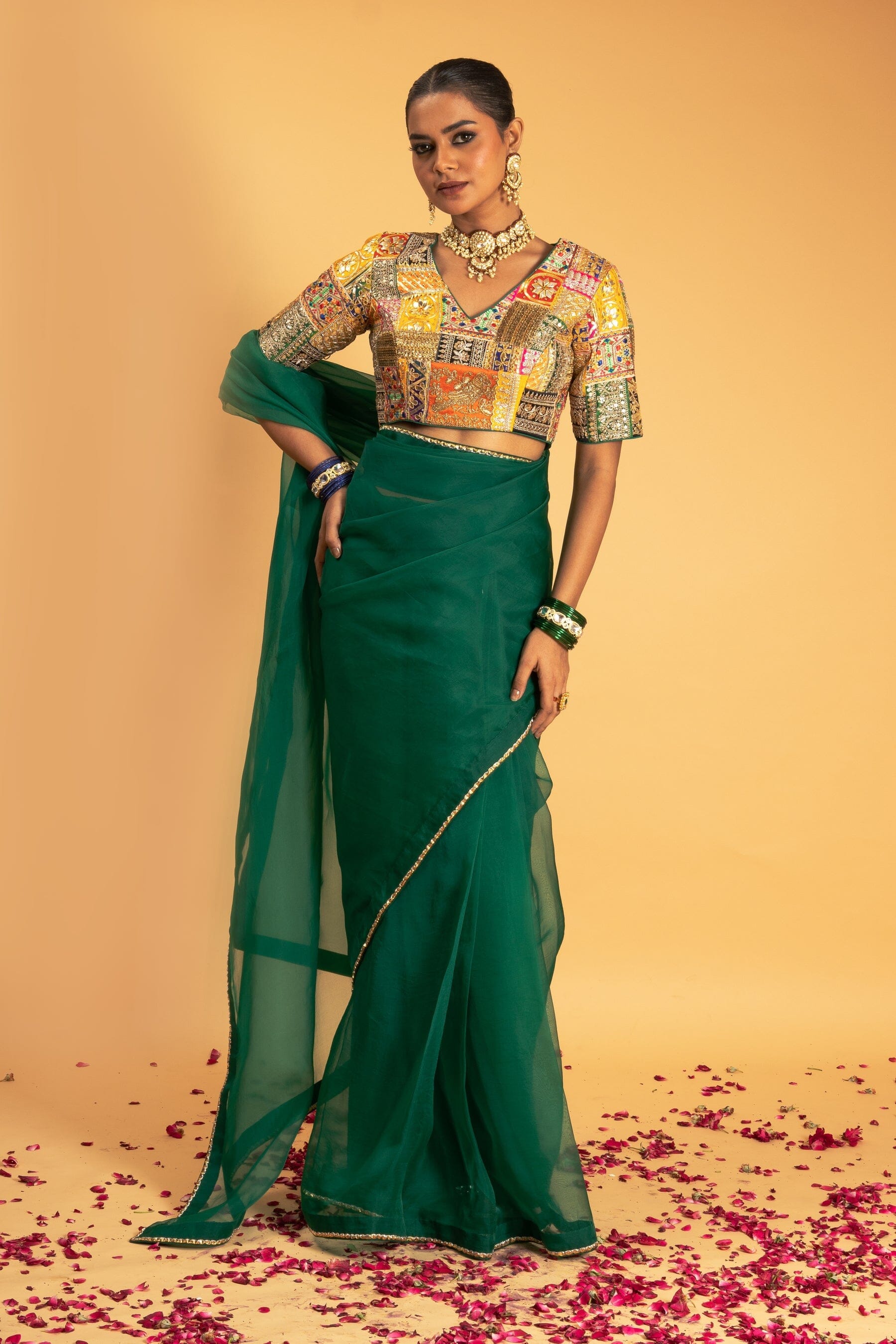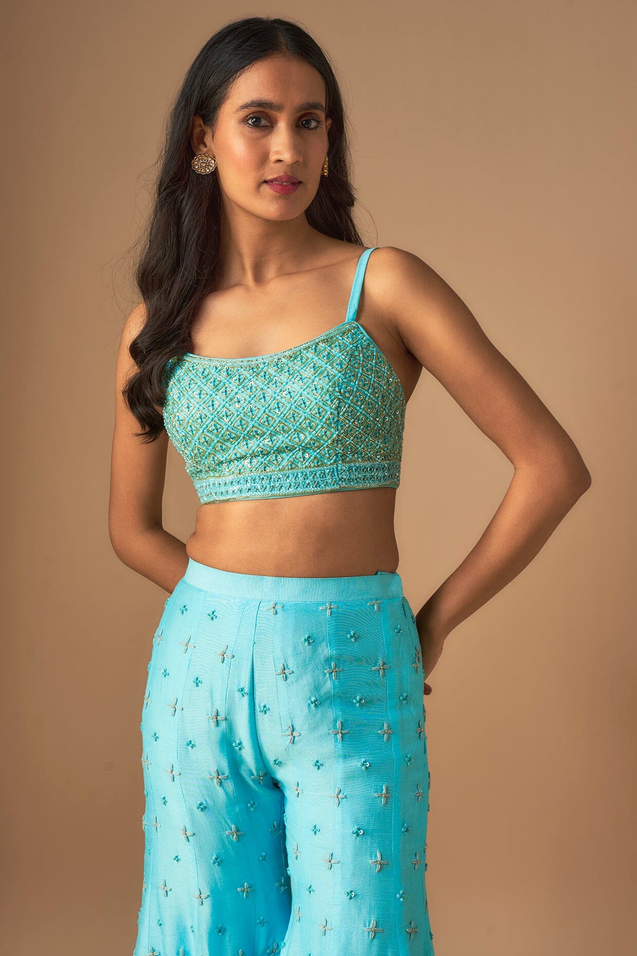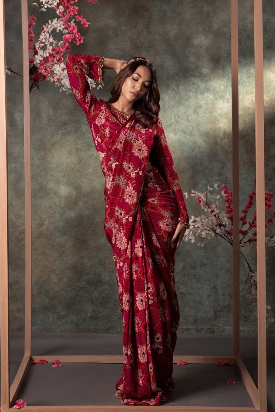 Purple Jumpsuit, Drape And Belt Set With Embroidery