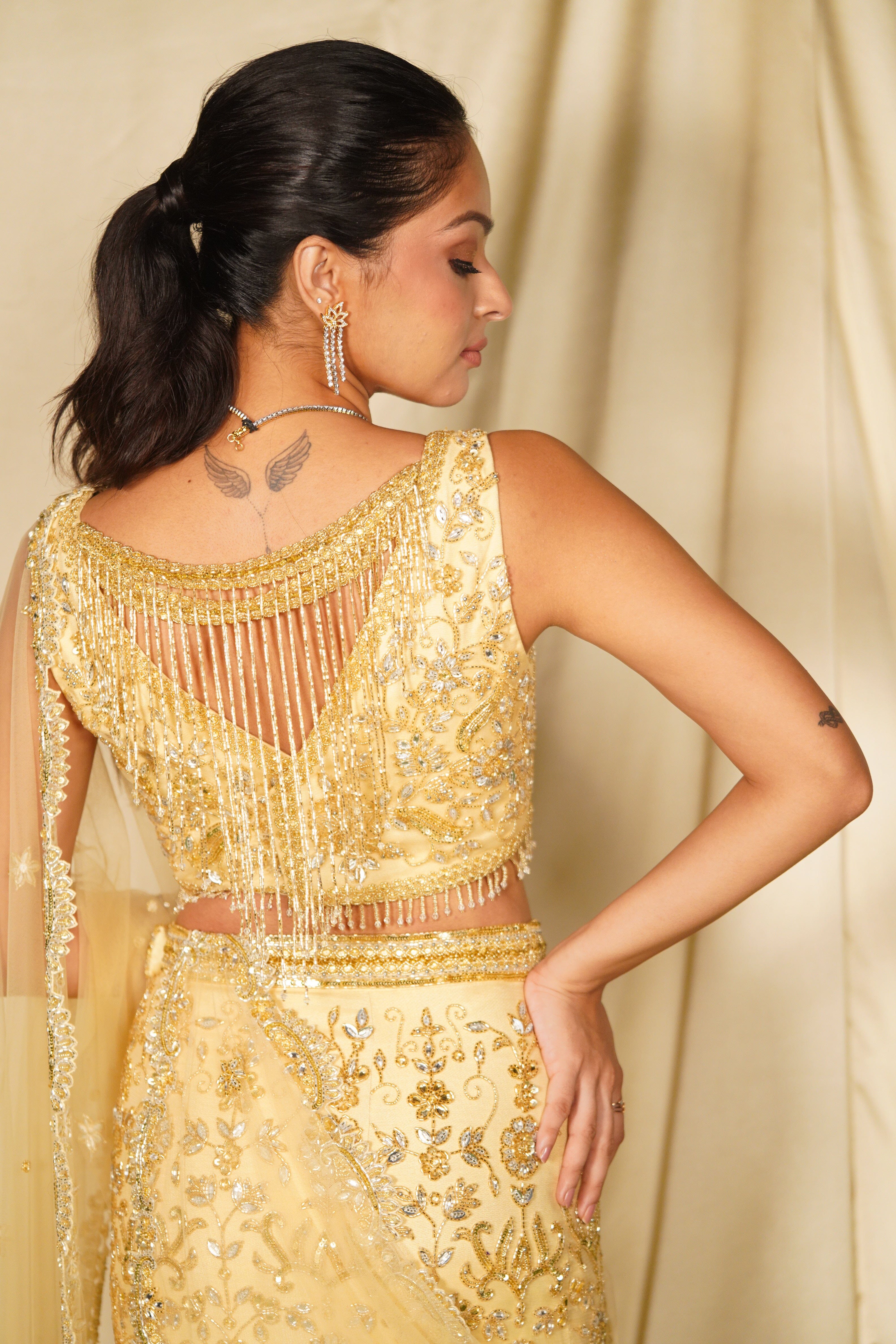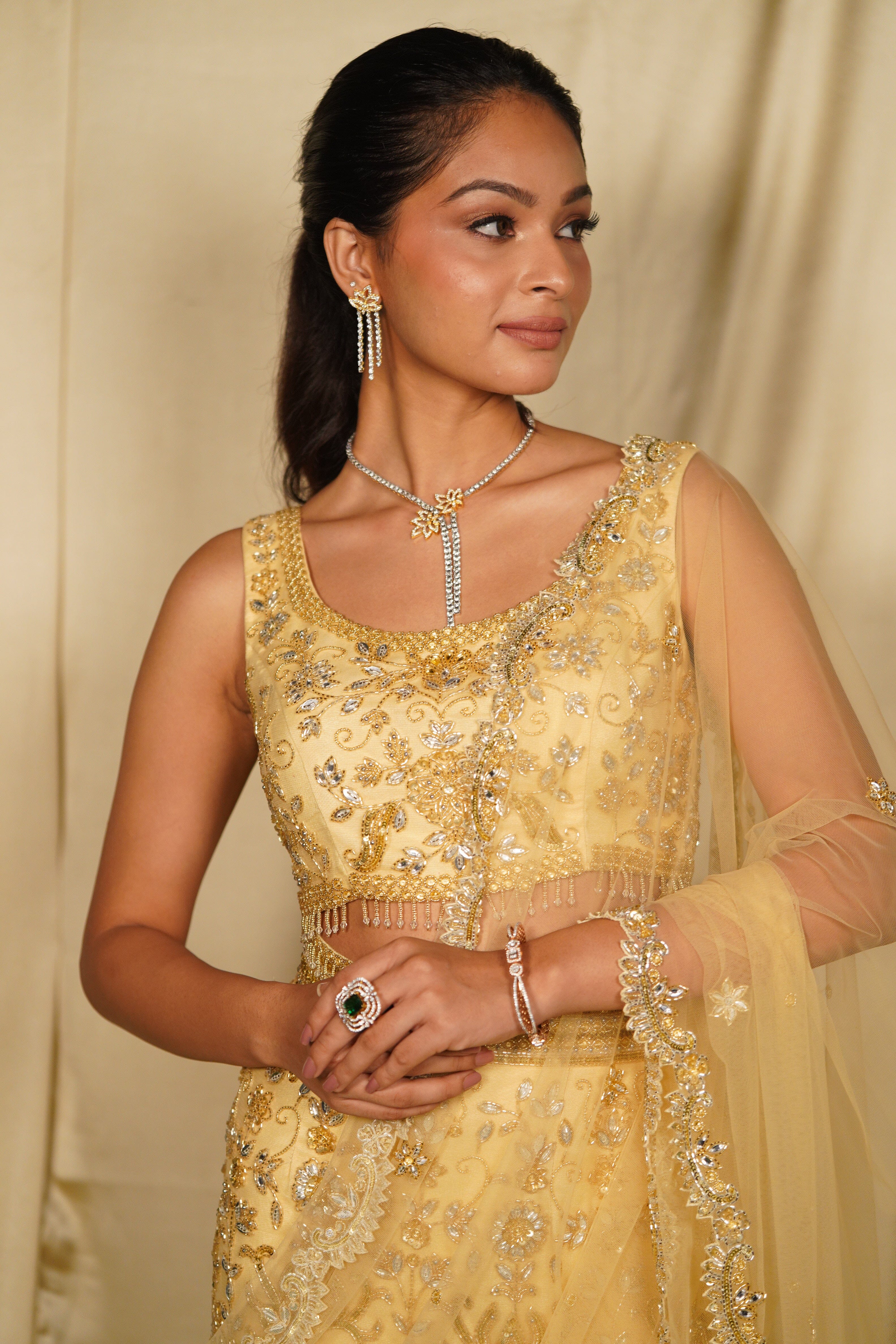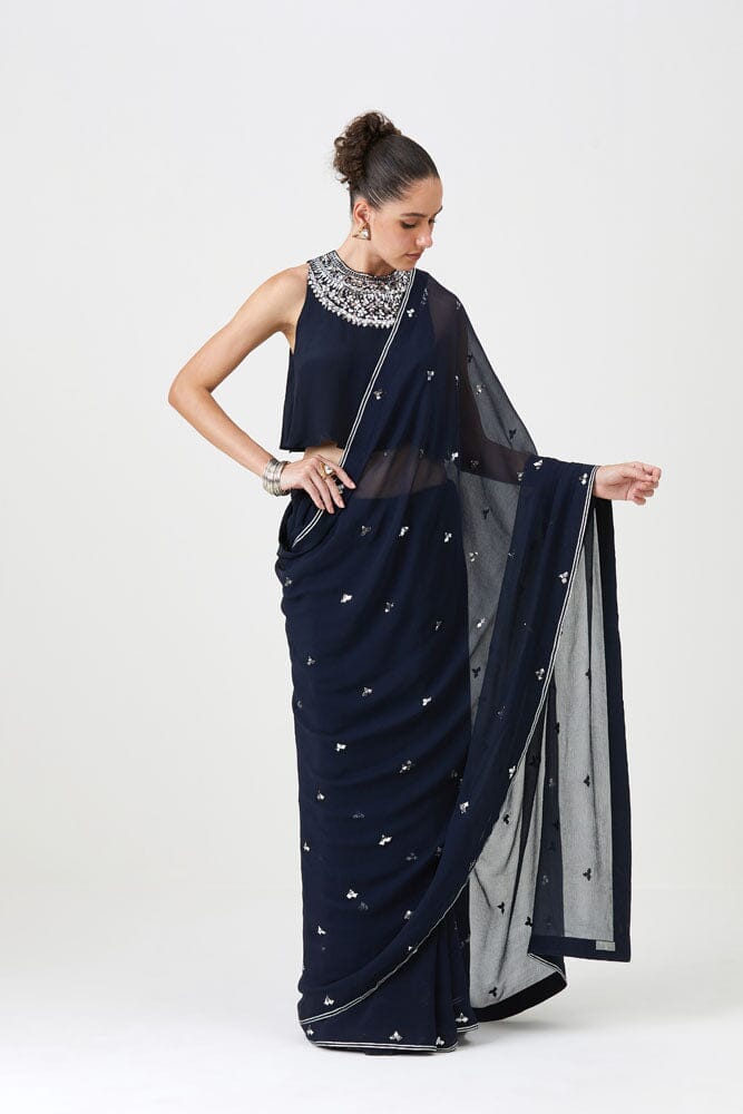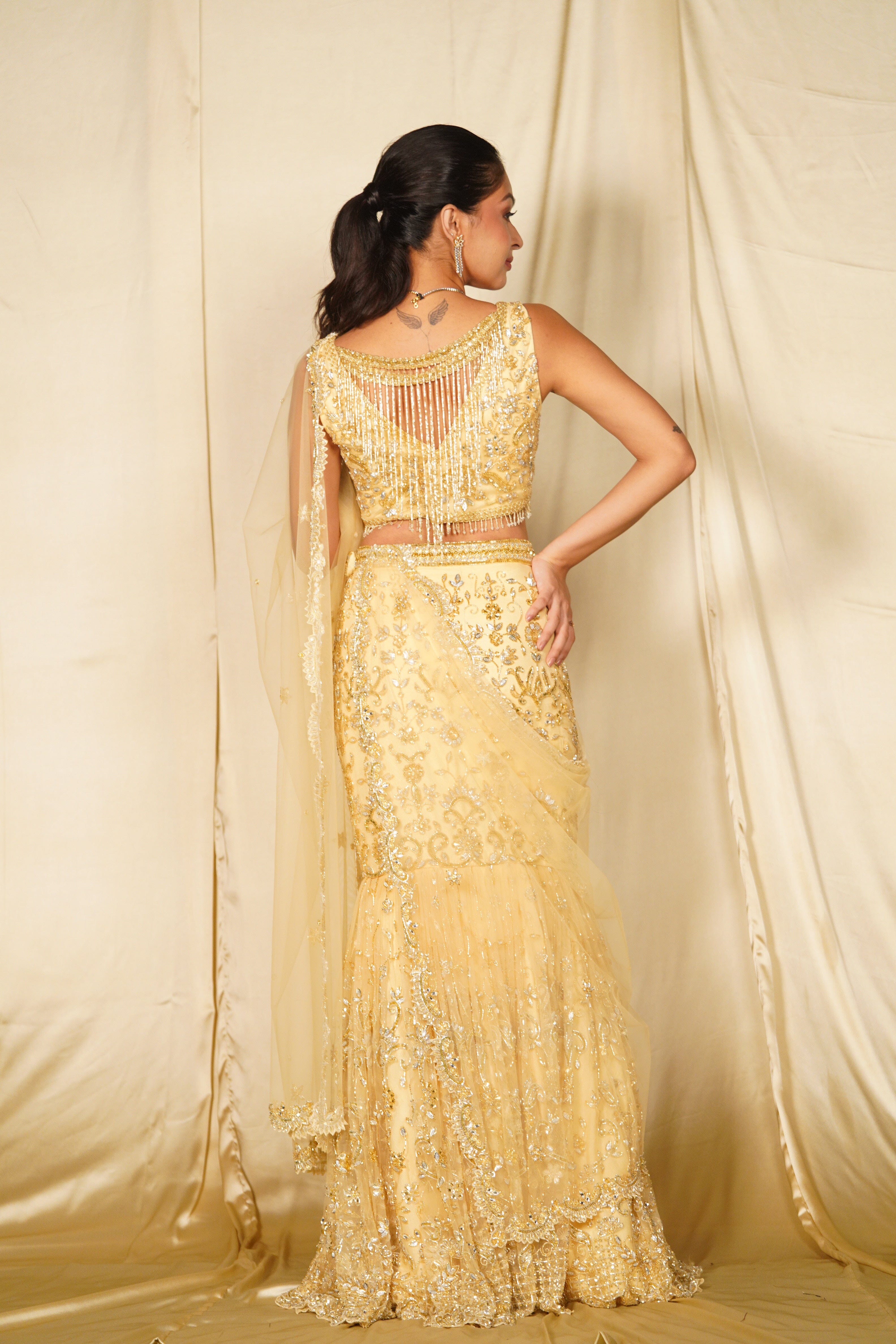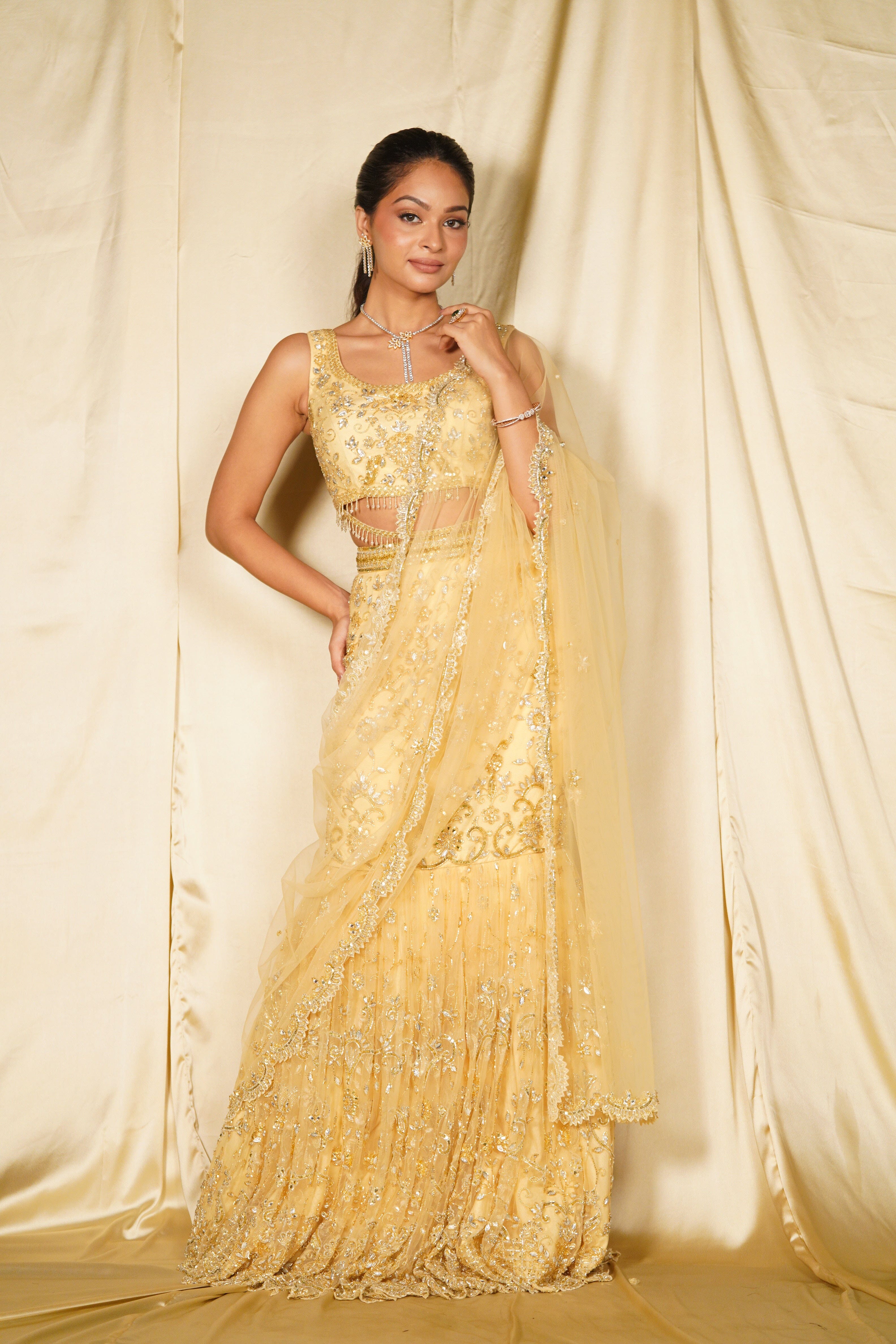 Purple Jumpsuit, Drape And Belt Set With Embroidery