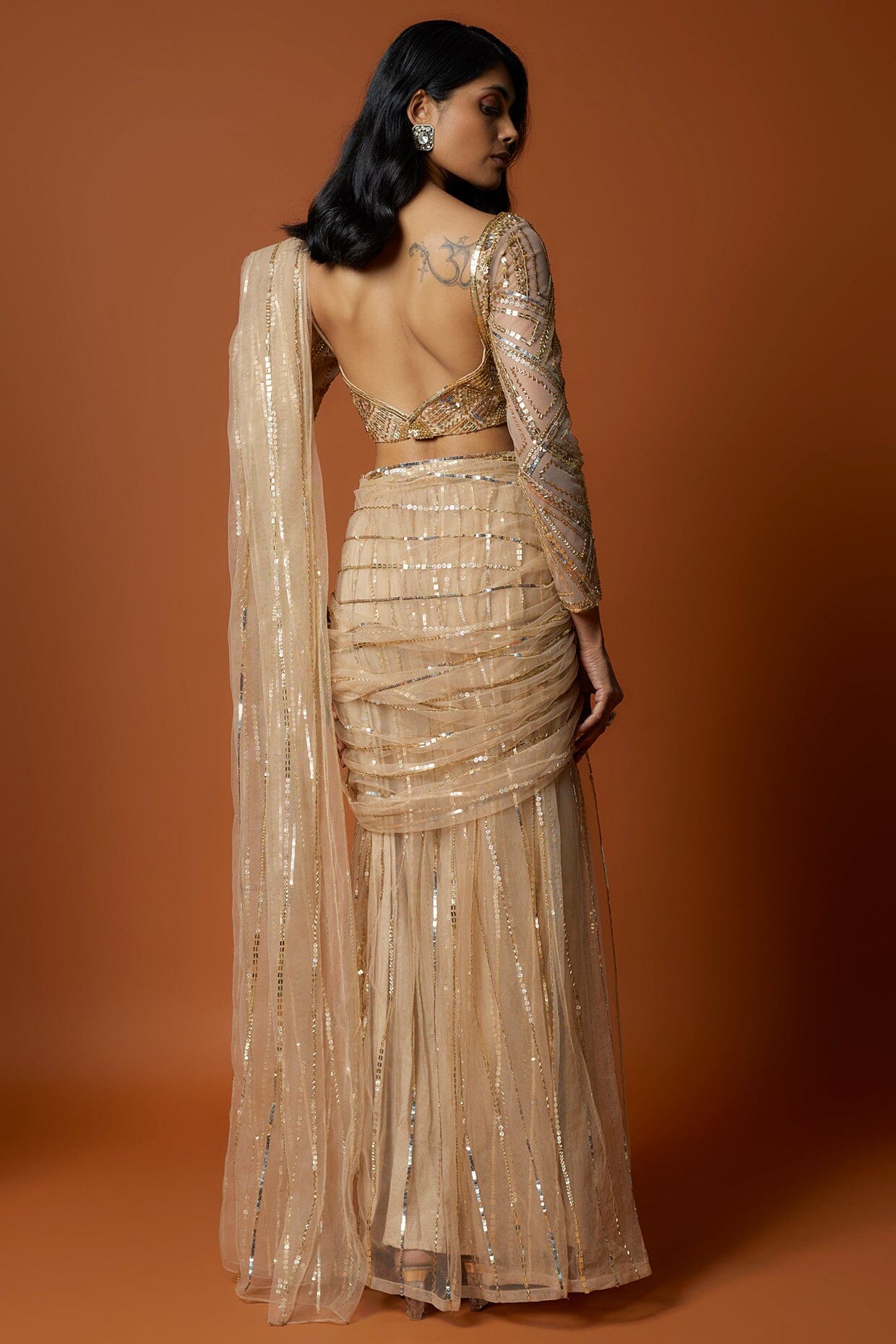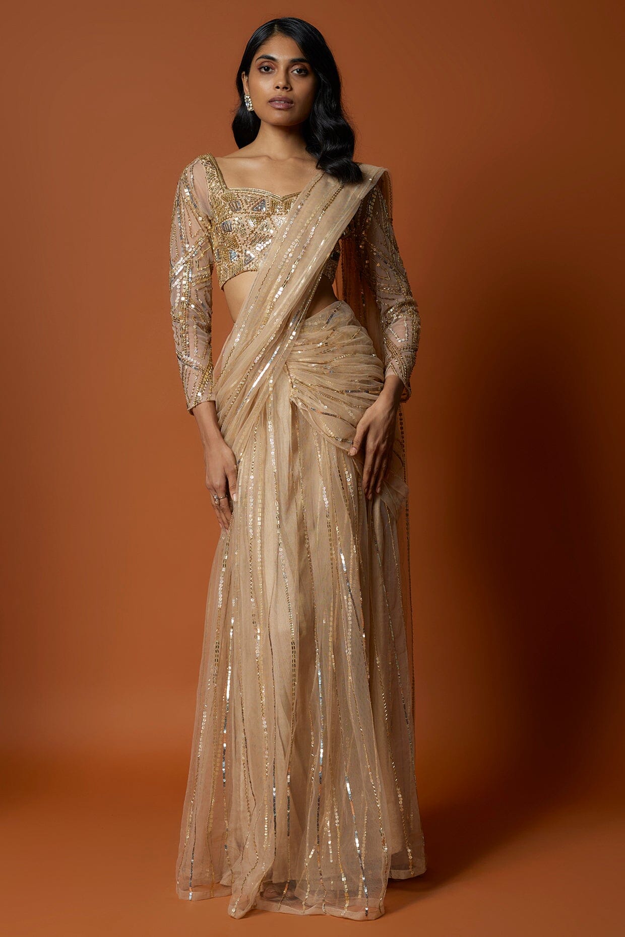 Gold Pre-pleated Cocktail Saree Set